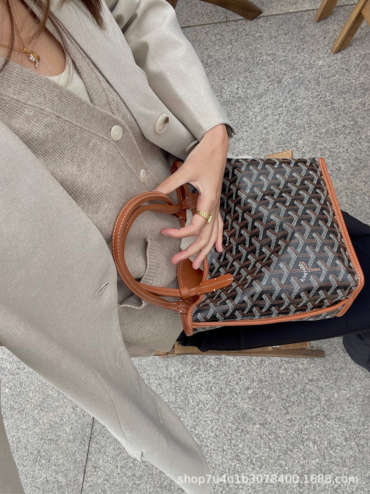 휴대용 숄더백 미니 토트백 양면 사용 가능한 이중 가방 고야와 동일한 스타일의 천연 가죽 미니백스토어 가기