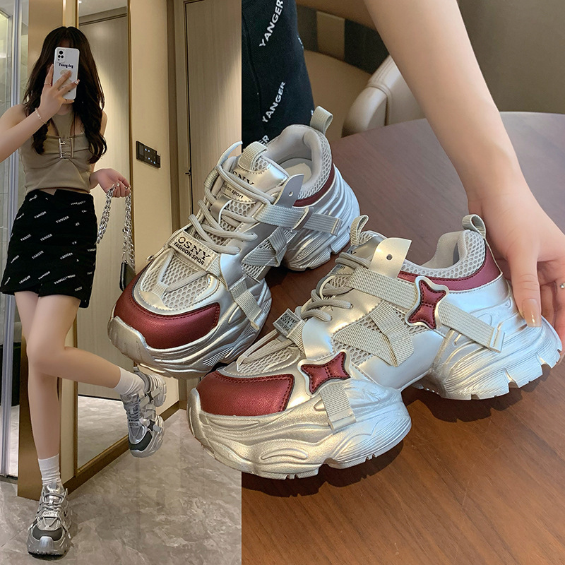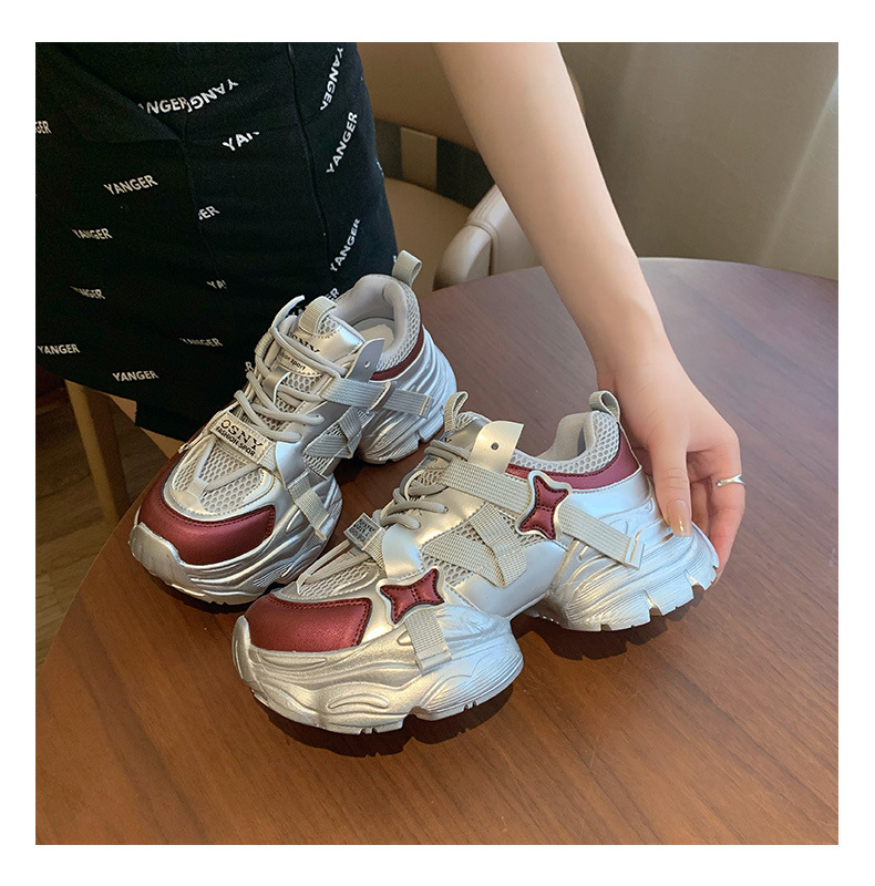 통기성 두꺼운 밑창 토르 신발 여성의 2024 년 새로운 가을 슬림 핏 레이스 업 올 매치 스포츠 캐주얼 신발 폭발