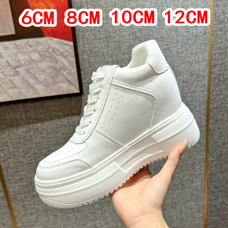 2025 신형 가죽 흰색 신발 보이지 않는 내부 높이 증가 10cm12cm14cm 두꺼운 밑창 신발 높이 증가 신발 캐주얼 여성 신발스토어 가기