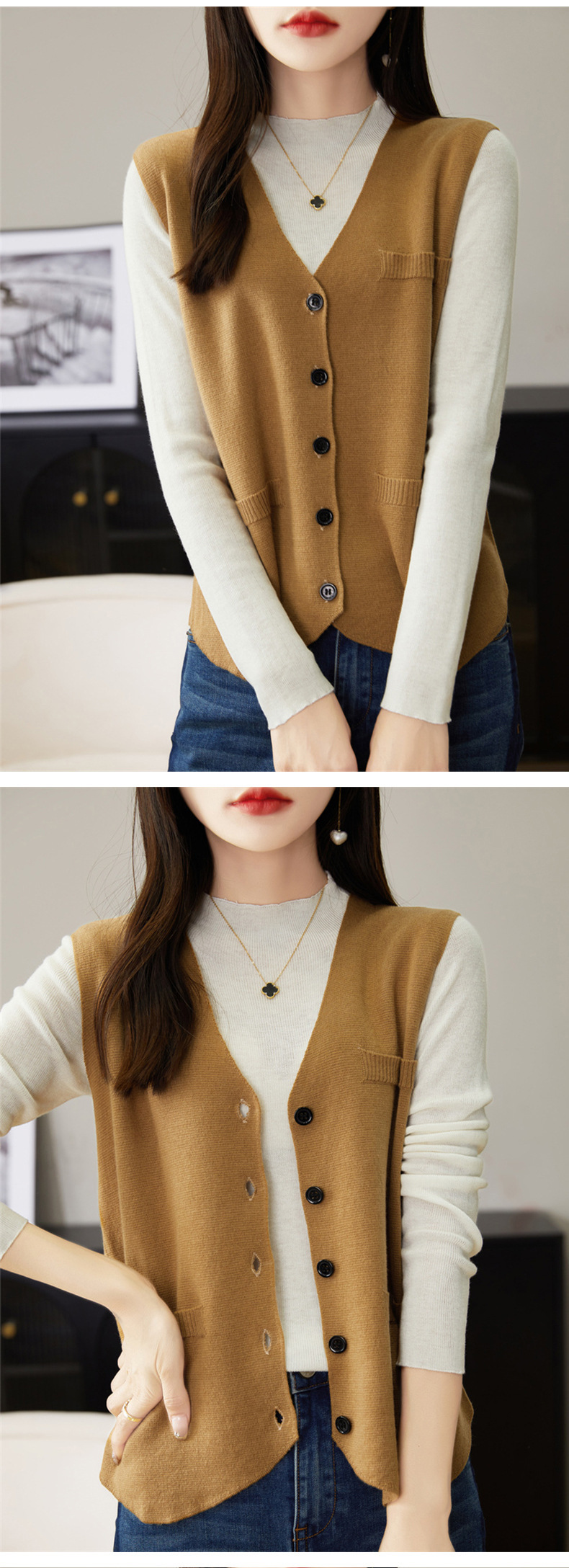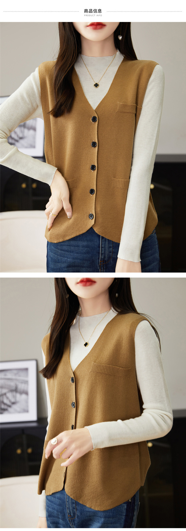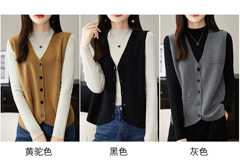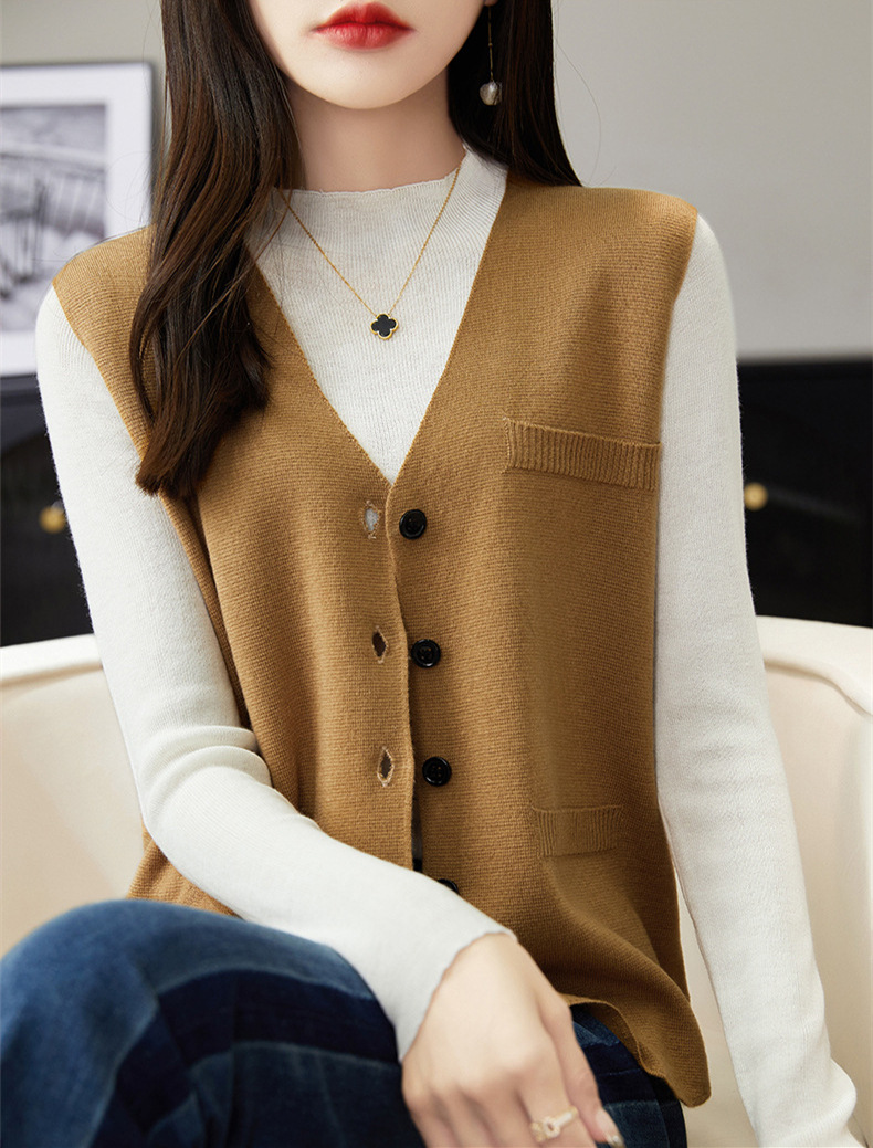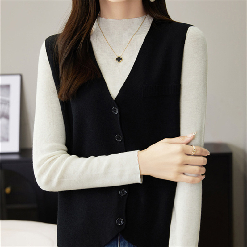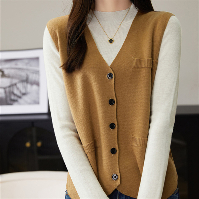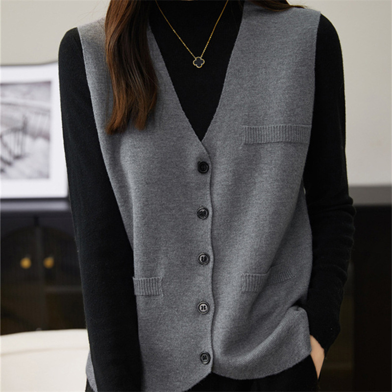 가을과 겨울 니트웨어 민소매 카디건 조끼 여성 V 넥 캐주얼 버클 슬림 허리 코트 크로스 국경 도매스토어 가기