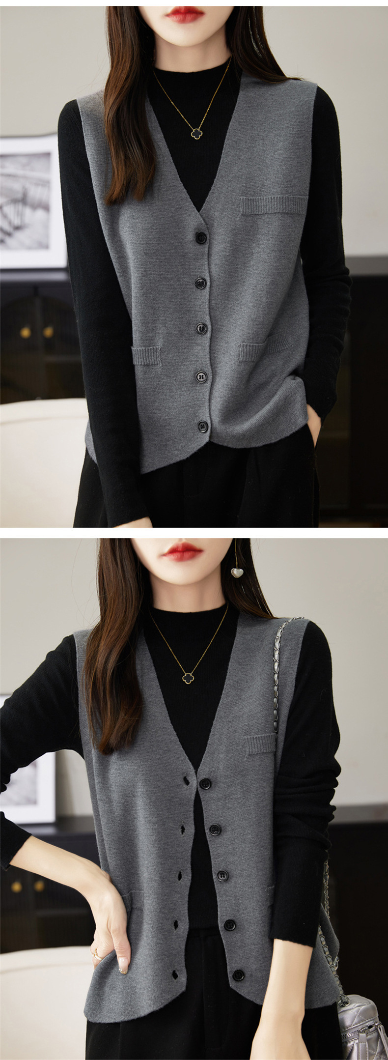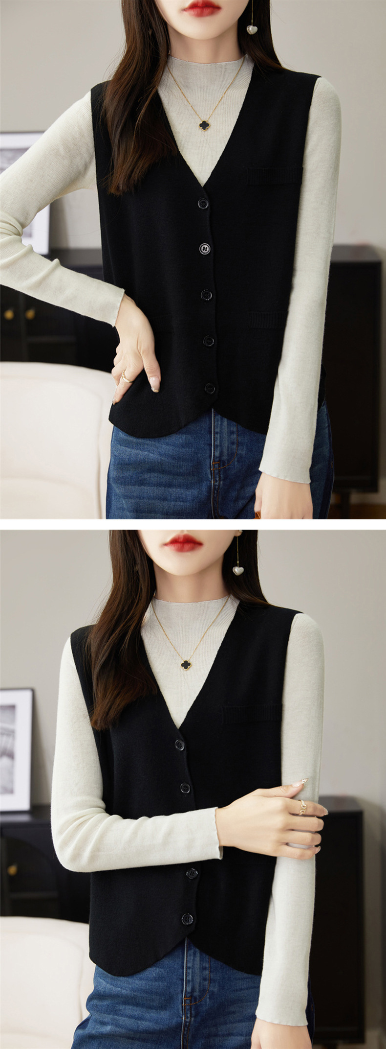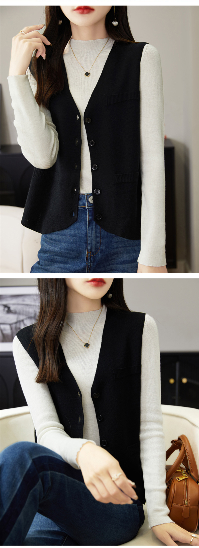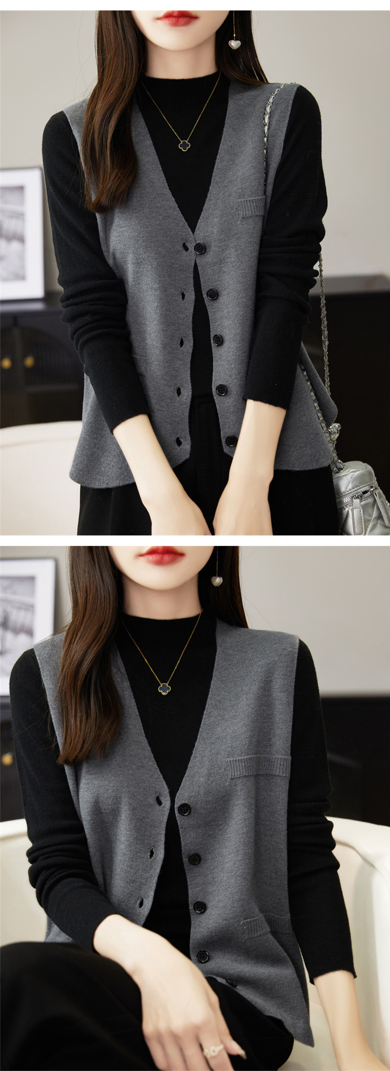 가을과 겨울 니트웨어 민소매 카디건 조끼 여성 V 넥 캐주얼 버클 슬림 허리 코트 크로스 국경 도매스토어 가기