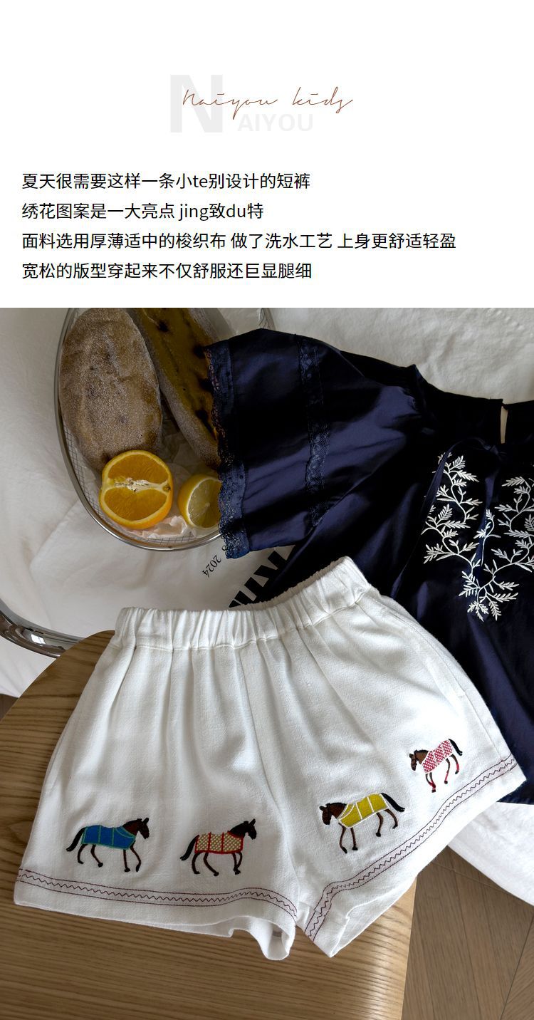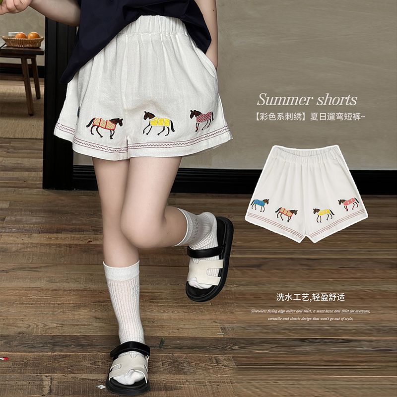 소녀 반바지 외주 흰색 어린이 여름 캐주얼 바지 얇은 느슨한 디자인 감각 틈새 아기의 여름 바지스토어 가기