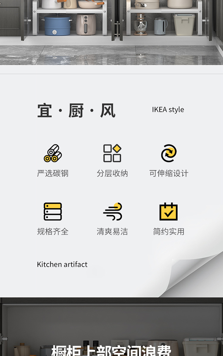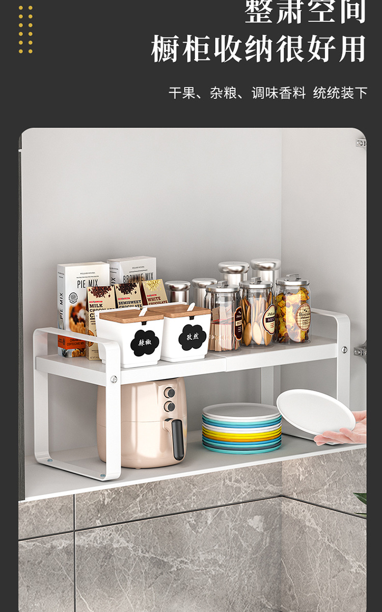계층화 된 주방 보관 랙 다기능 카운터 탑 개폐식 캐비닛 작은 저장 선반 가정용 조미료 냄비 그릇 랙