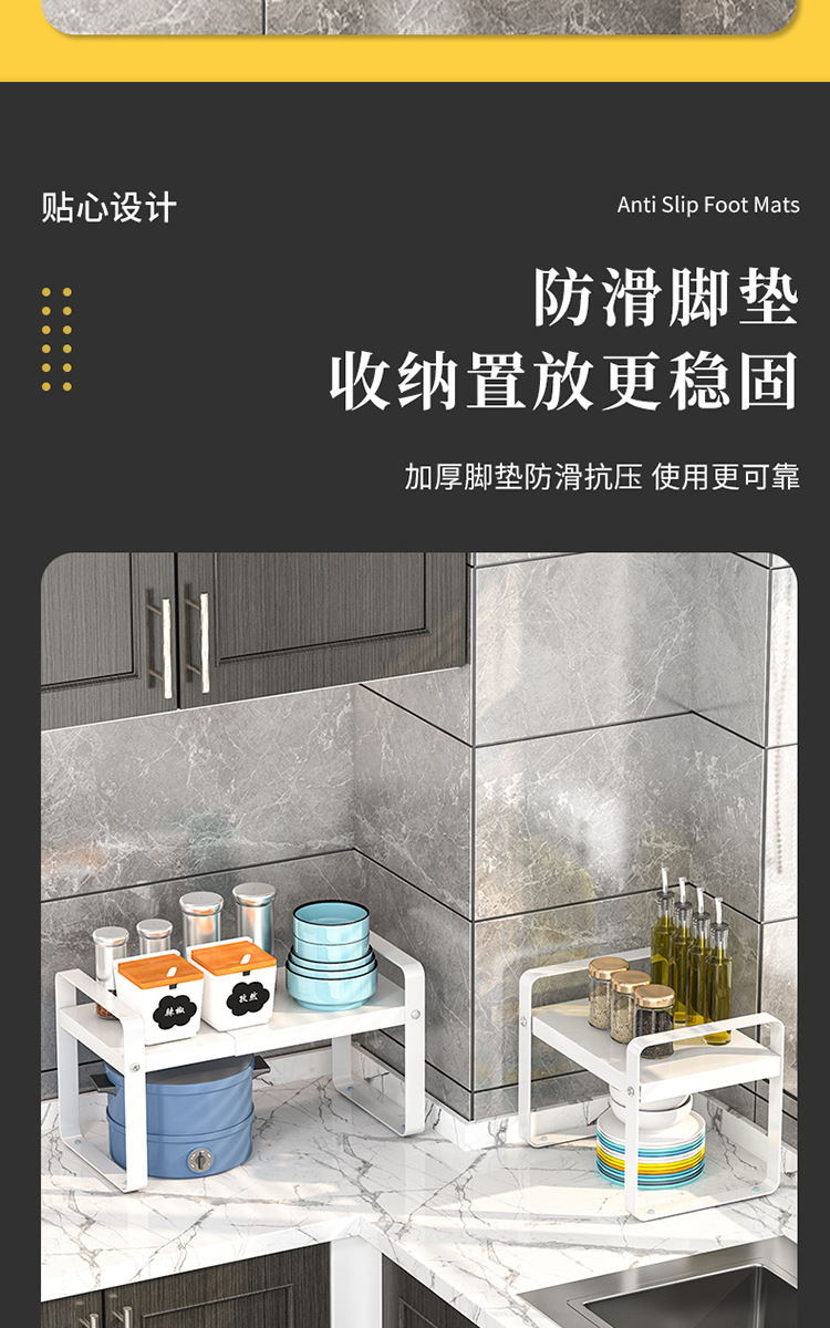 계층화 된 주방 보관 랙 다기능 카운터 탑 개폐식 캐비닛 작은 저장 선반 가정용 조미료 냄비 그릇 랙스토어 가기