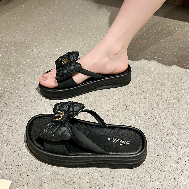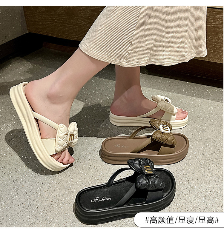 새로운 스타일 두꺼운 하단 활 슬리퍼 여성 여름 패션 인터넷 핫 비치 슈퍼 핫 두꺼운 하단 슬리퍼
