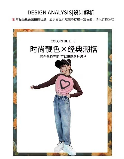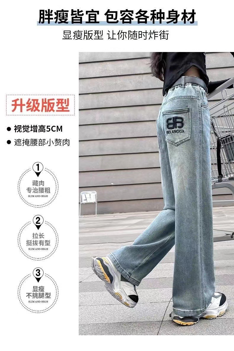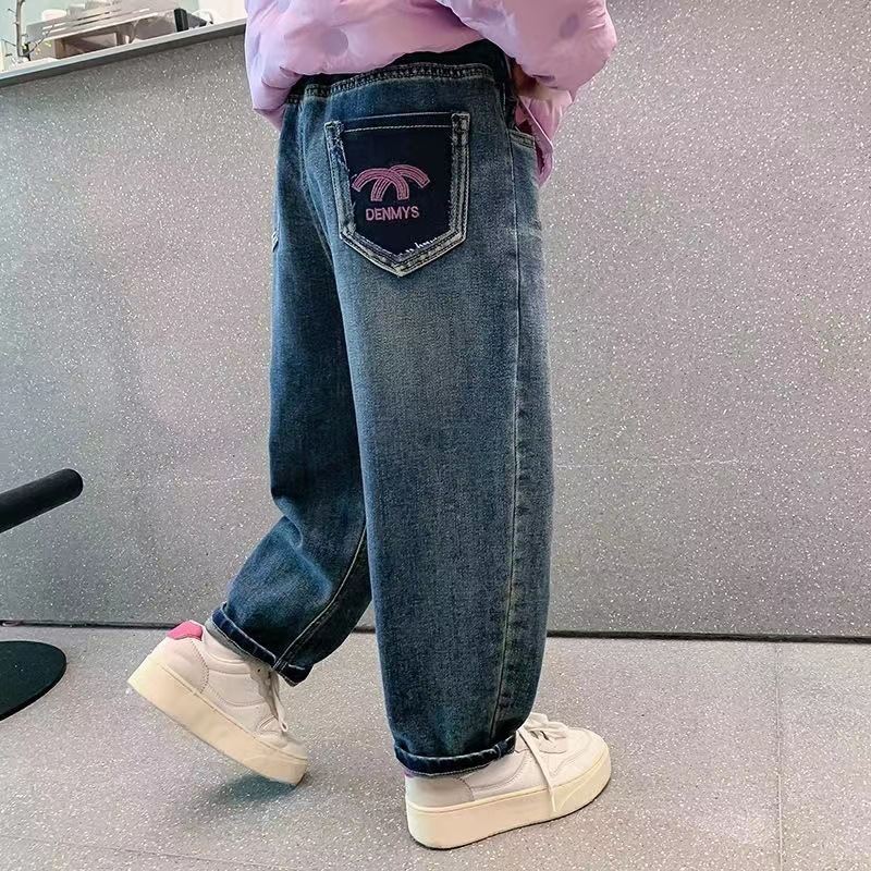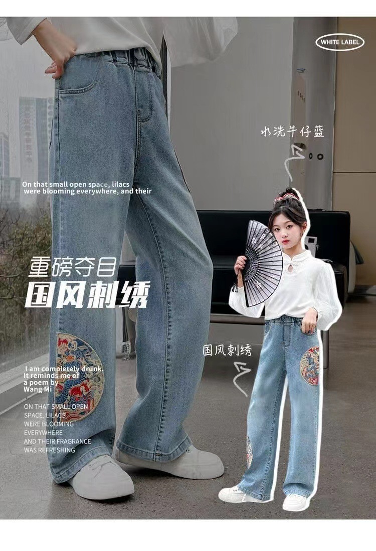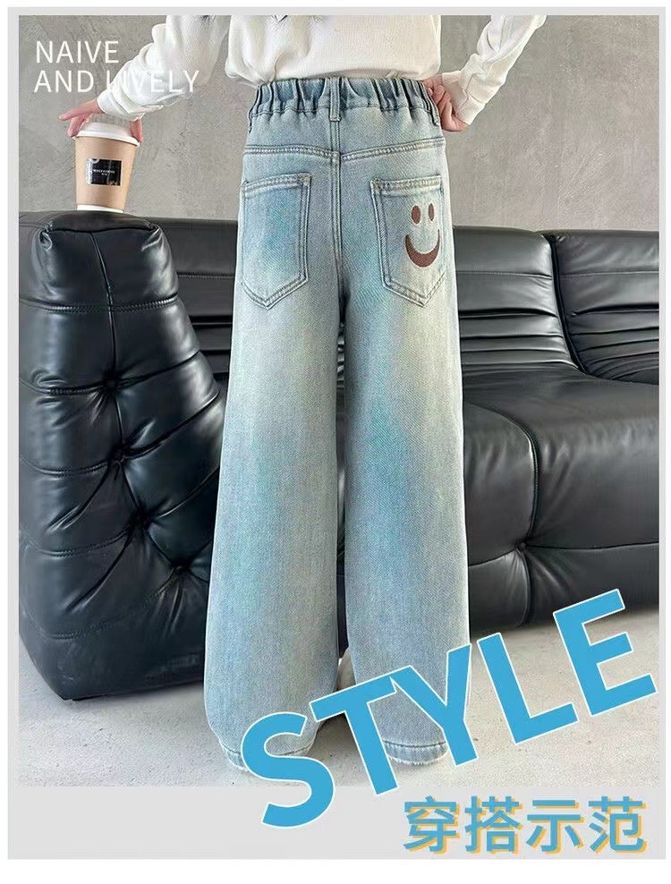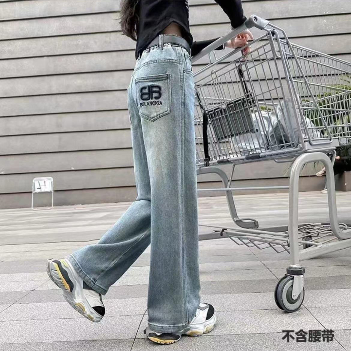 봄과 가을 소녀 바지 2024 새로운 스트레이트 레그 청바지 소녀 큰 어린이 가을 서양식 외부 착용 와이드 레그 바지스토어 가기