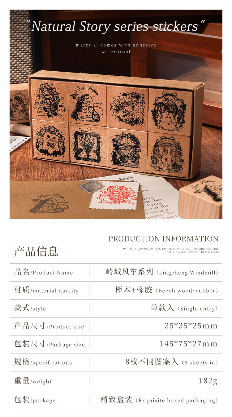 Lingcheng 풍차 나무 손 계정 박스 인감 국경 손 계정 동물 및 식물 조합 씰 레트로 스타일 실리콘 씰스토어 가기