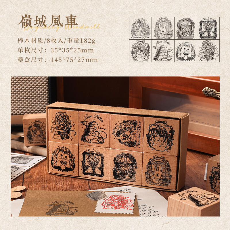 Lingcheng 풍차 나무 손 계정 박스 인감 국경 손 계정 동물 및 식물 조합 씰 레트로 스타일 실리콘 씰