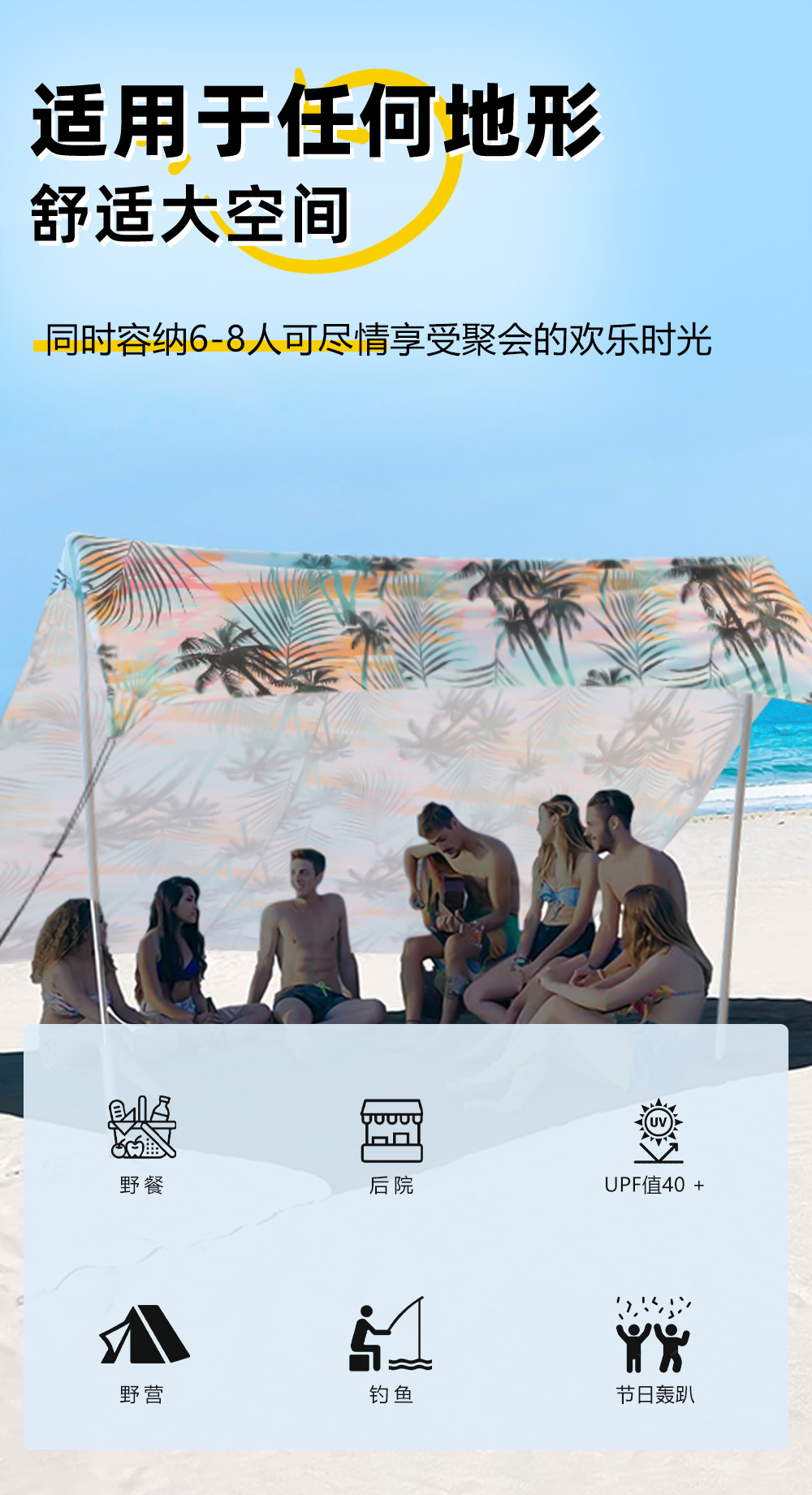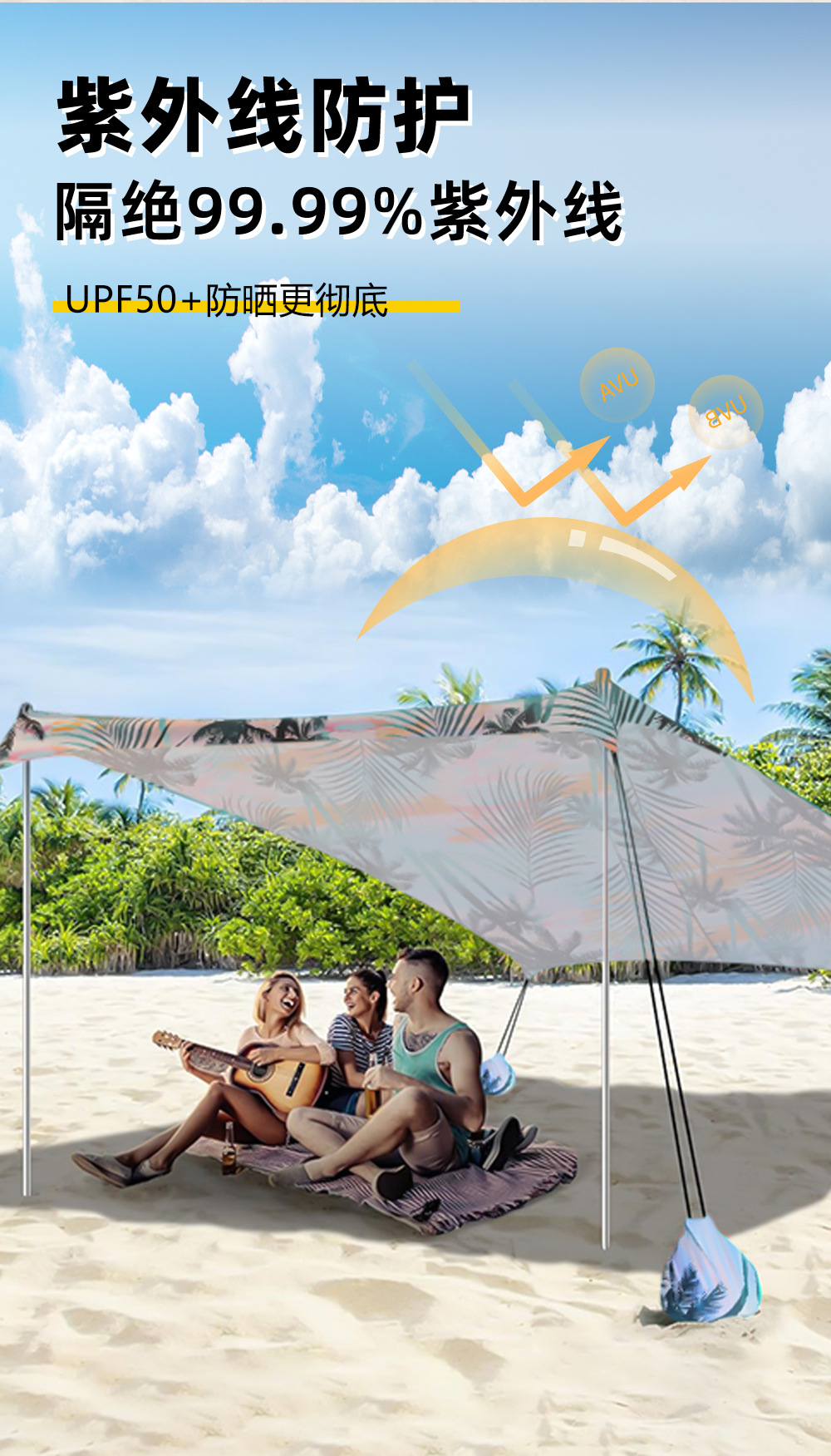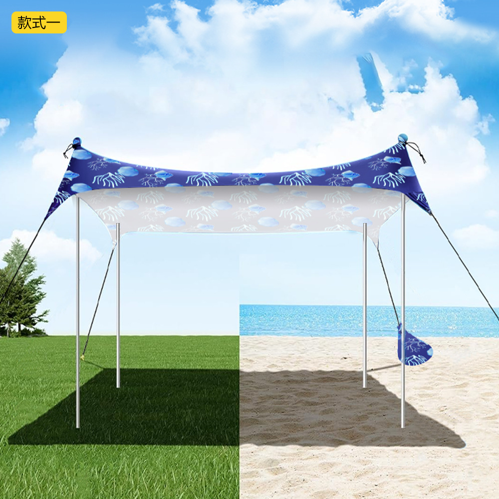 야외 휴대용 비치 라이크라 캐노피 인쇄 캠핑 텐트 선스크린 방풍 캐노피 캠핑 국경스토어 가기