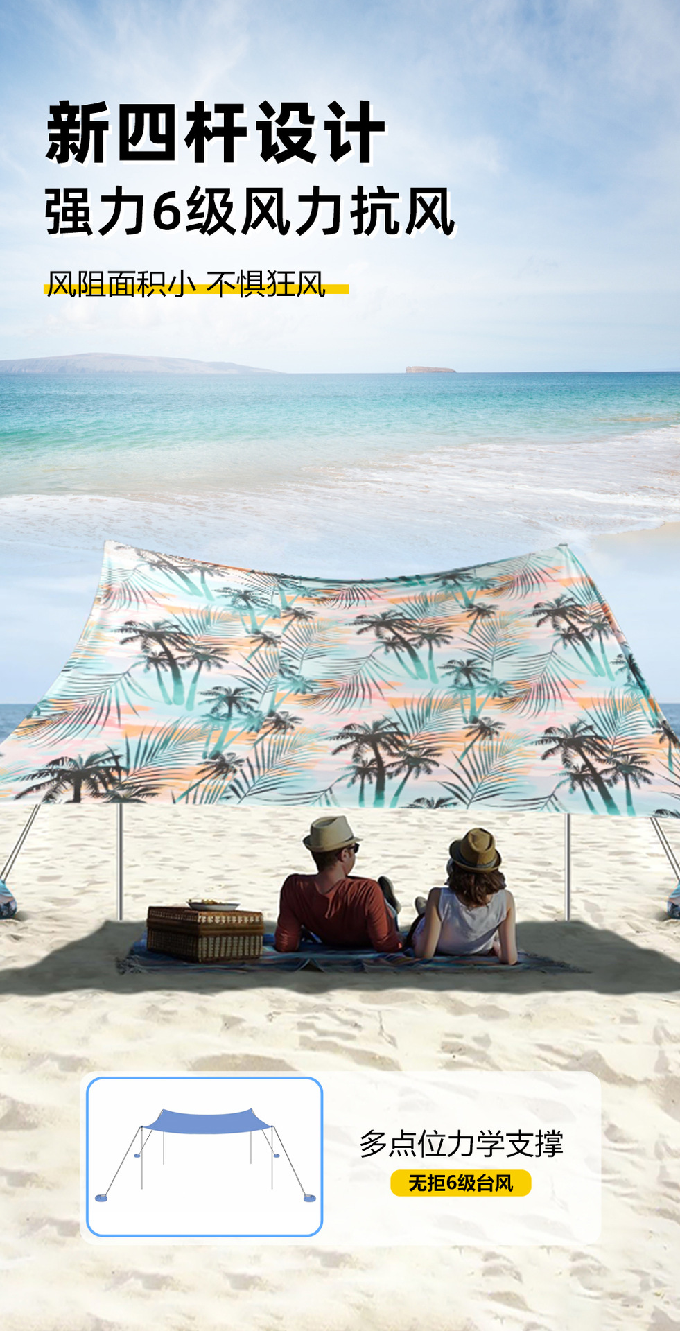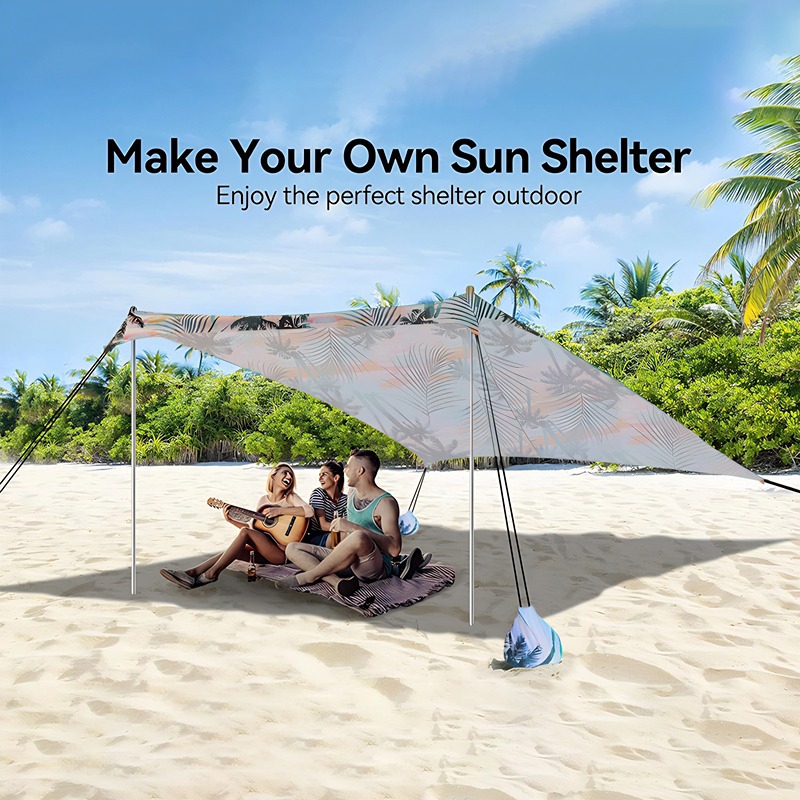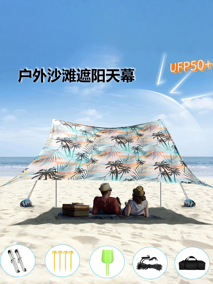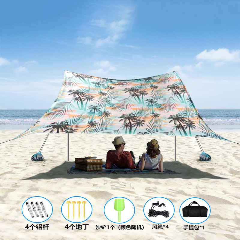 야외 휴대용 비치 라이크라 캐노피 인쇄 캠핑 텐트 선스크린 방풍 캐노피 캠핑 국경