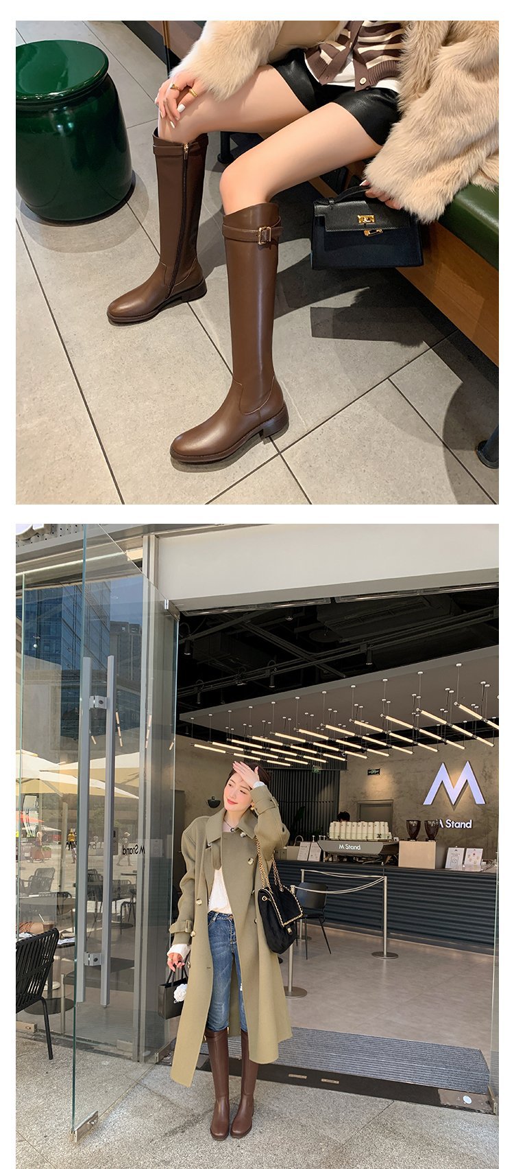 다크 브라운 플랫 나이츠 부츠 여성 2024 가을 겨울 신작 한국식 작은 저발 하이부츠 슬리밍 기모 부츠스토어 가기