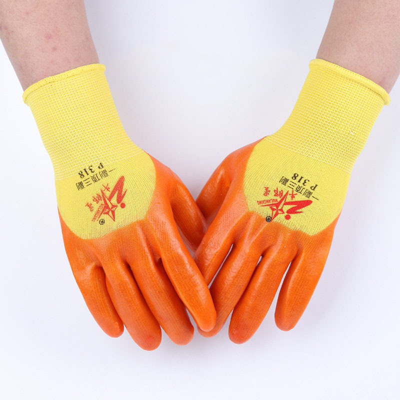 좋은 보호 알테어 필름 장갑 플라스틱 코팅 두꺼운 고무 미끄럼 방지 내화 꽃 내마모성 고무 노동 장갑스토어 가기