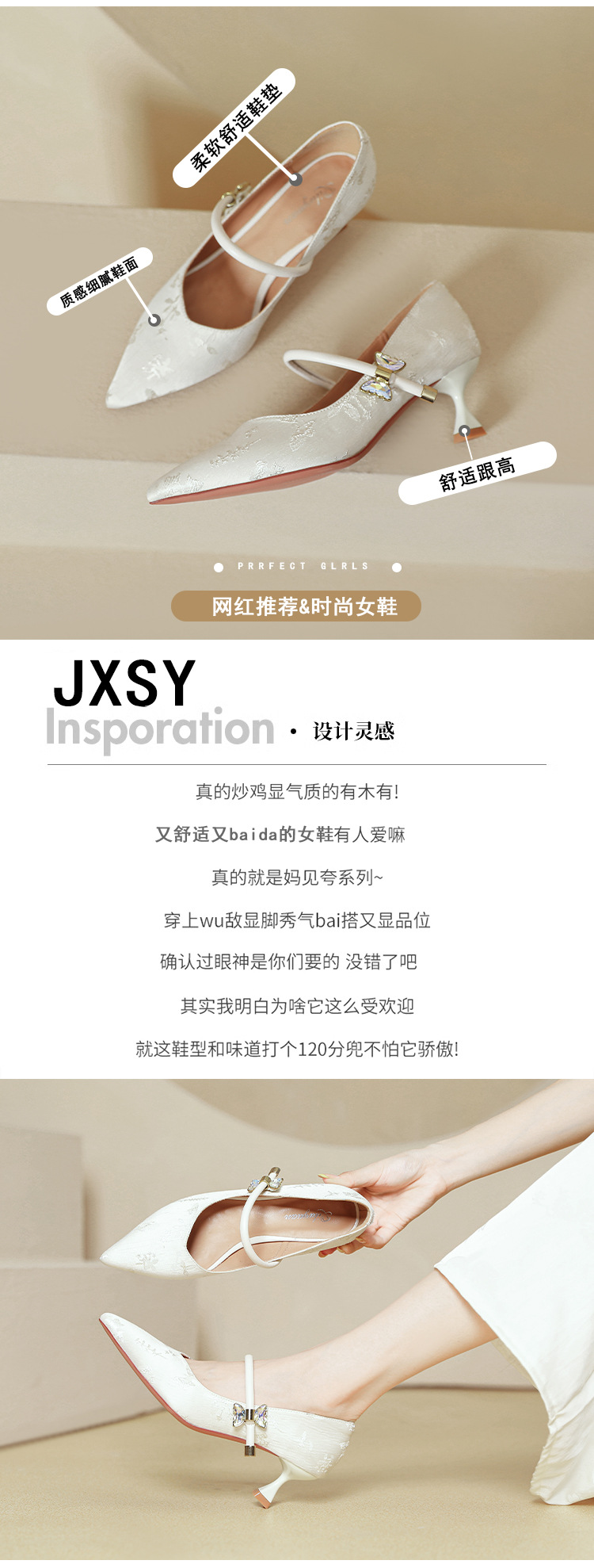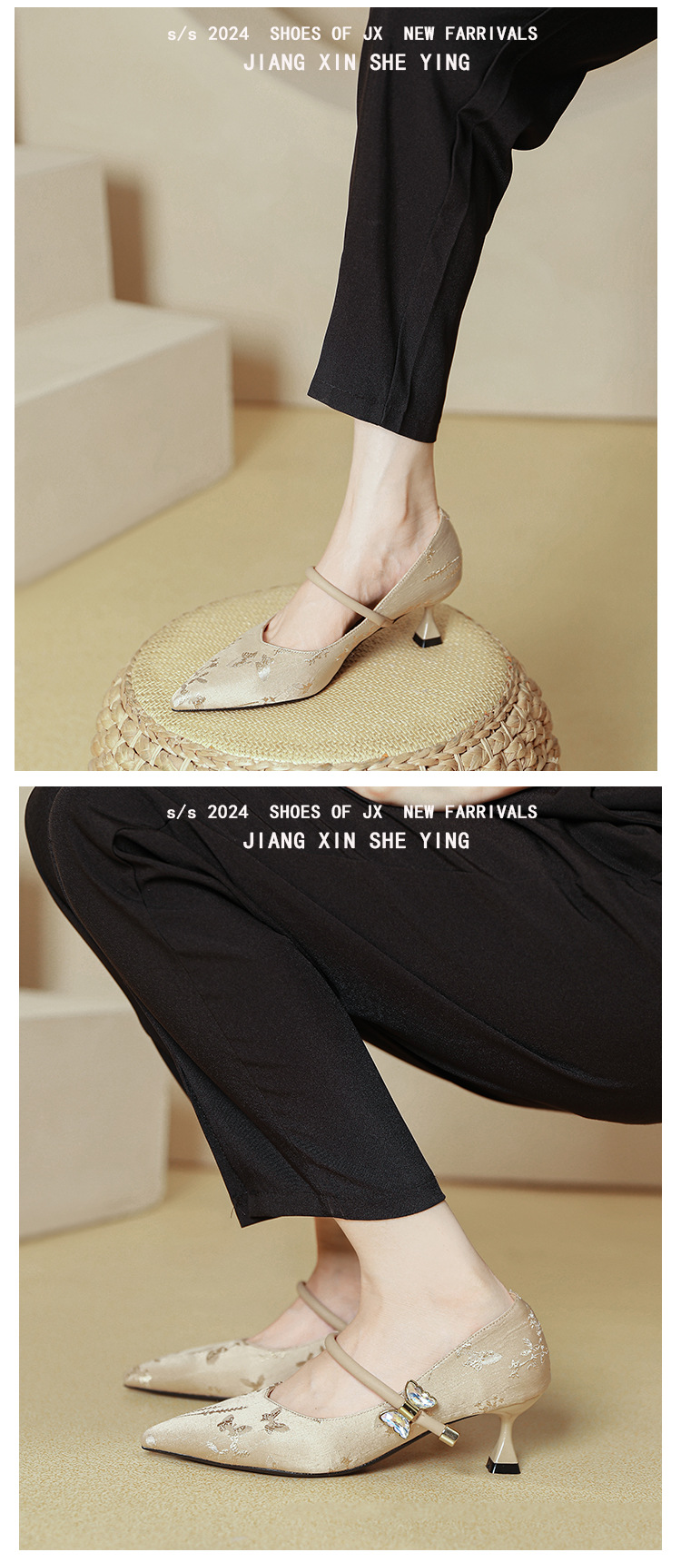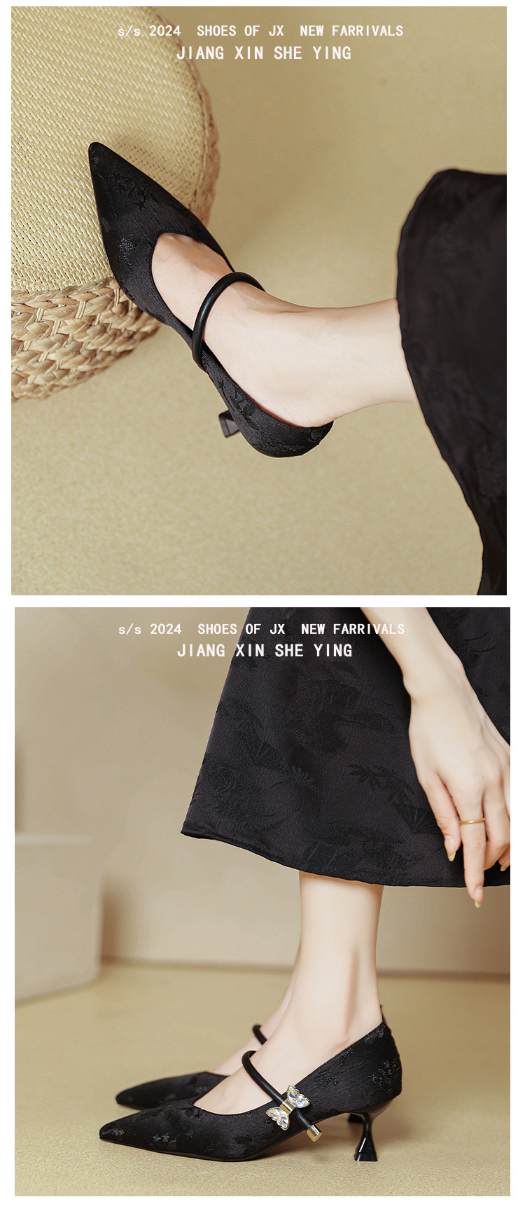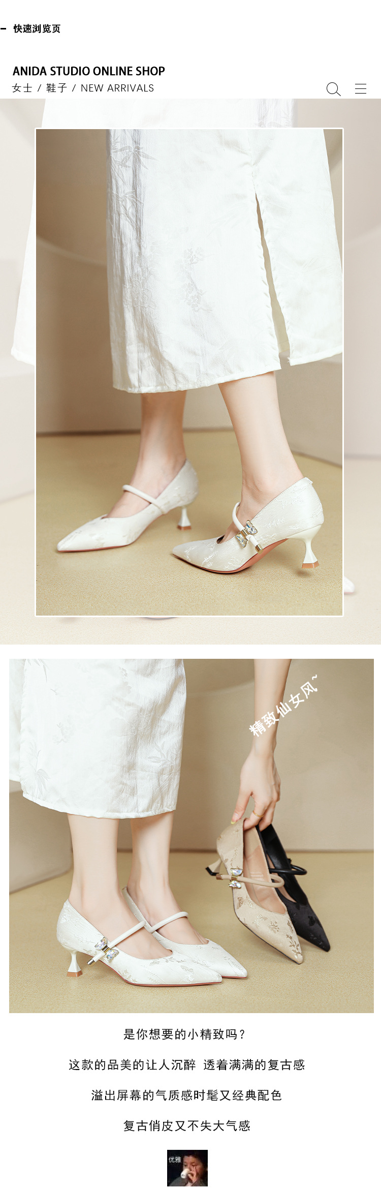 뾰족코 하이힐 얇은 굽 2025 신상품 후이저우 여성화 원스트랩 메리제인 슈즈 부드러운 가죽 굽 프렌치 스타일 신발스토어 가기