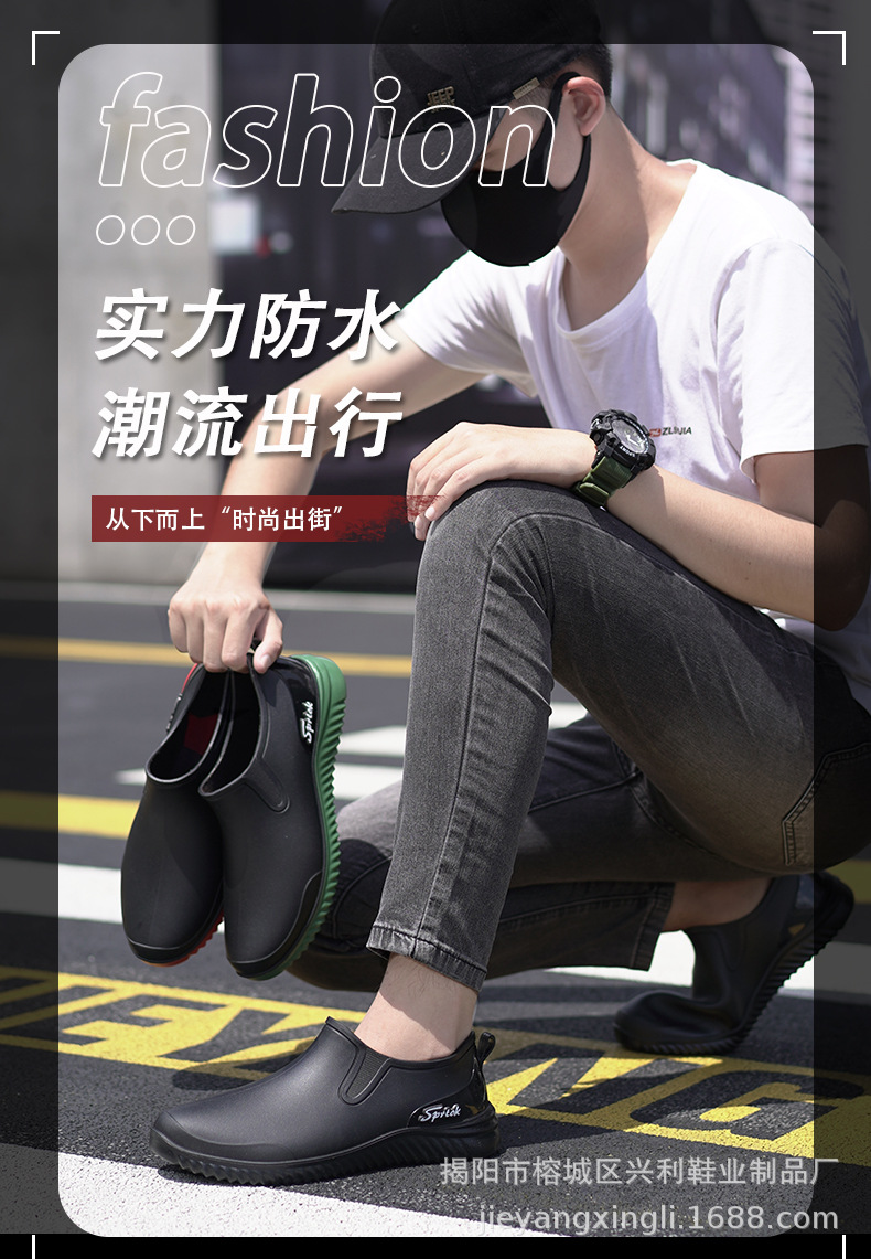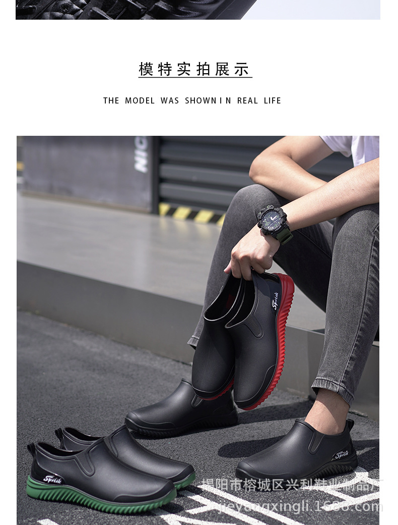 남성 패션 장화 낮은 튜브 미끄럼 방지 장화 편안한 낚시 신발 주방 세차 작업 고무 신발 성인 물 신발 남성