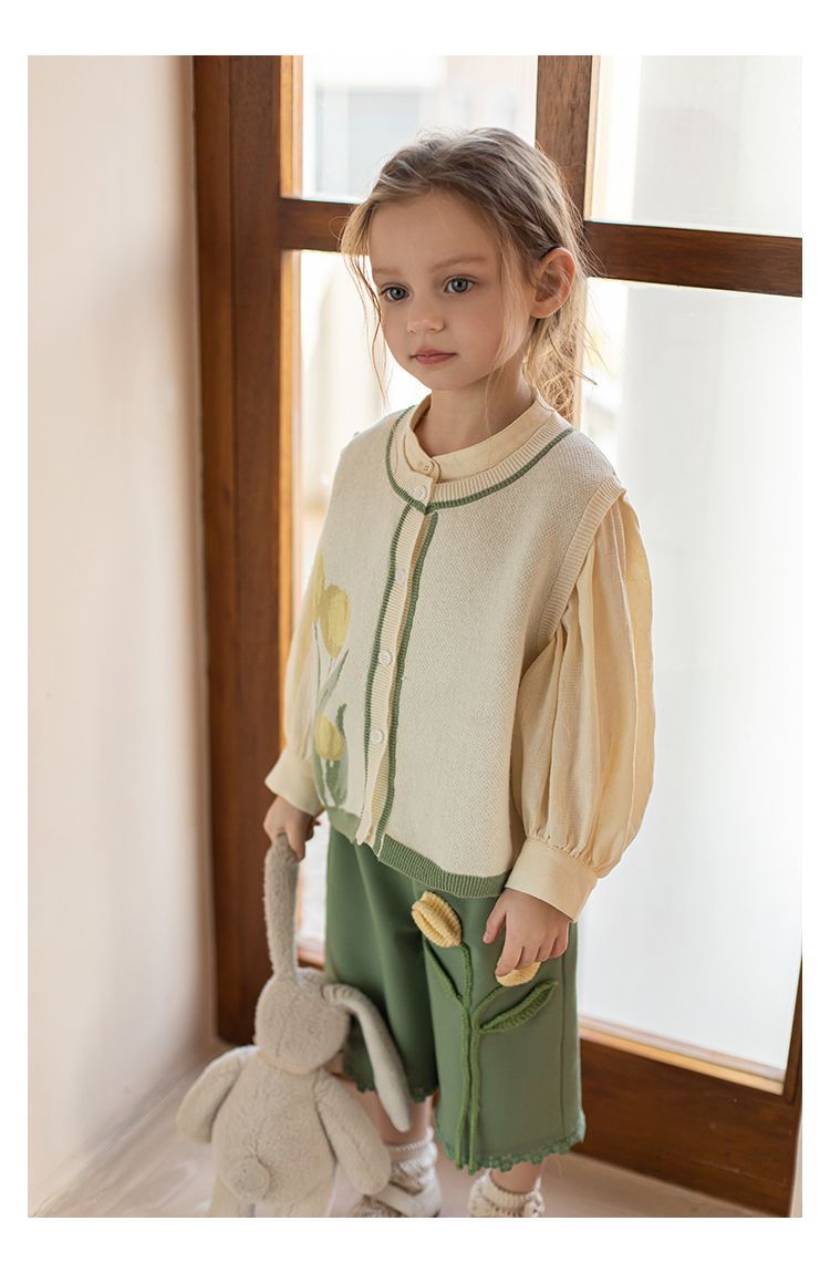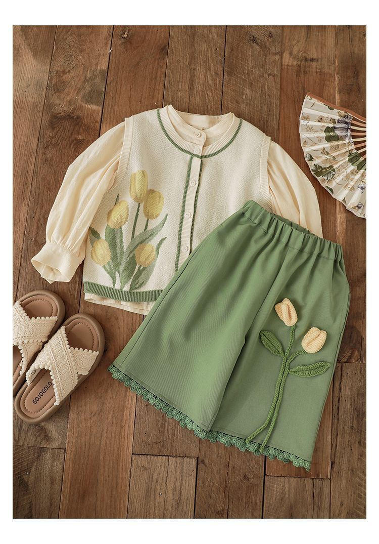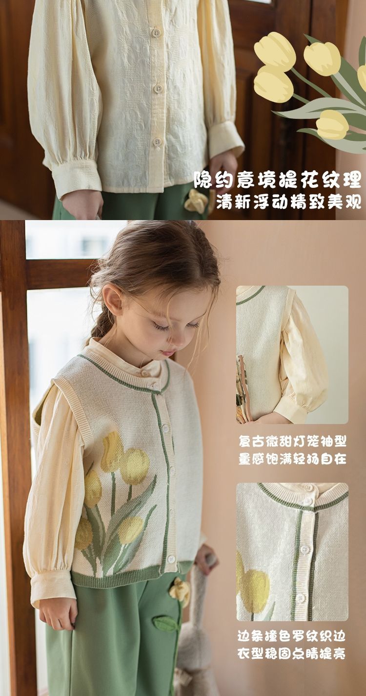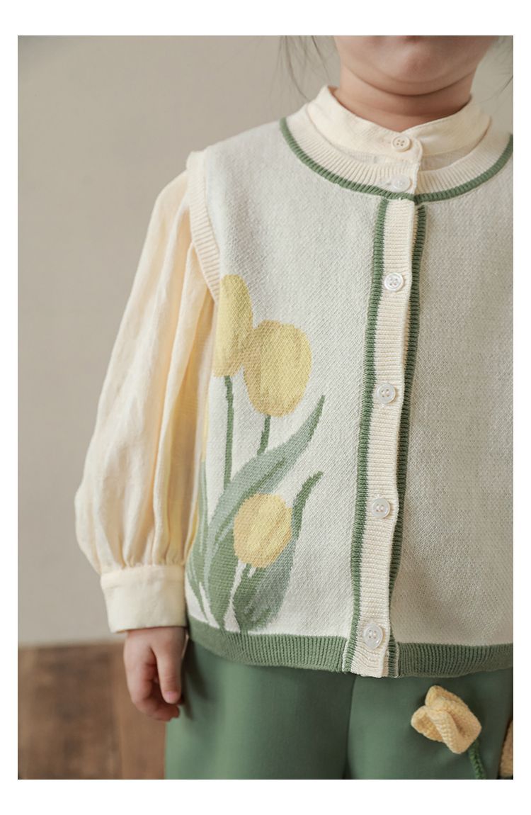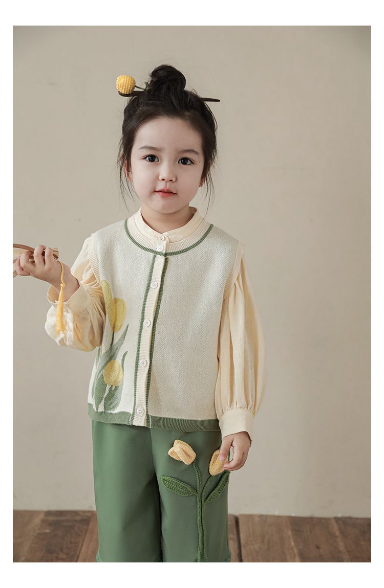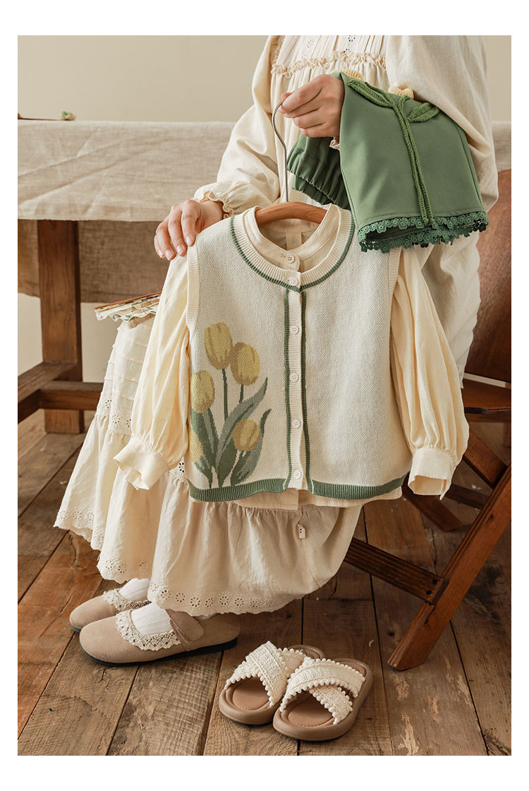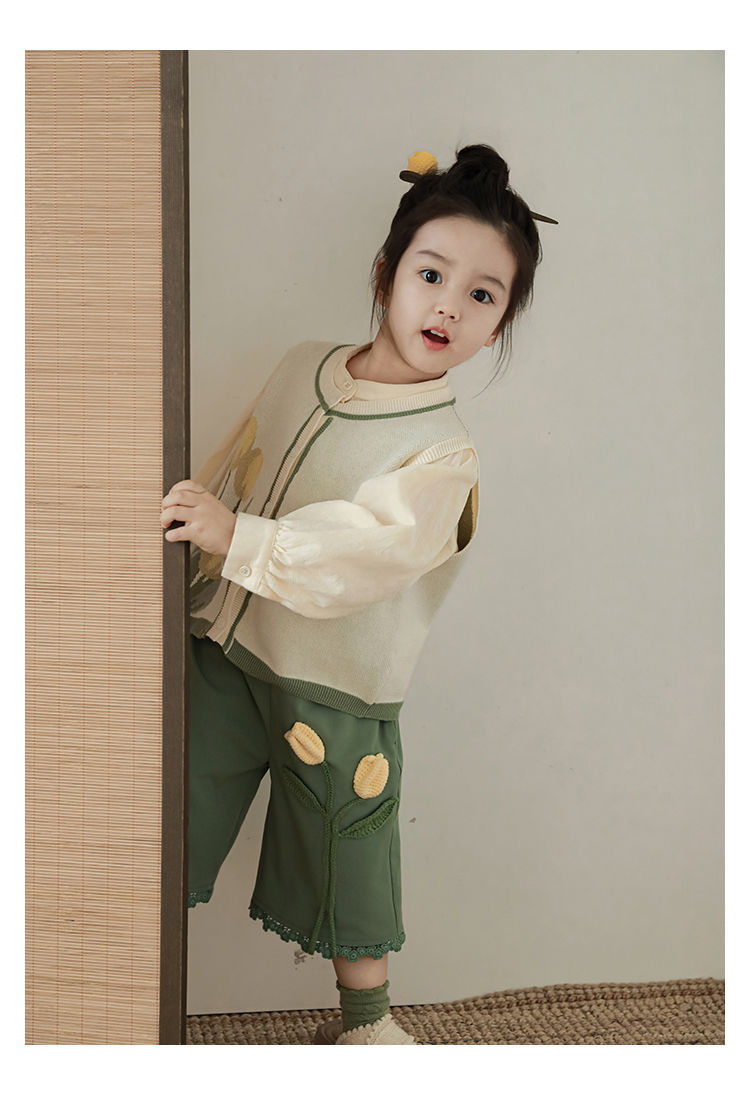 여자 가을 세트 참깨 포인트 자카드 스웨터 조끼 어린이 레이스 튤립 바지스토어 가기