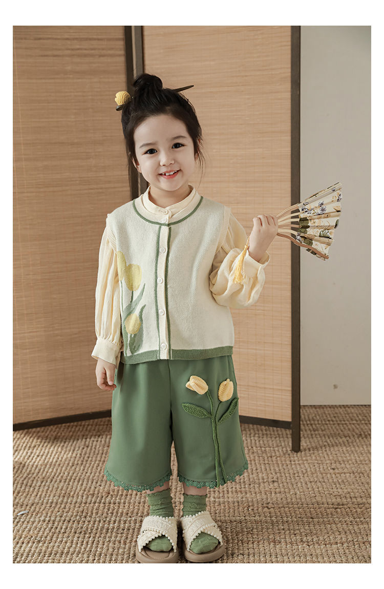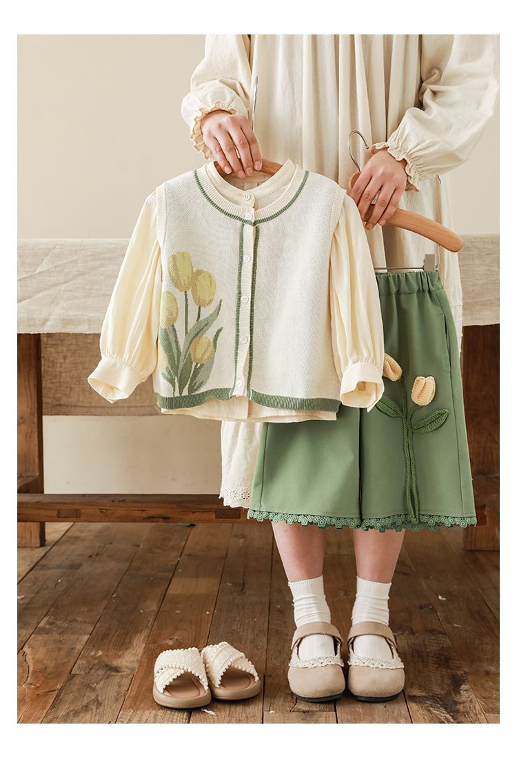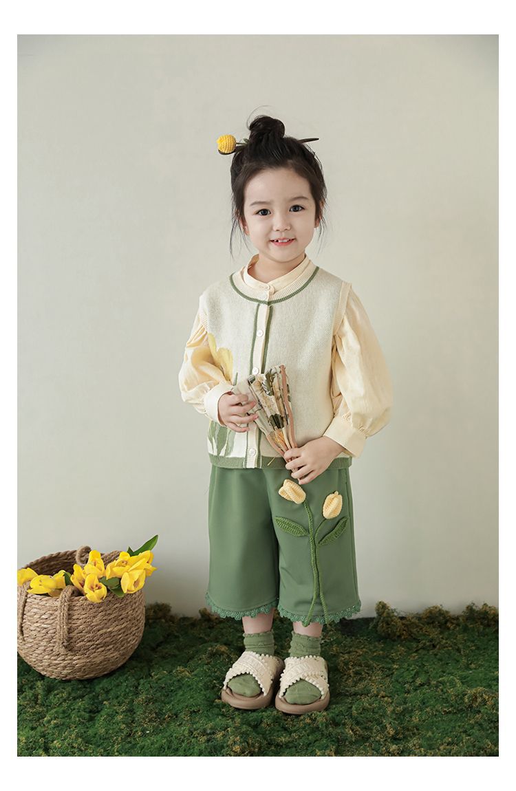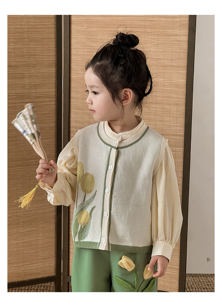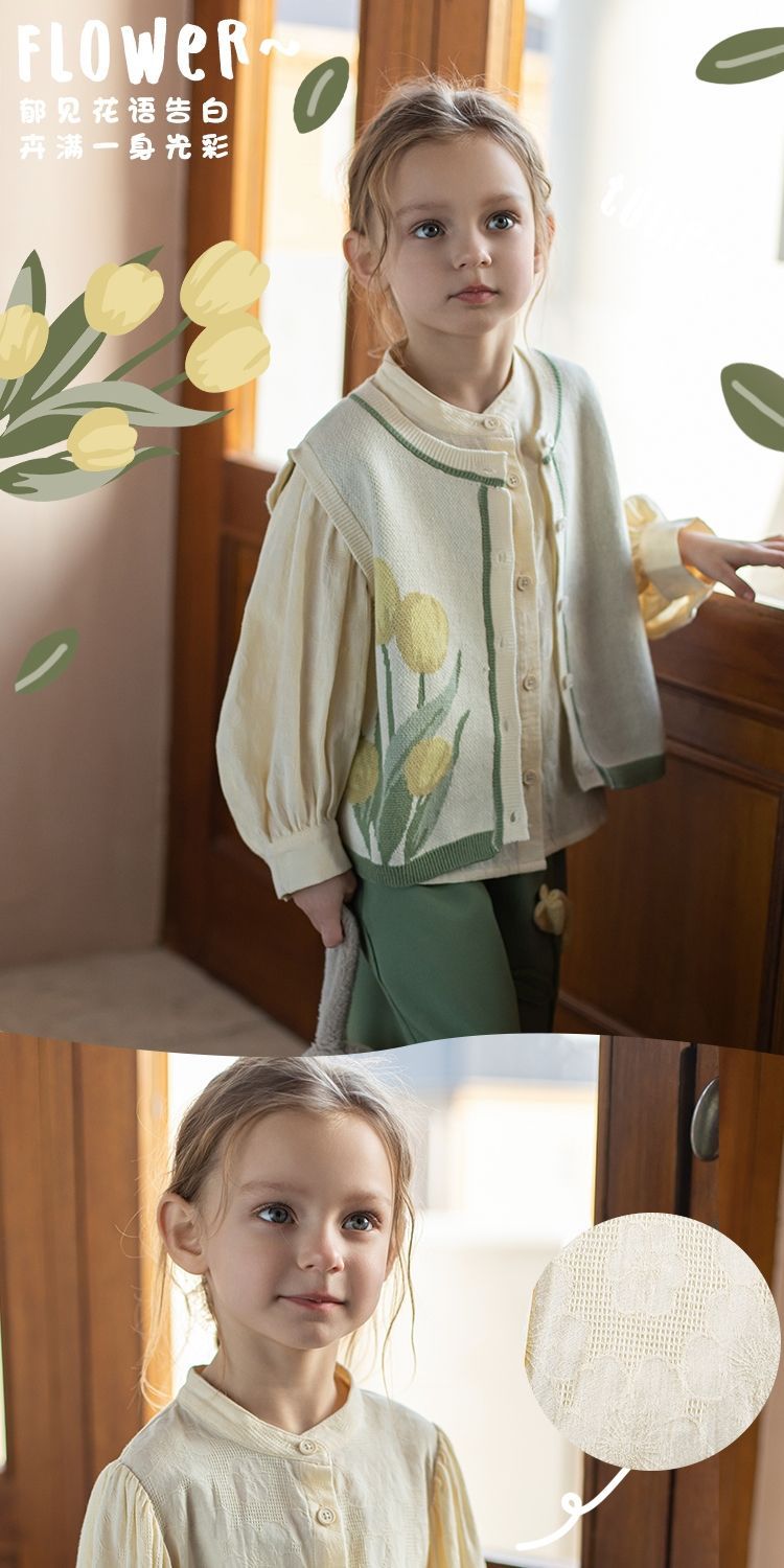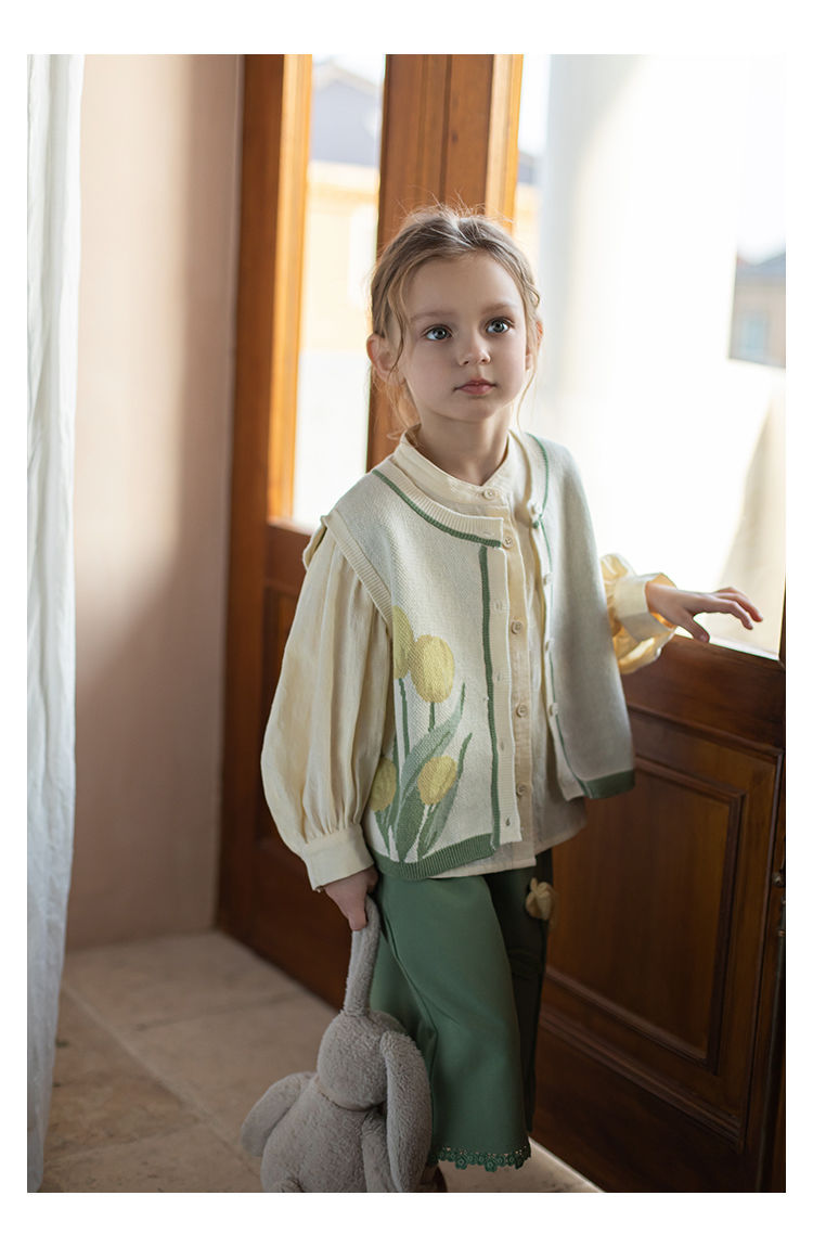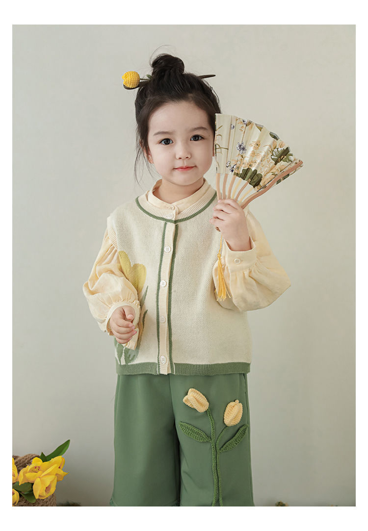 여자 가을 세트 참깨 포인트 자카드 스웨터 조끼 어린이 레이스 튤립 바지스토어 가기