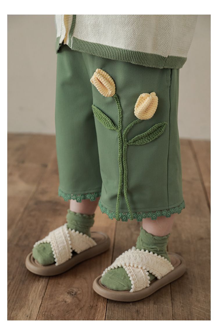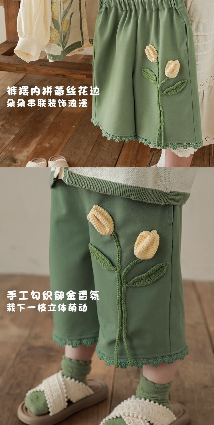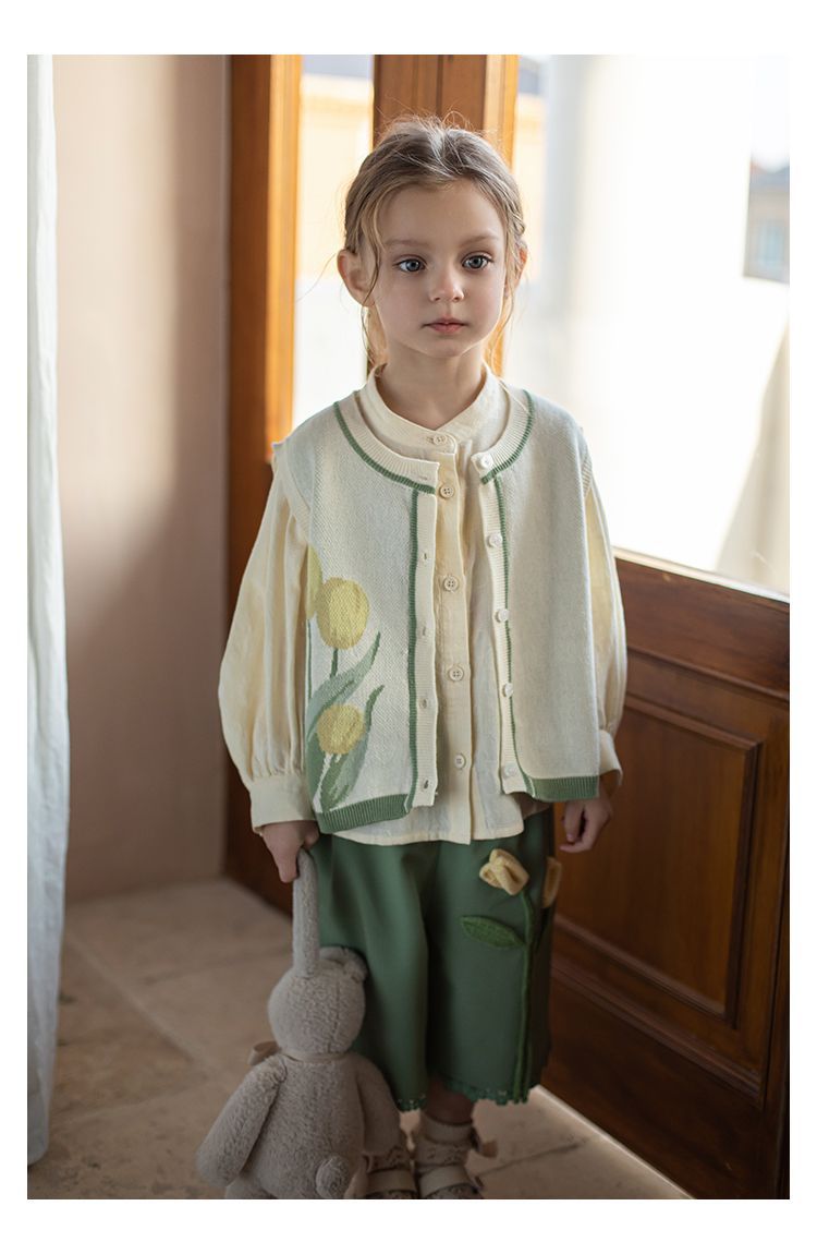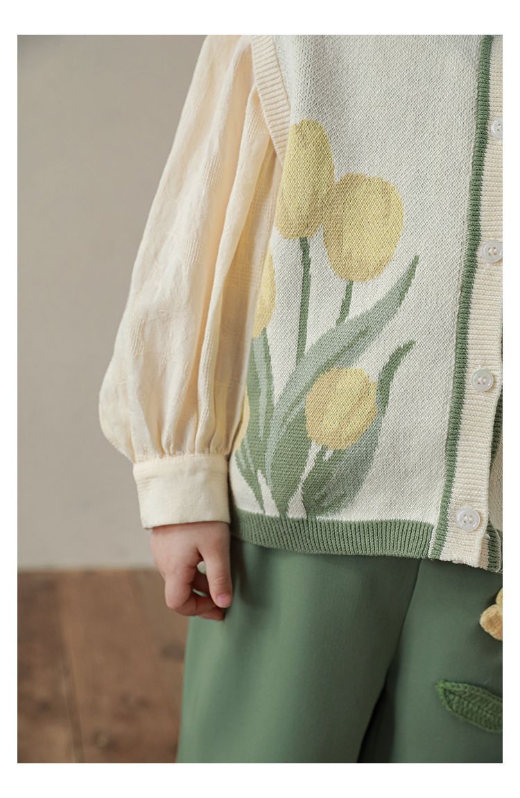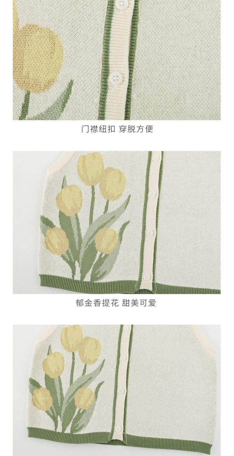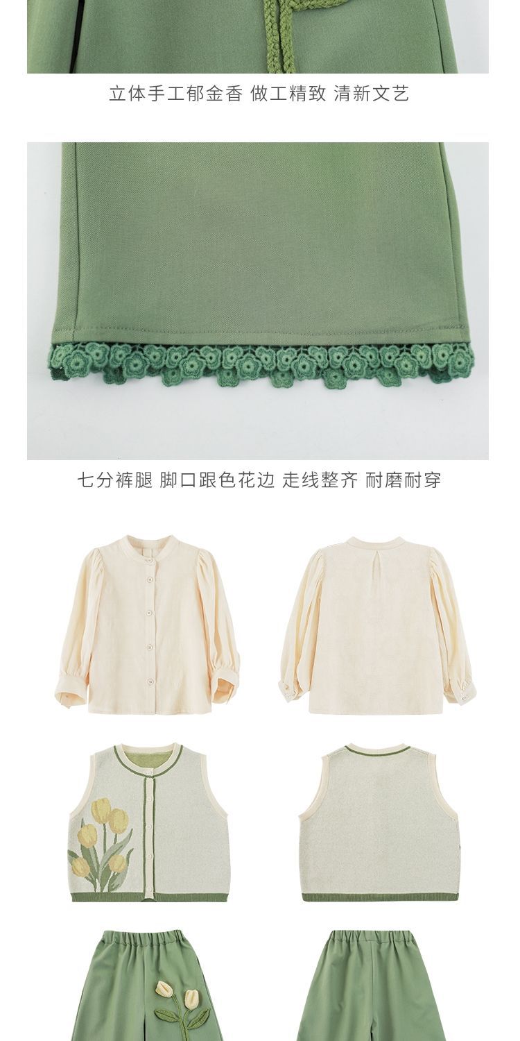 여자 가을 세트 참깨 포인트 자카드 스웨터 조끼 어린이 레이스 튤립 바지스토어 가기