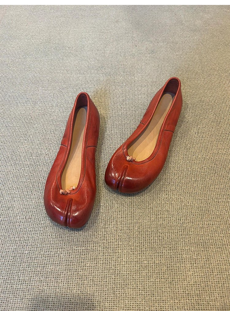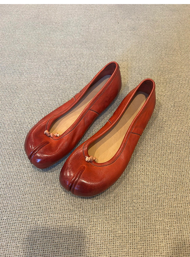 양가죽 버전 ~ 정품 가죽 복고풍 스플릿 발가락 신발 여성의 얕은 입 돼지 트로터 싱글 레이어 신발 올매치 컬러 광택 오래된 발레 플랫 슈즈
