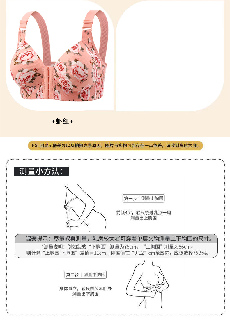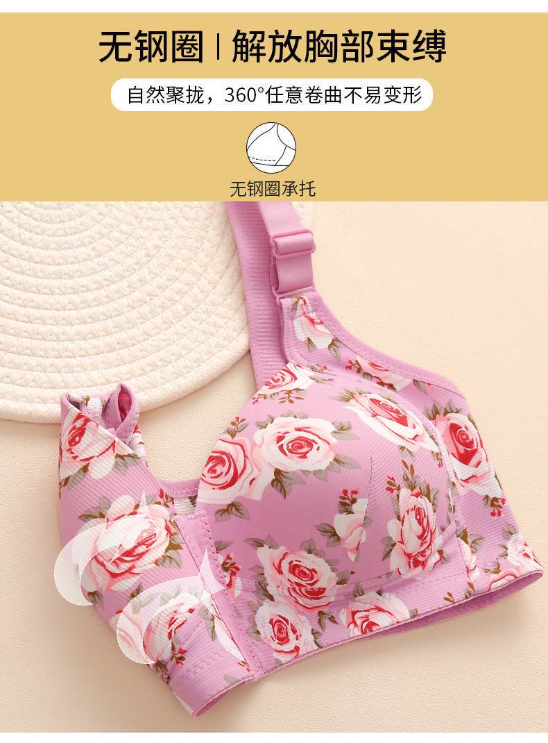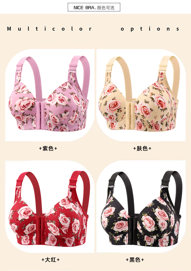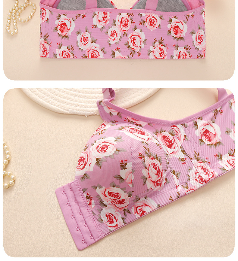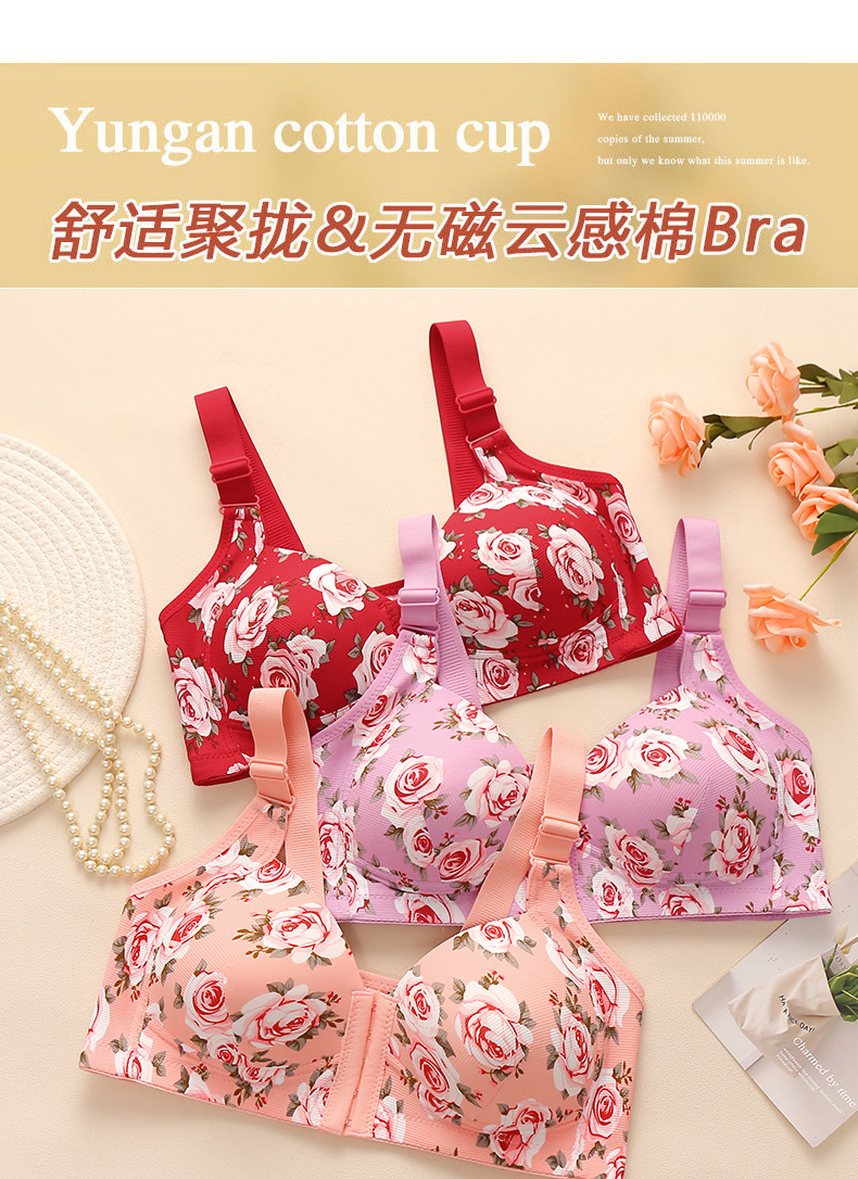 국경 앞 버클 브래지어 얇은 대형 브래지어 의류 여성용 스틸 링 장미 인쇄 제조 업체 대외 무역 플러스 사이즈 브래지어스토어 가기
