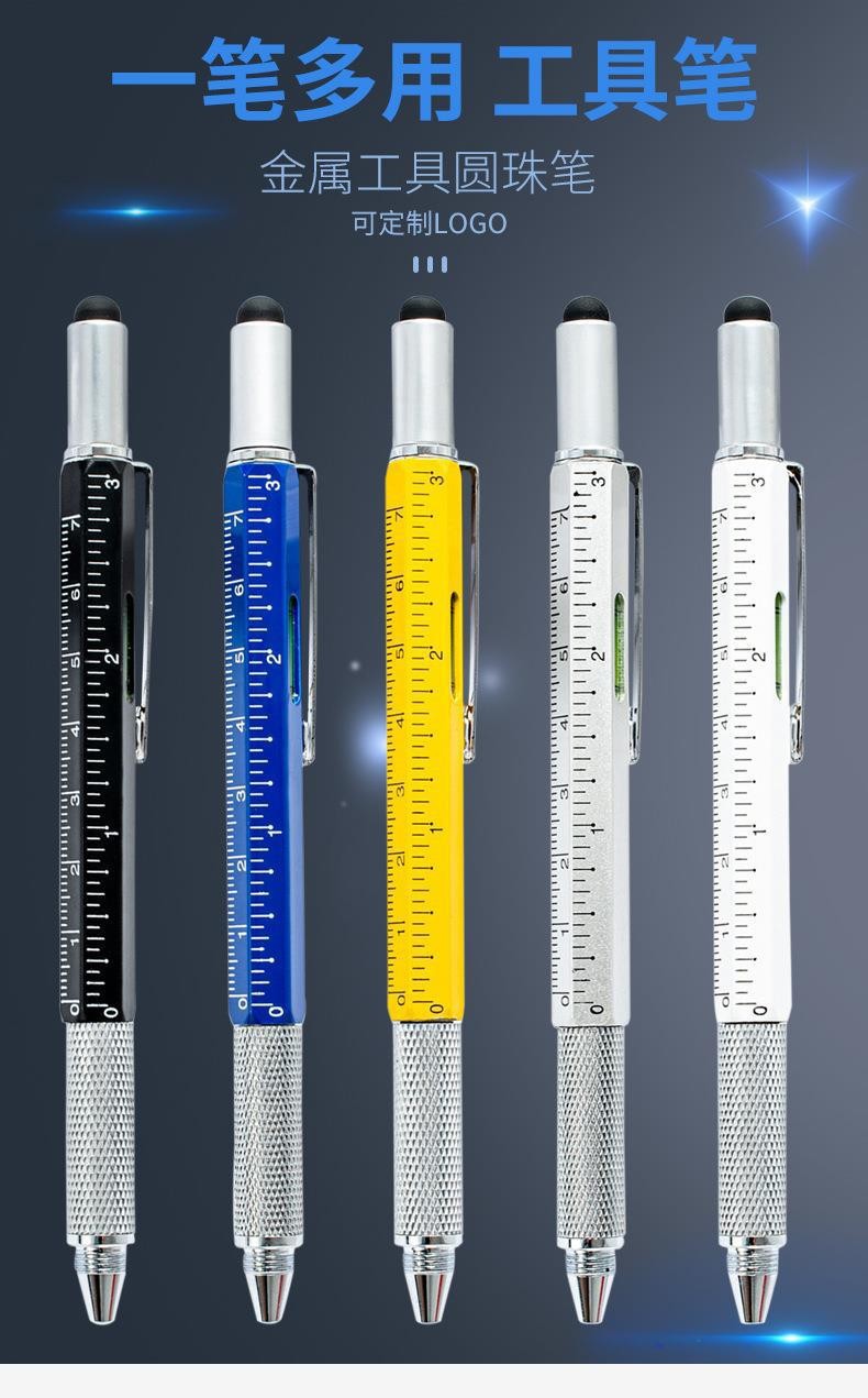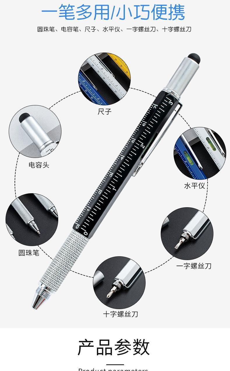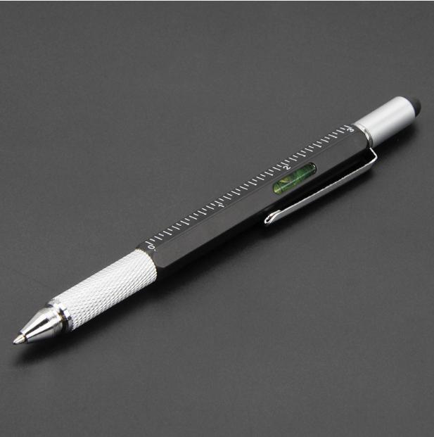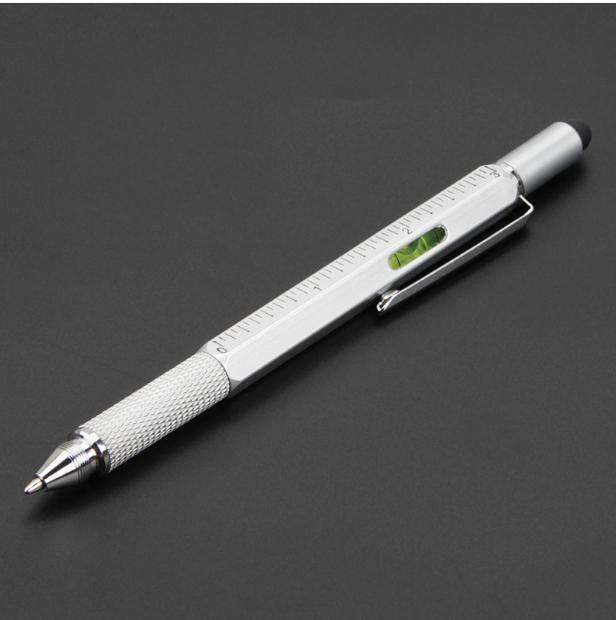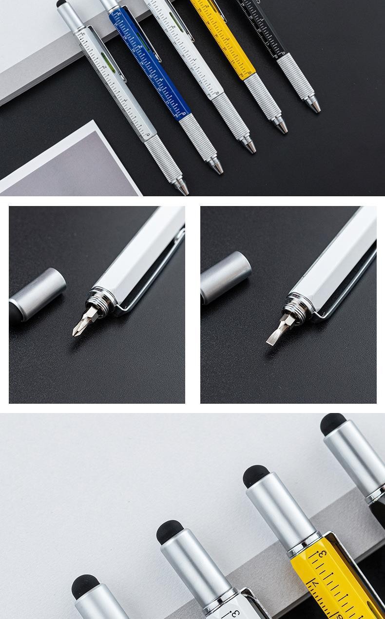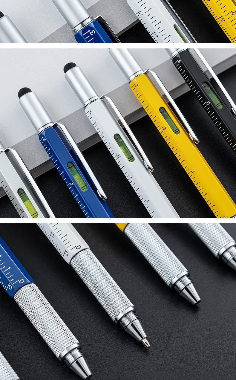 다기능 금속 볼펜 스크루 드라이버 레벨 스케일 금속 도구 펜 6 대 1 용량 성 스타일러스스토어 가기