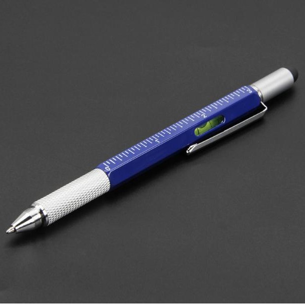다기능 금속 볼펜 스크루 드라이버 레벨 스케일 금속 도구 펜 6 대 1 용량 성 스타일러스