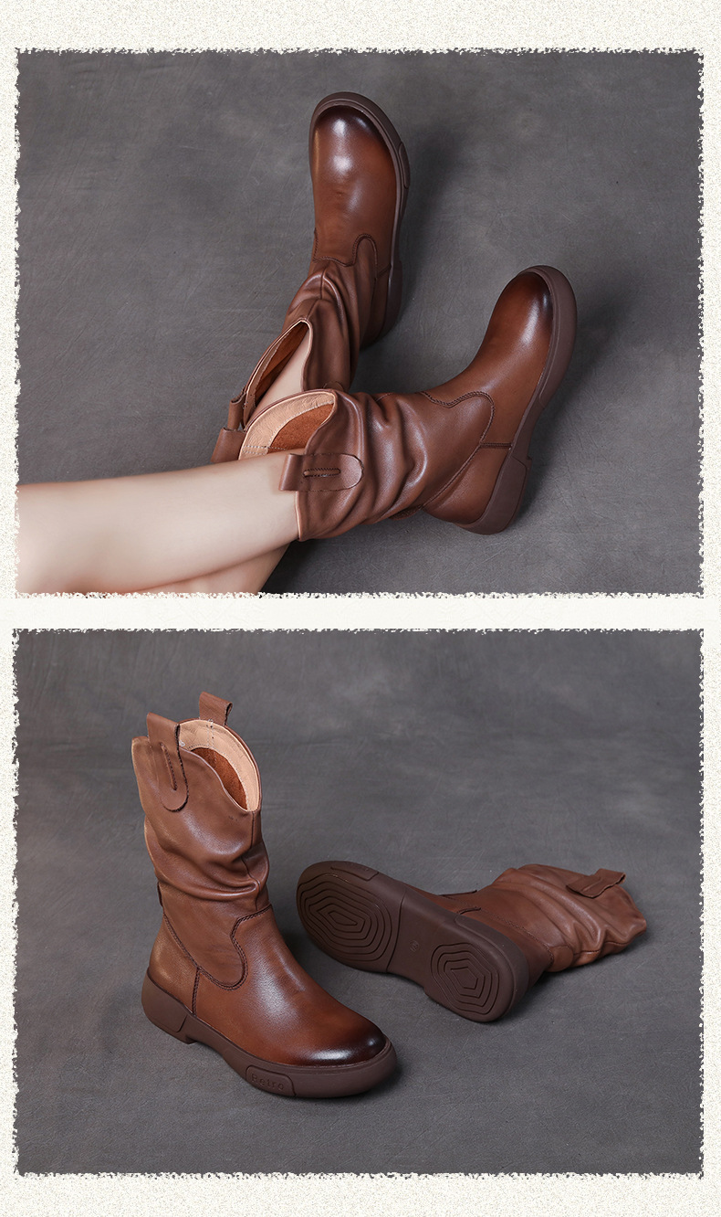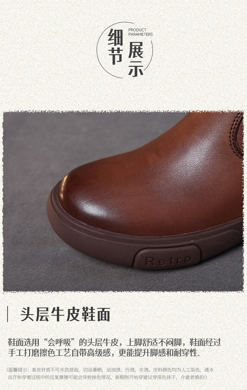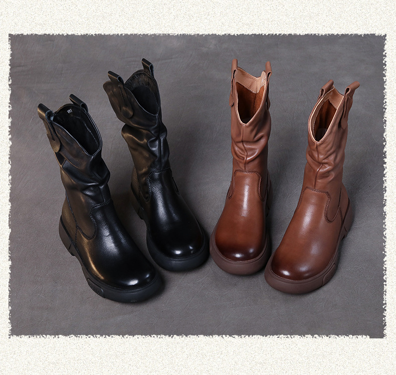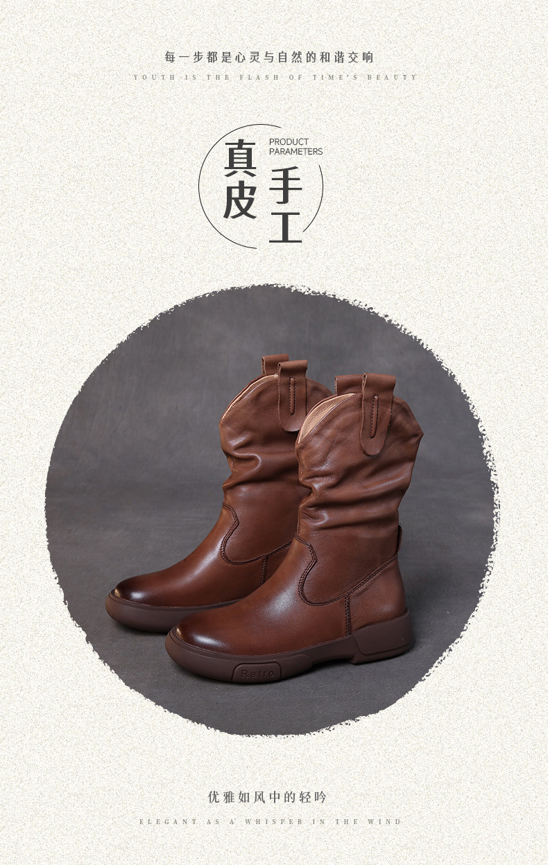 탑 레이어 소 가죽 야외 승마 부츠 스태킹 부츠 중급 부츠 여성 플랫 소프트 가죽 가을과 겨울 가죽 마틴 부츠 웨스턴