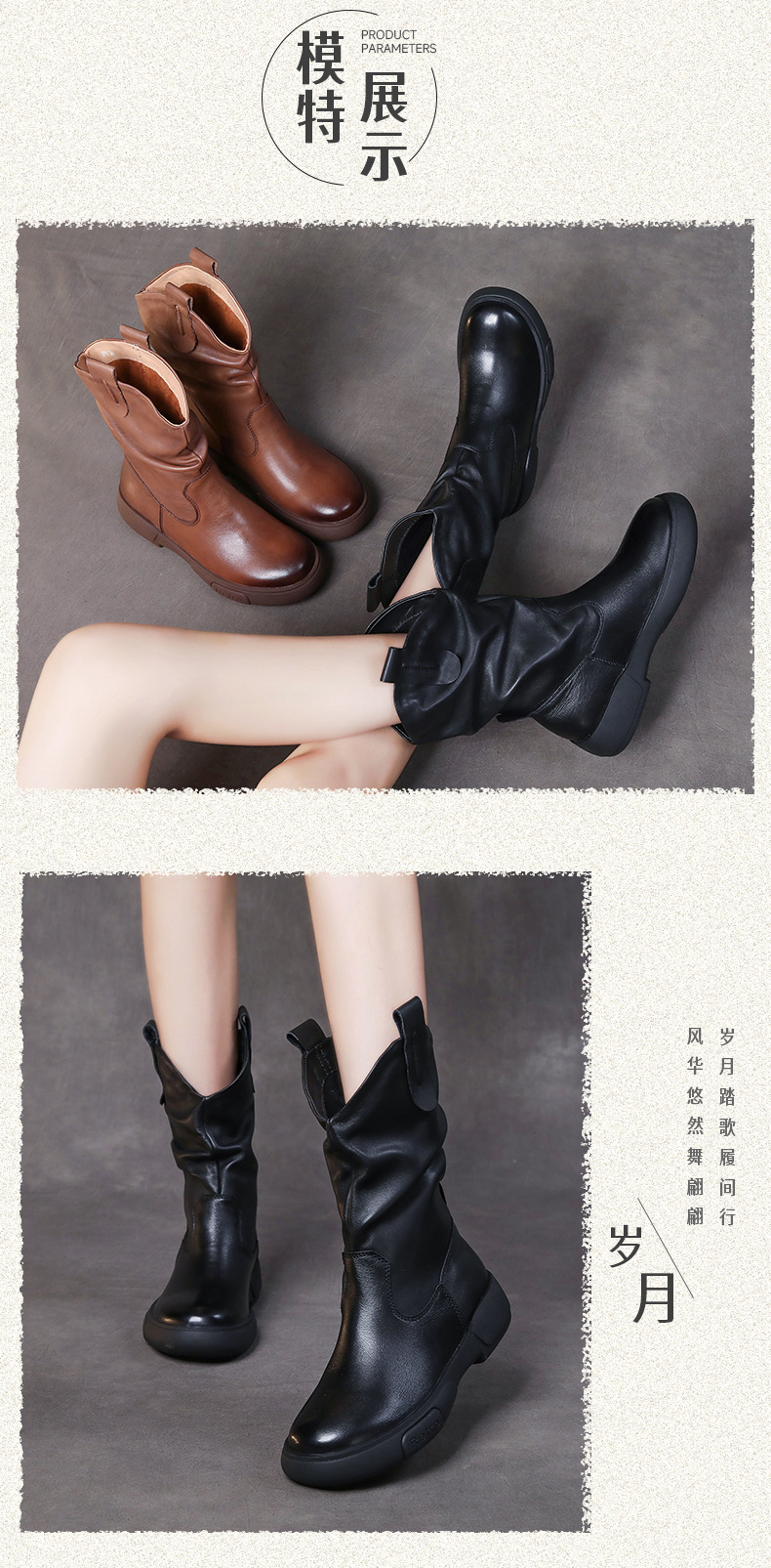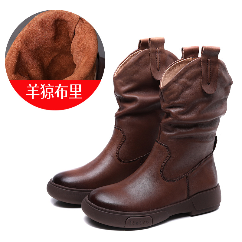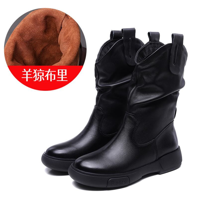 탑 레이어 소 가죽 야외 승마 부츠 스태킹 부츠 중급 부츠 여성 플랫 소프트 가죽 가을과 겨울 가죽 마틴 부츠 웨스턴스토어 가기