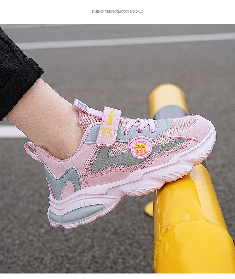 Babu bean 어린이 신발 소녀 2024 새로운 봄과 가을 통기성 메쉬 달리기 초등학생 운동화 소년