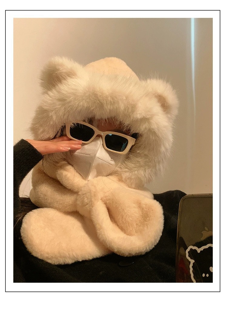 겨울 올매치 따뜻한 귀여운 목 곰 봉제 모자 스카프 원피스 두꺼운 귀 보호 모자 감기 방지 레이 펑 모자