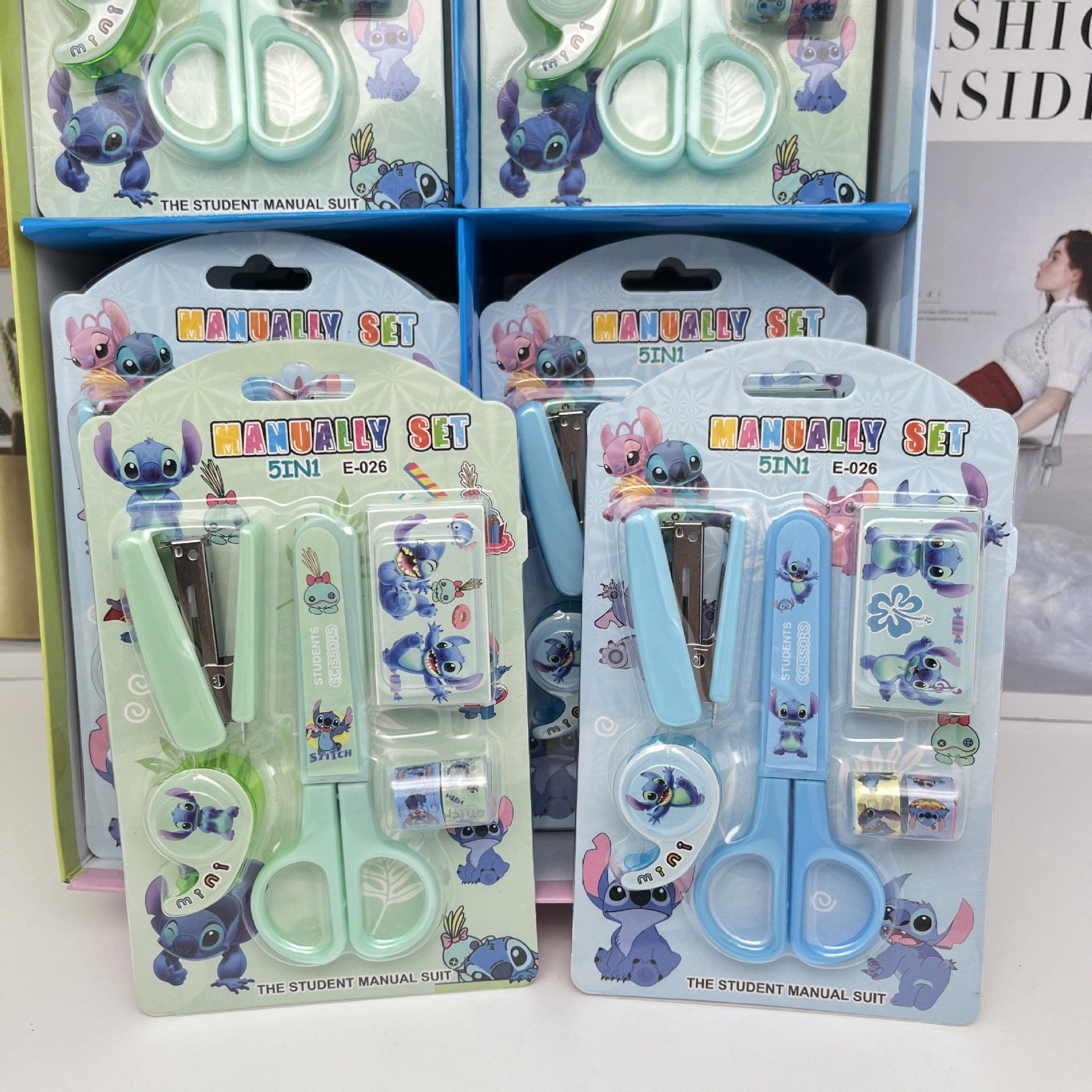 스티치 스테이플러 세트 블루 래빗 가위 테이프 스티커 네일 리프터 조합 껌 종이 시트 문구 용품