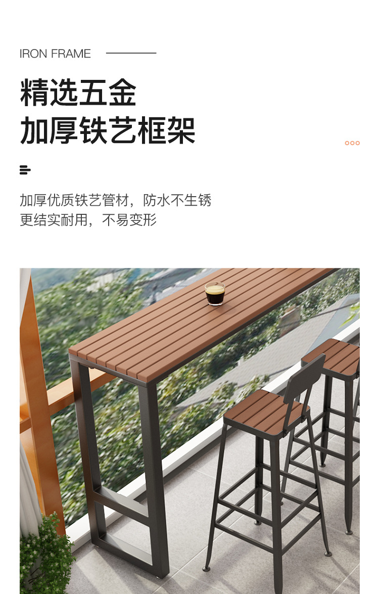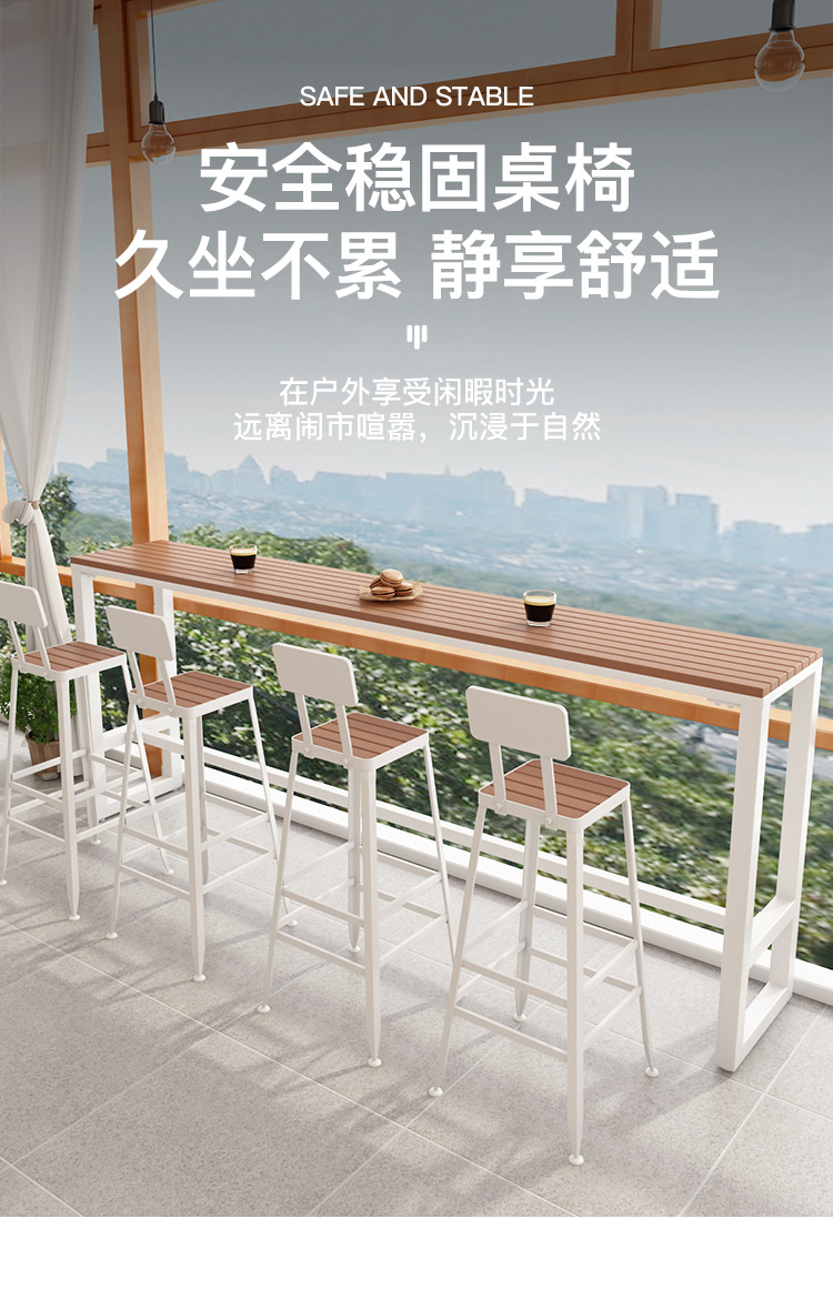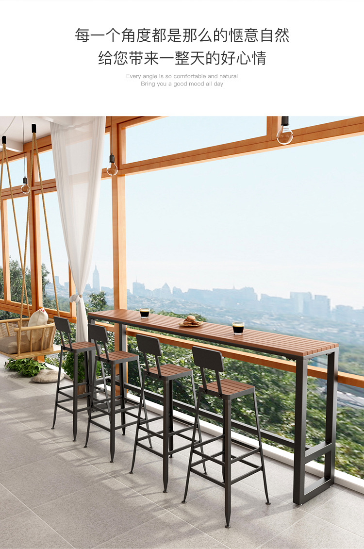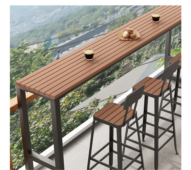 야외 선 스크린 플라스틱 우드 바 테이블과 의자 조합 상업 창 다인용 바 테이블 빌라 코트야드 가든 고블릿 테이블
