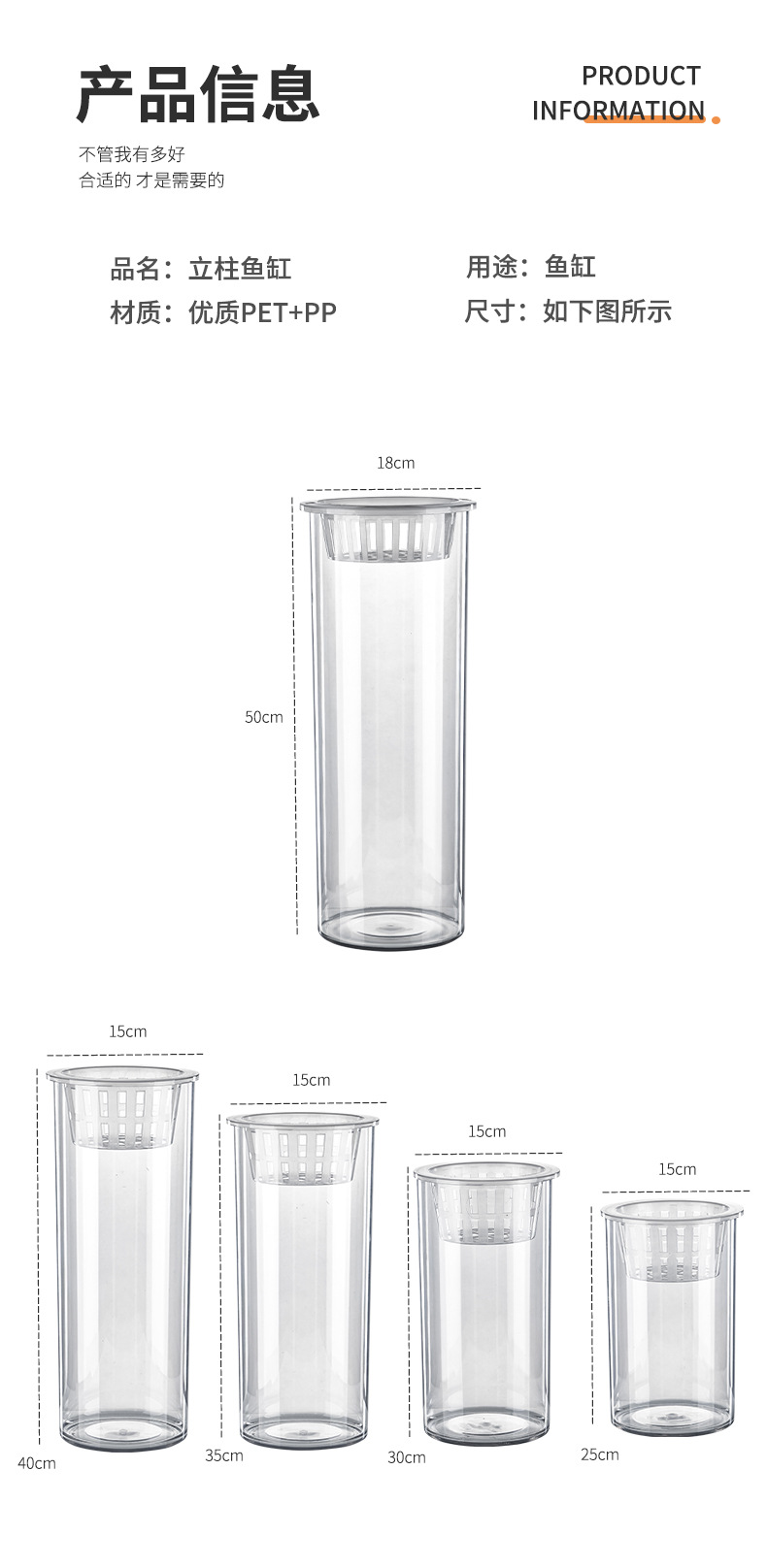 새로운 원통형 어항 일체형 플라스틱 방수 내구성 거실 투명 장식용 탁상 생태 수조스토어 가기
