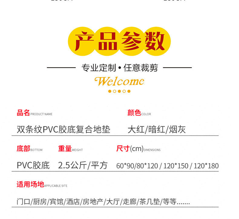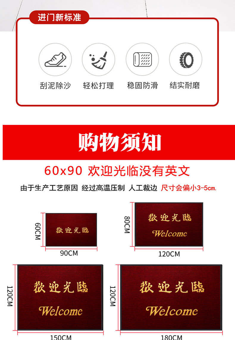 规格:60*90,80*120,90*120,90*180,120*150,120*180,120*200,注意:60*90只有欢迎光临,没有英文,80*120以上是欢迎光临中英文