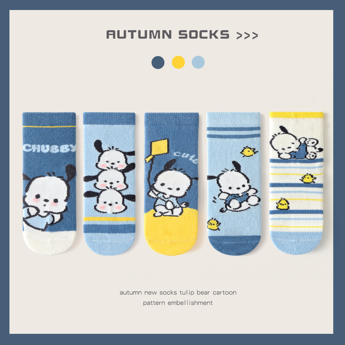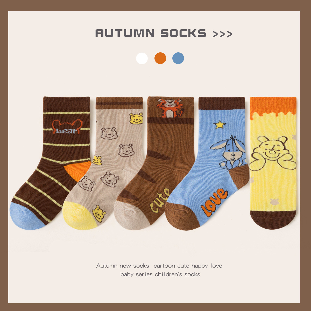 2024 어린이 양말 가을 만화 중간 튜브 양말 귀여운 곰 소년과 소녀 중급 A 면 양말 아기 양말