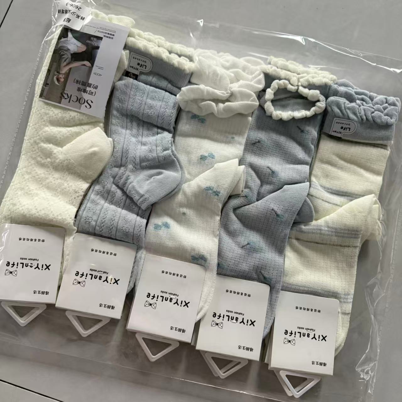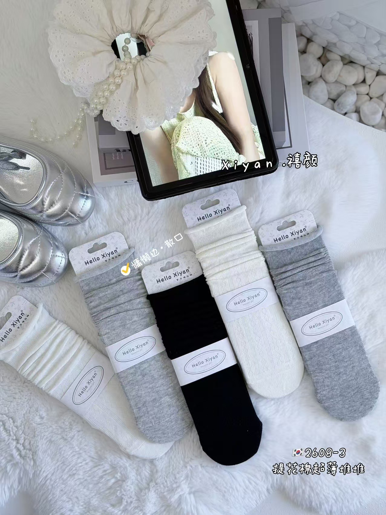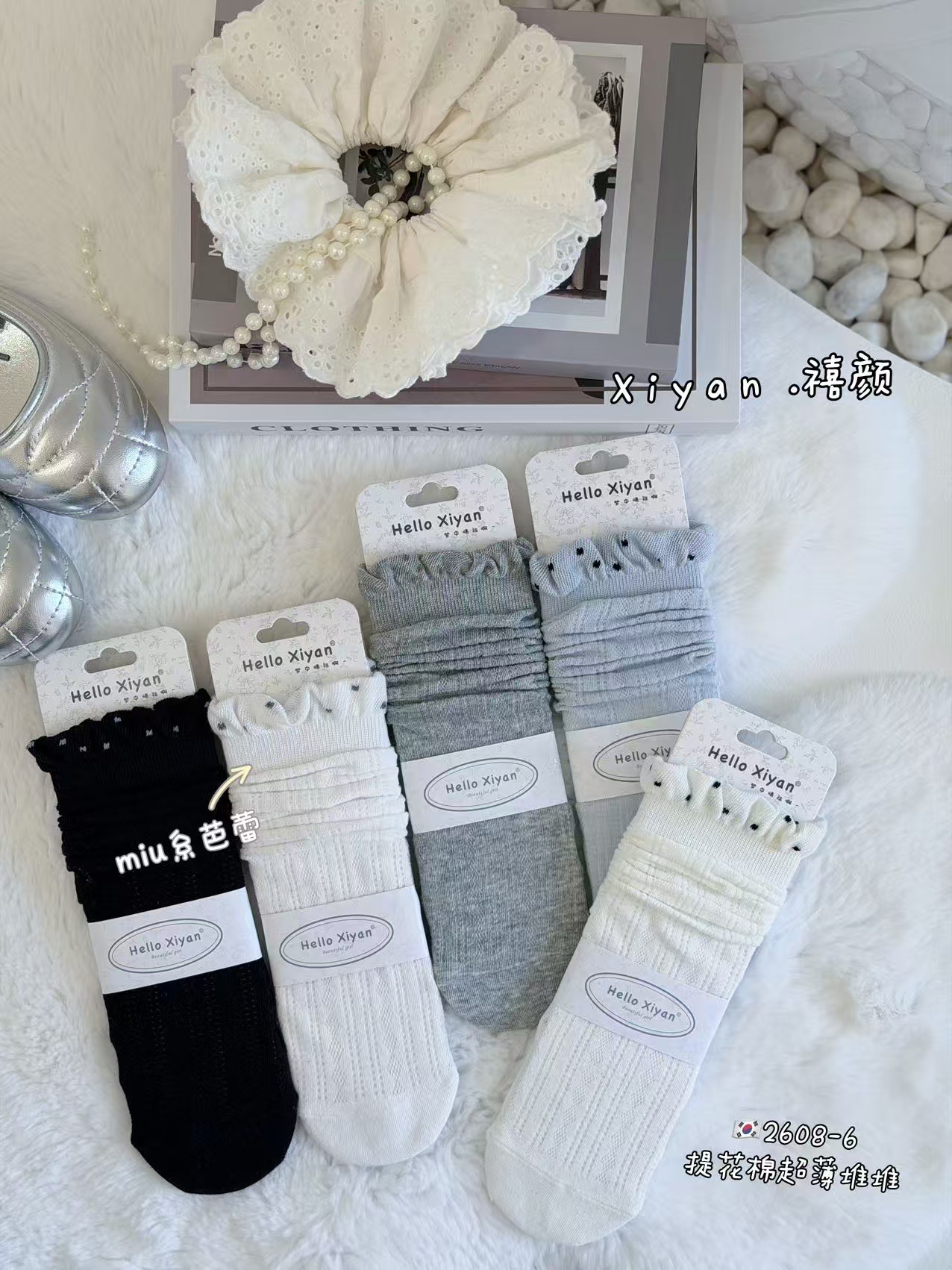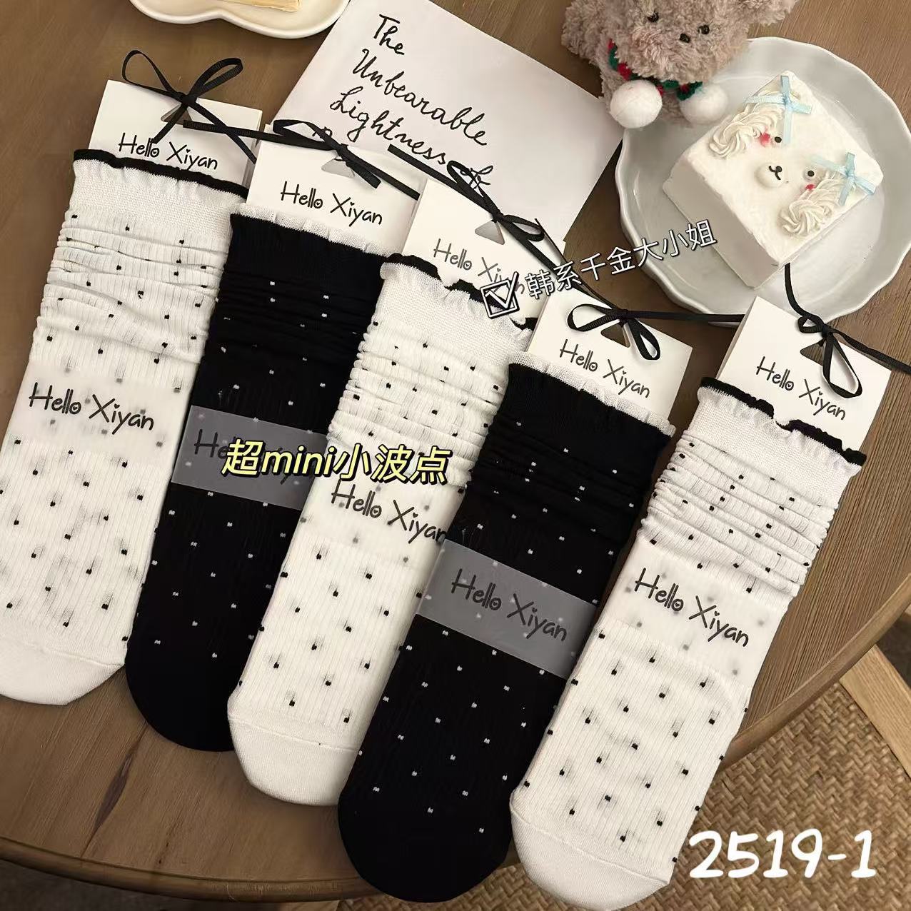 인스 트렌디한 중간 길이 양말, 봄 여름 한국 스타일 여성용 파일 양말, 코마면 흑백 인터넷 연예인 파일 양말