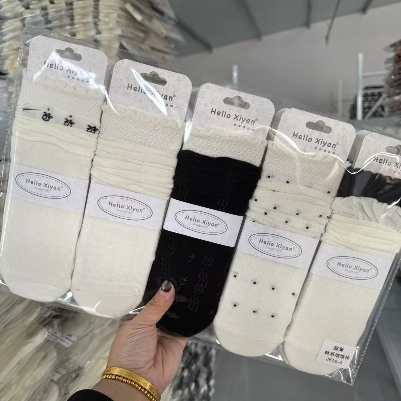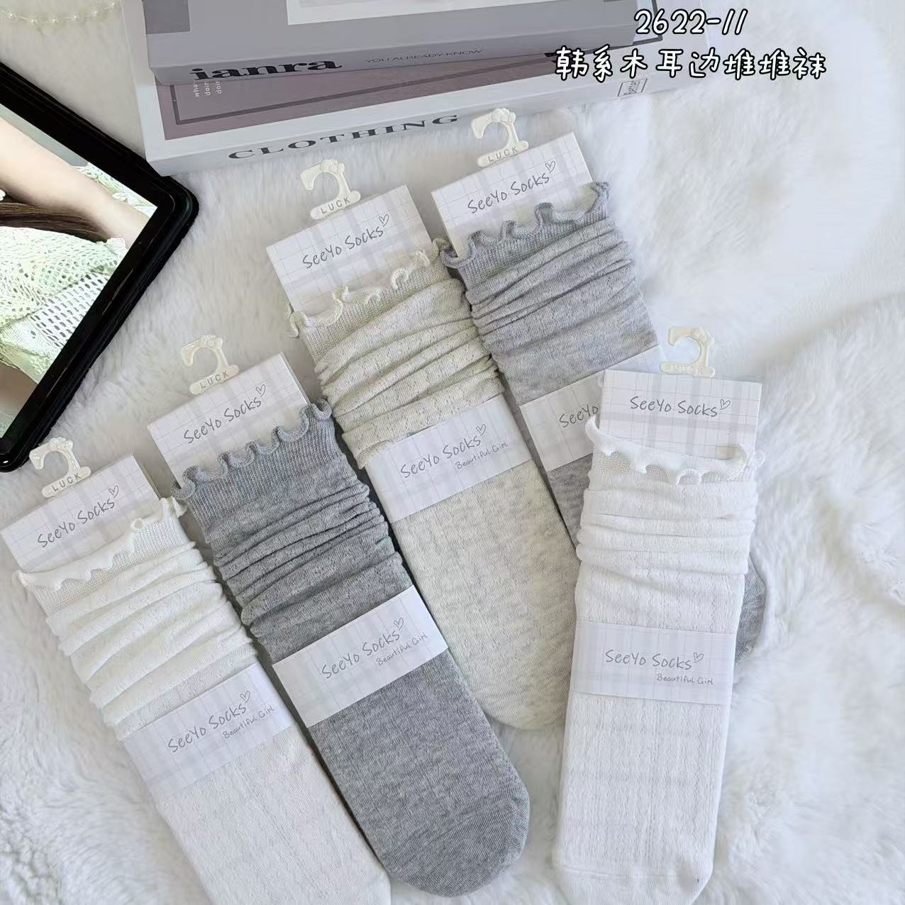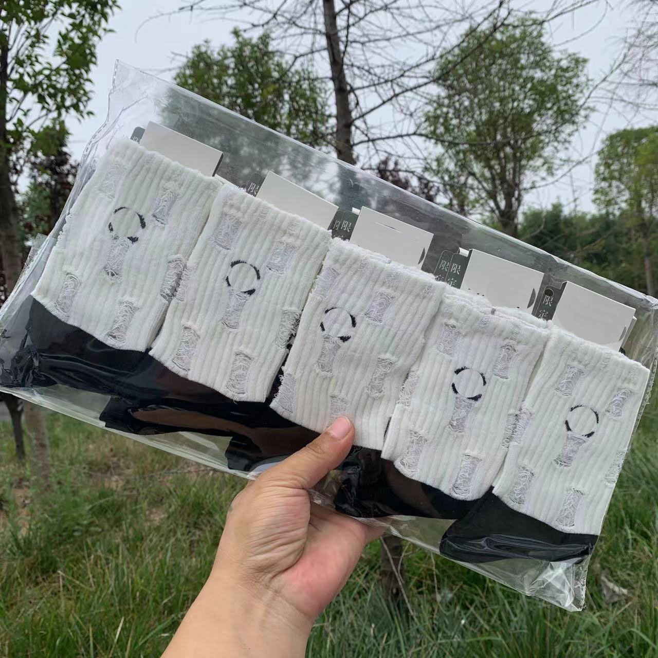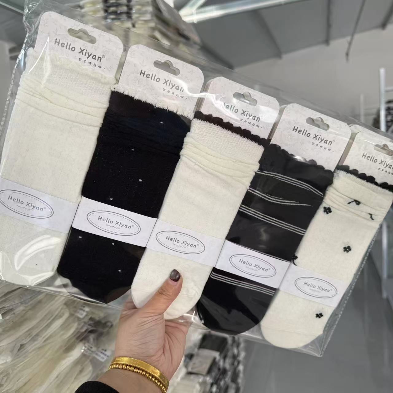 인스 트렌디한 중간 길이 양말, 봄 여름 한국 스타일 여성용 파일 양말, 코마면 흑백 인터넷 연예인 파일 양말스토어 가기