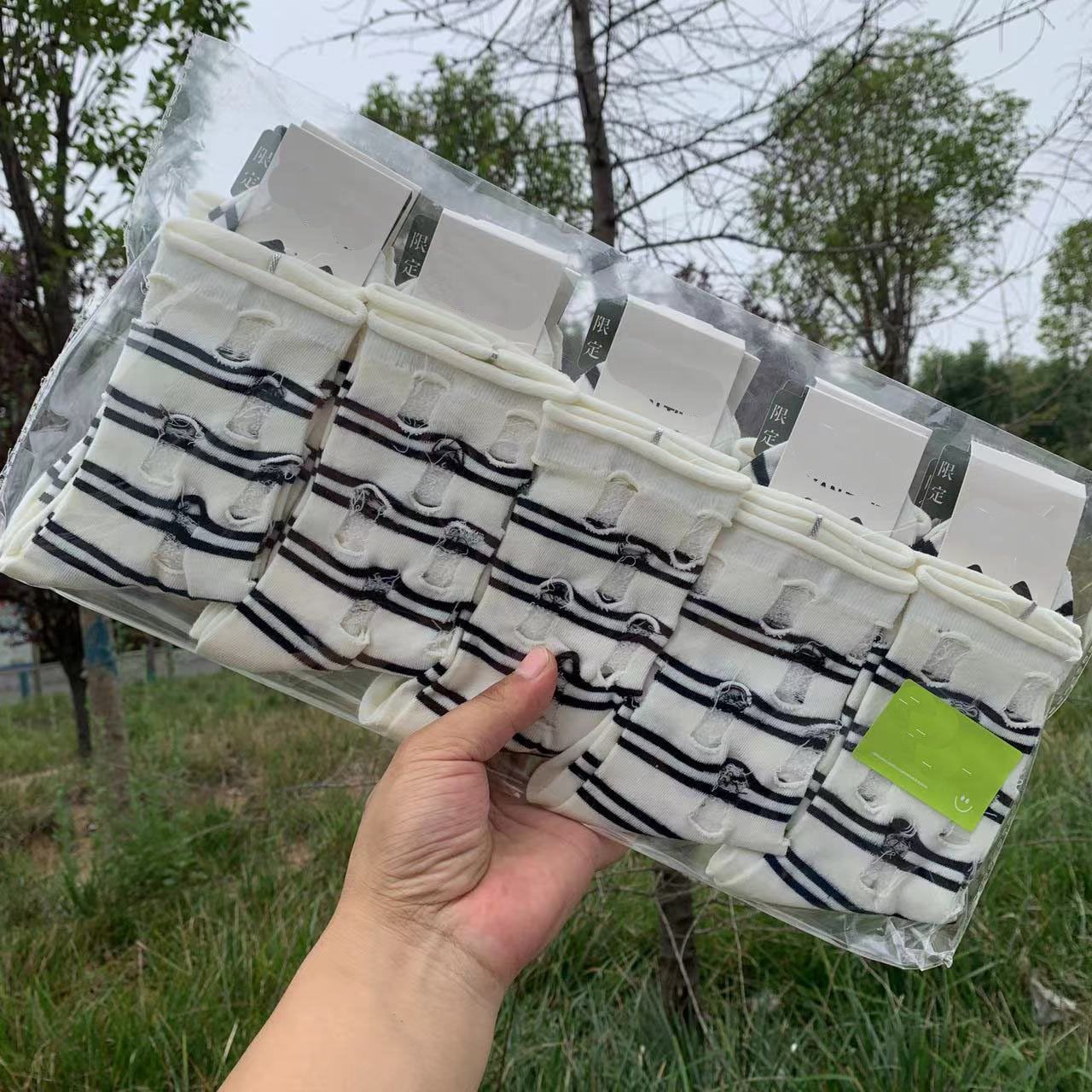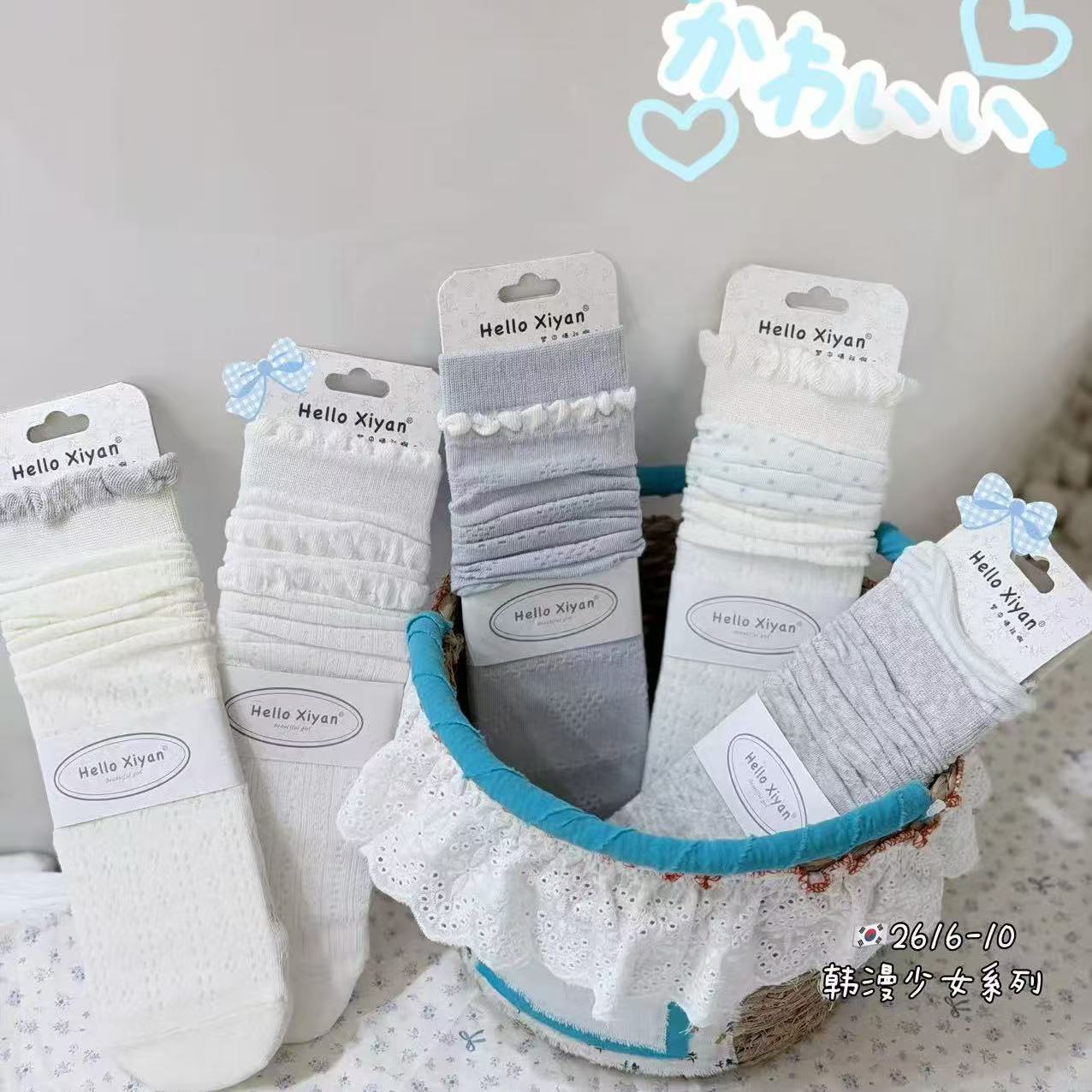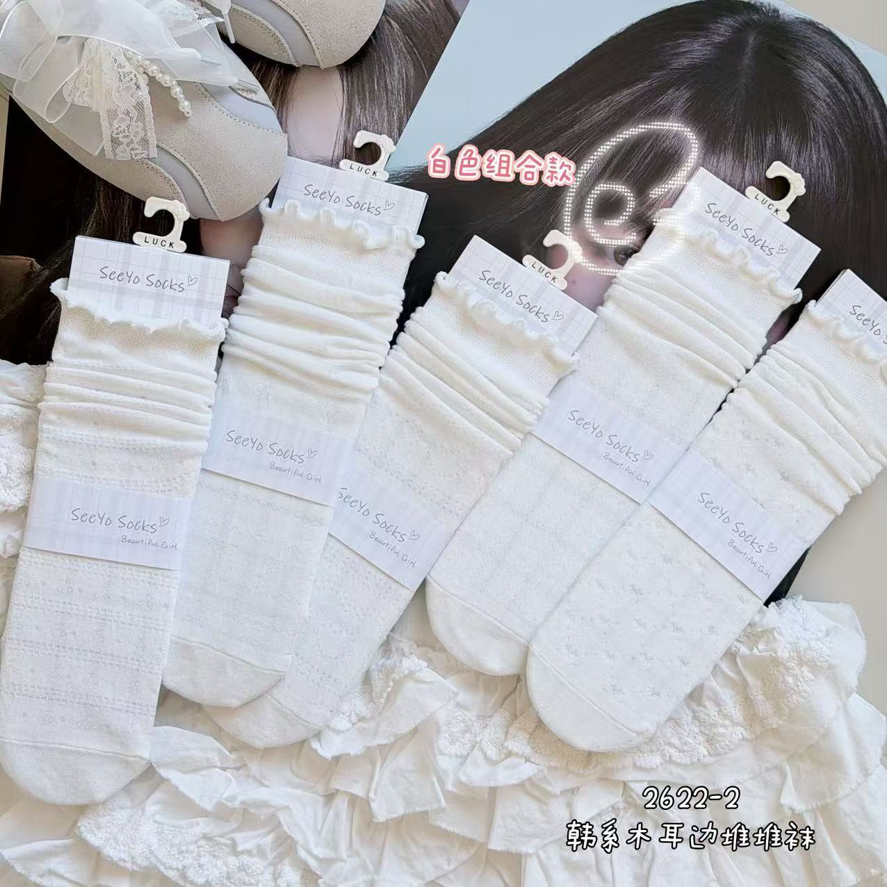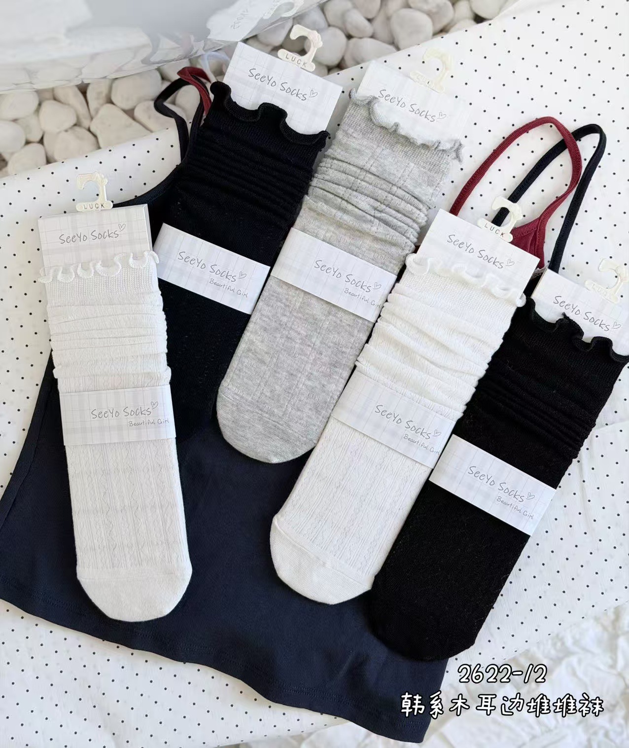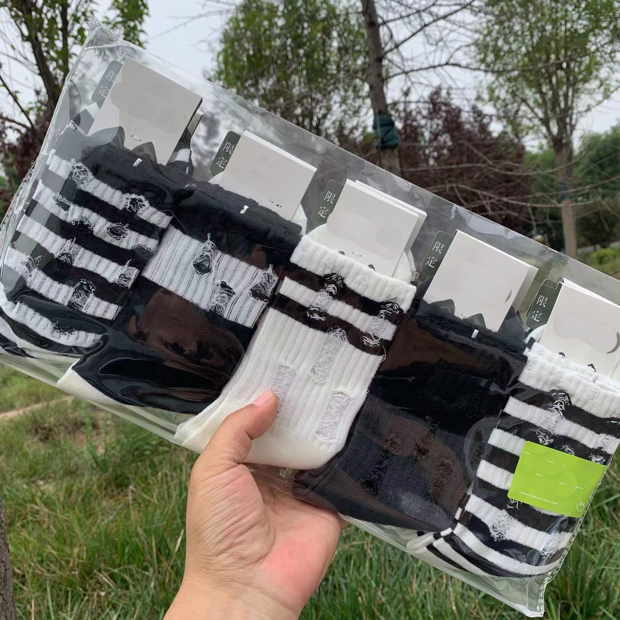 인스 트렌디한 중간 길이 양말, 봄 여름 한국 스타일 여성용 파일 양말, 코마면 흑백 인터넷 연예인 파일 양말스토어 가기