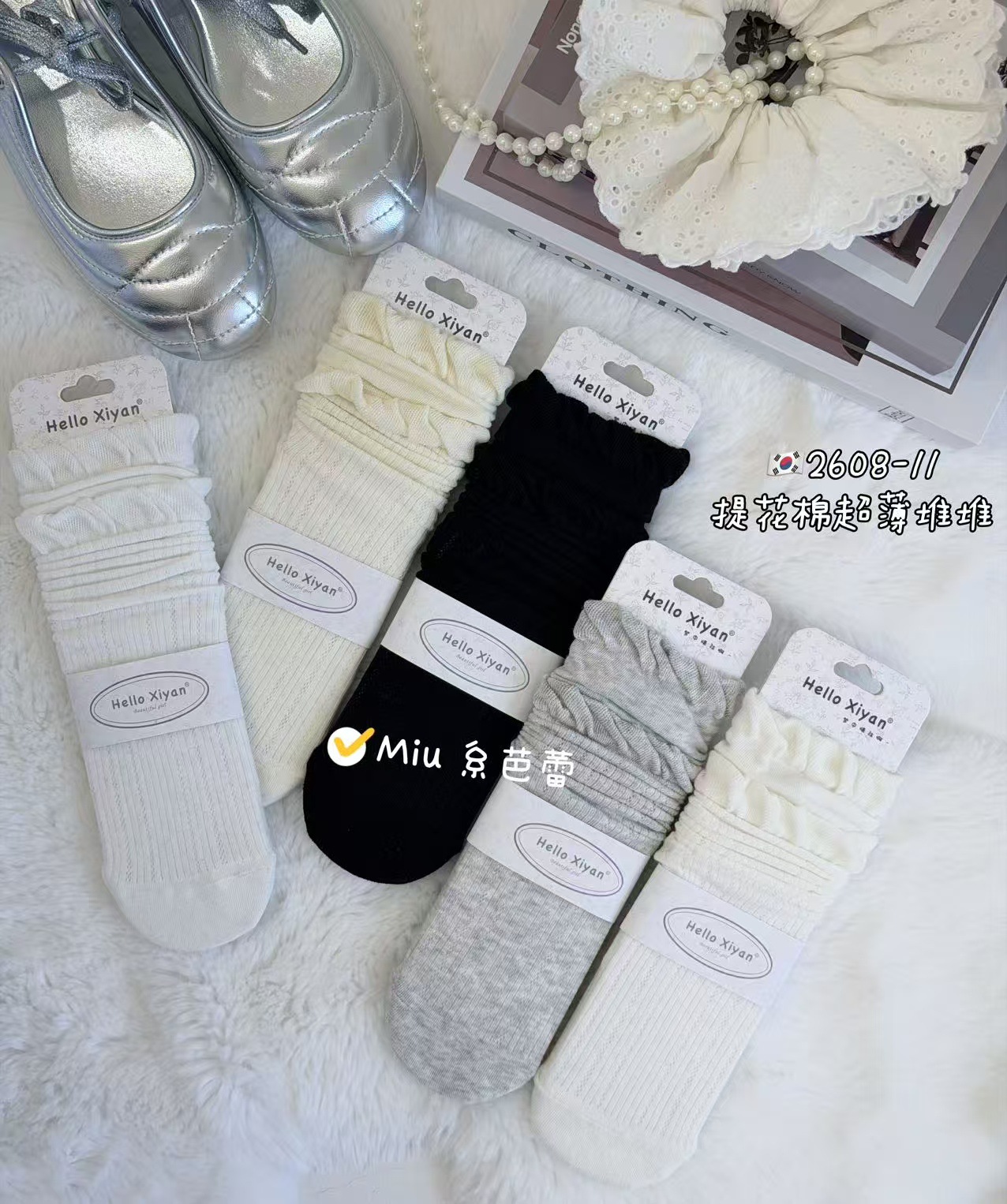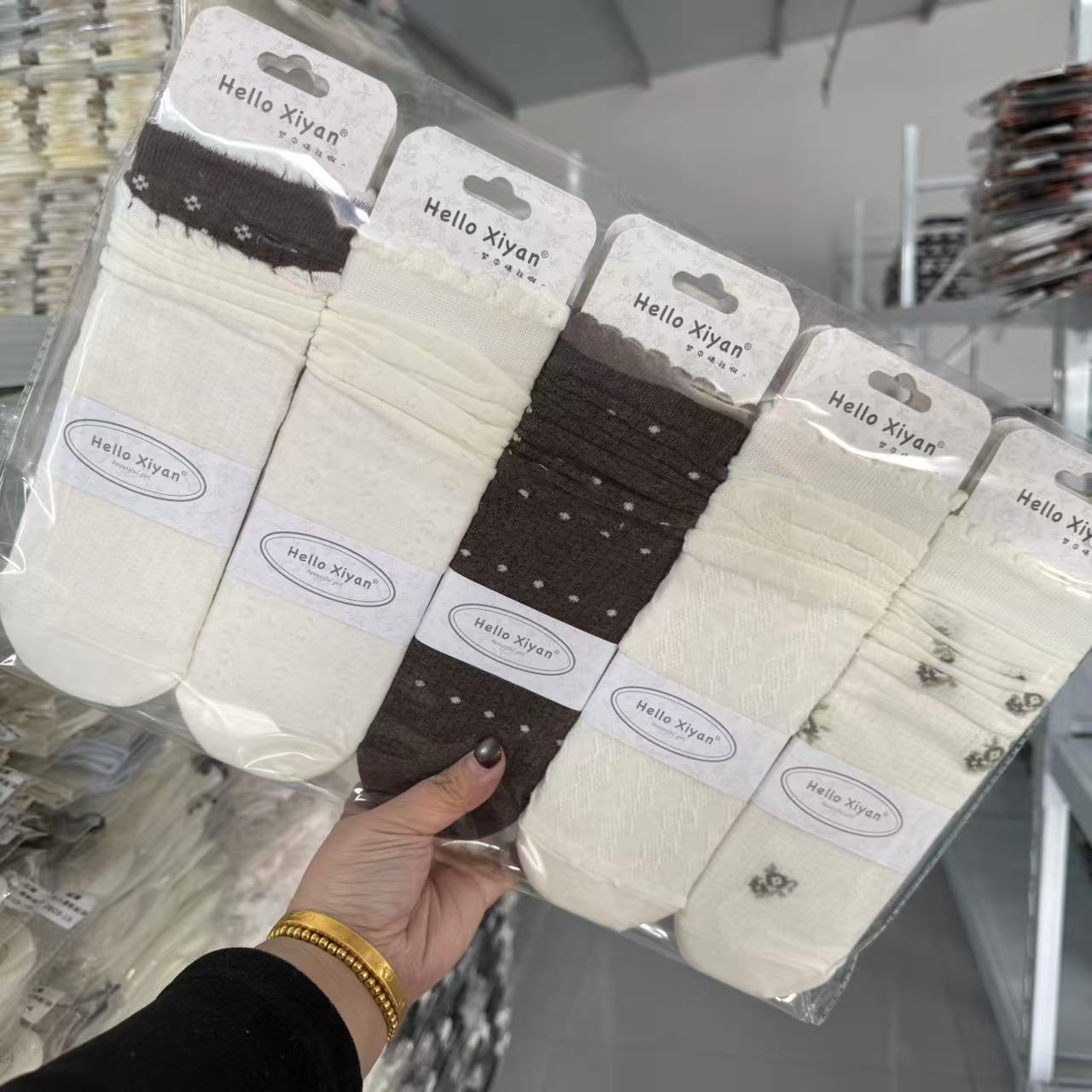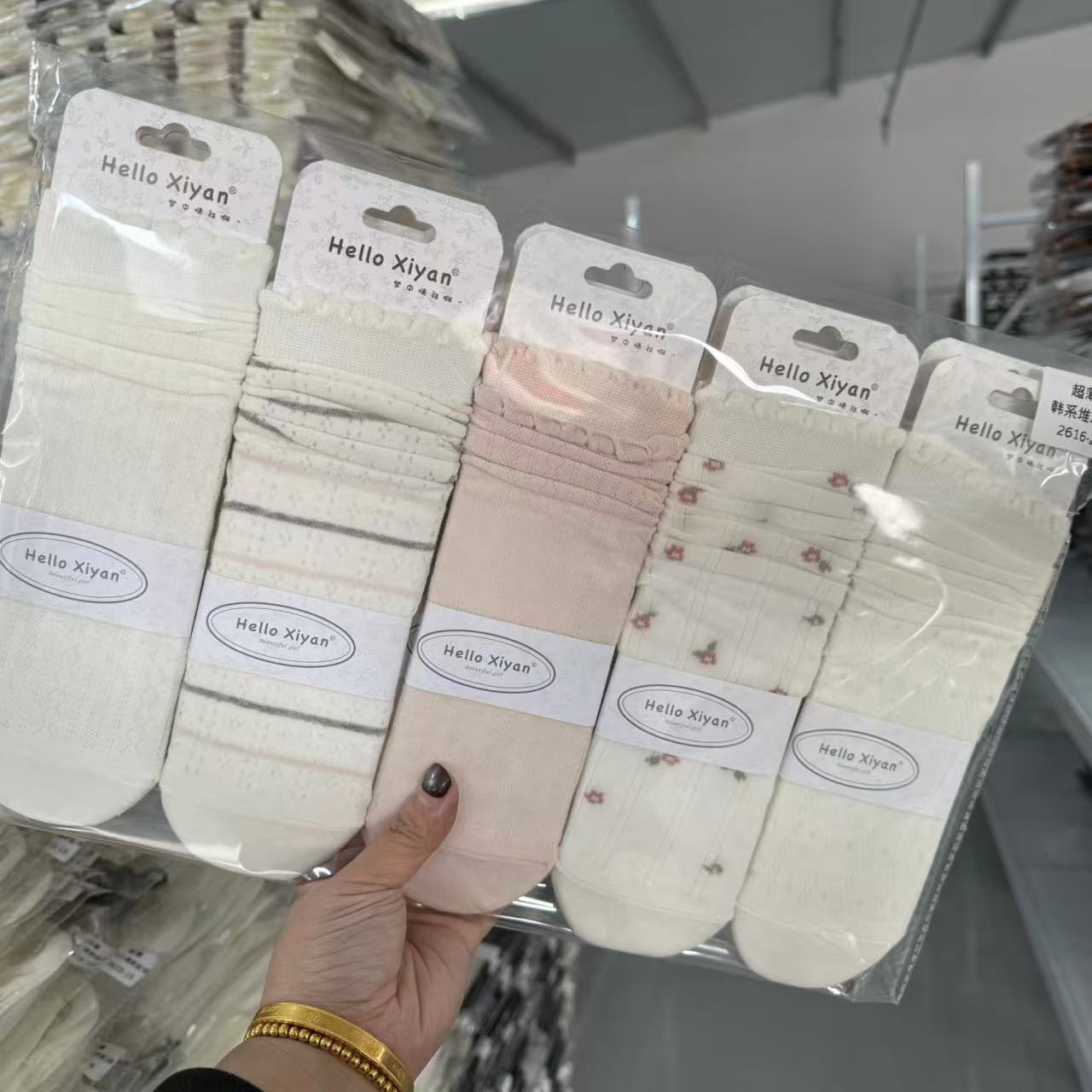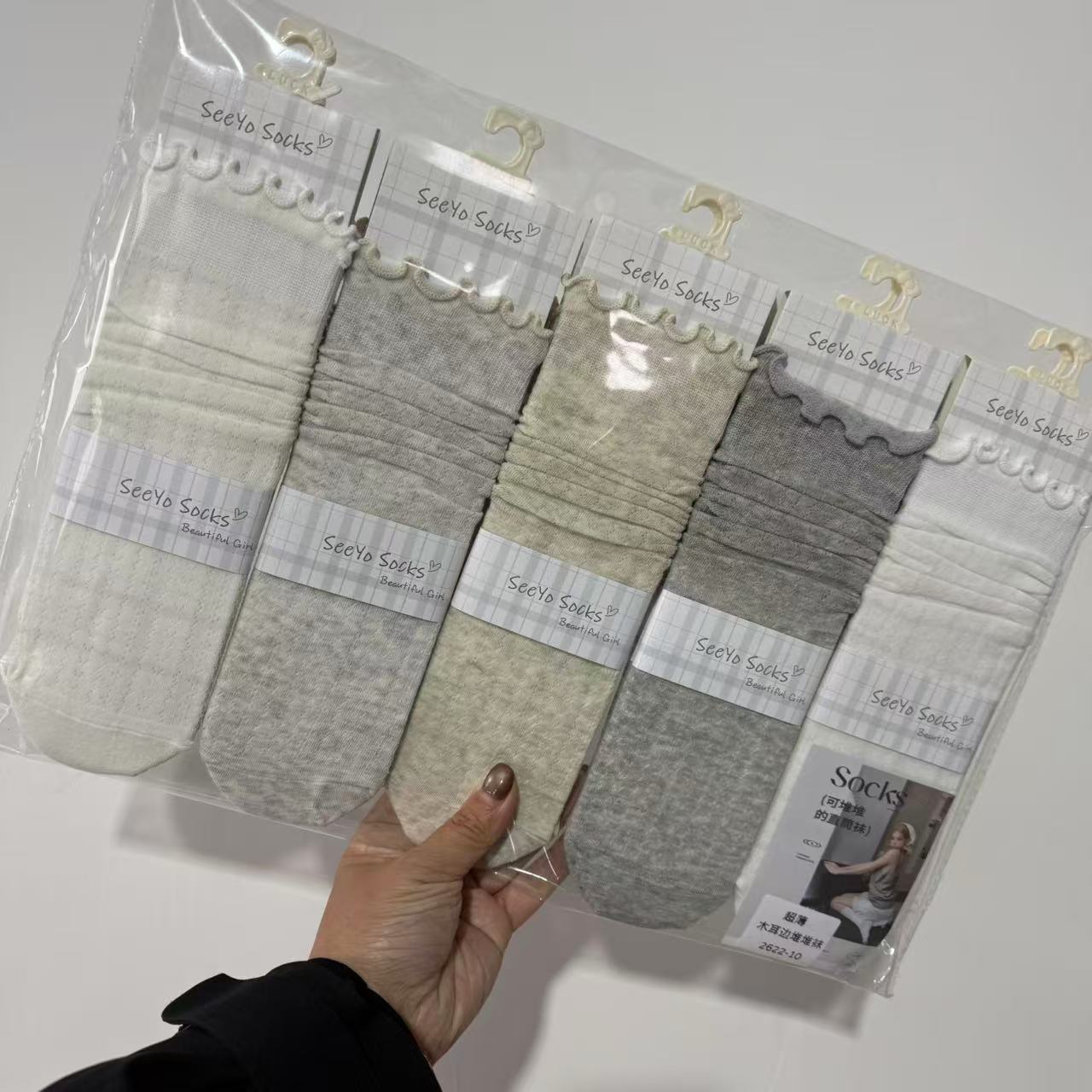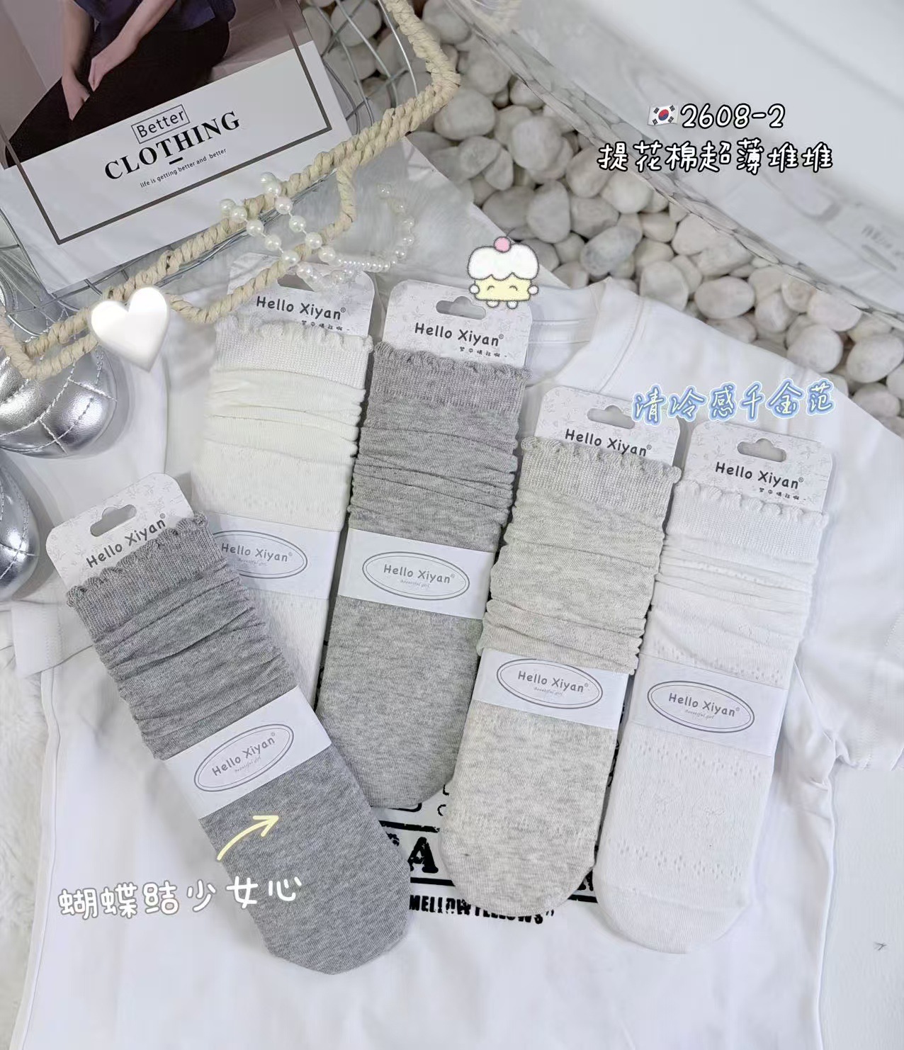 인스 트렌디한 중간 길이 양말, 봄 여름 한국 스타일 여성용 파일 양말, 코마면 흑백 인터넷 연예인 파일 양말스토어 가기