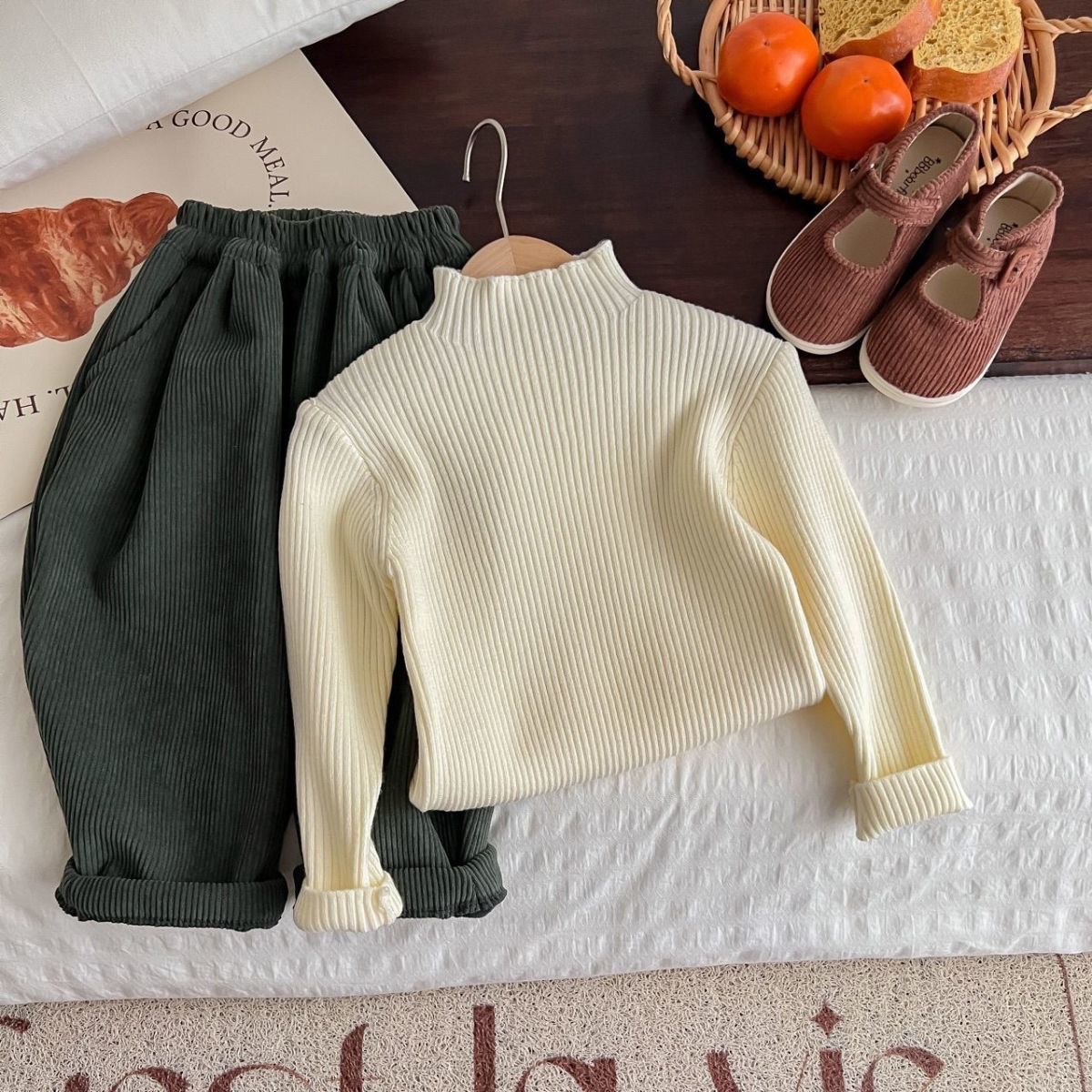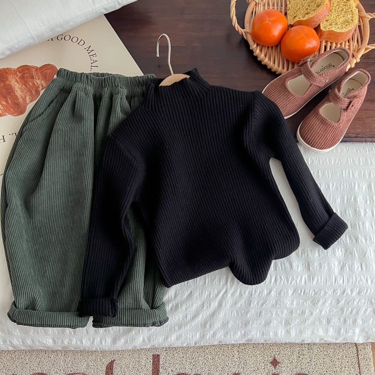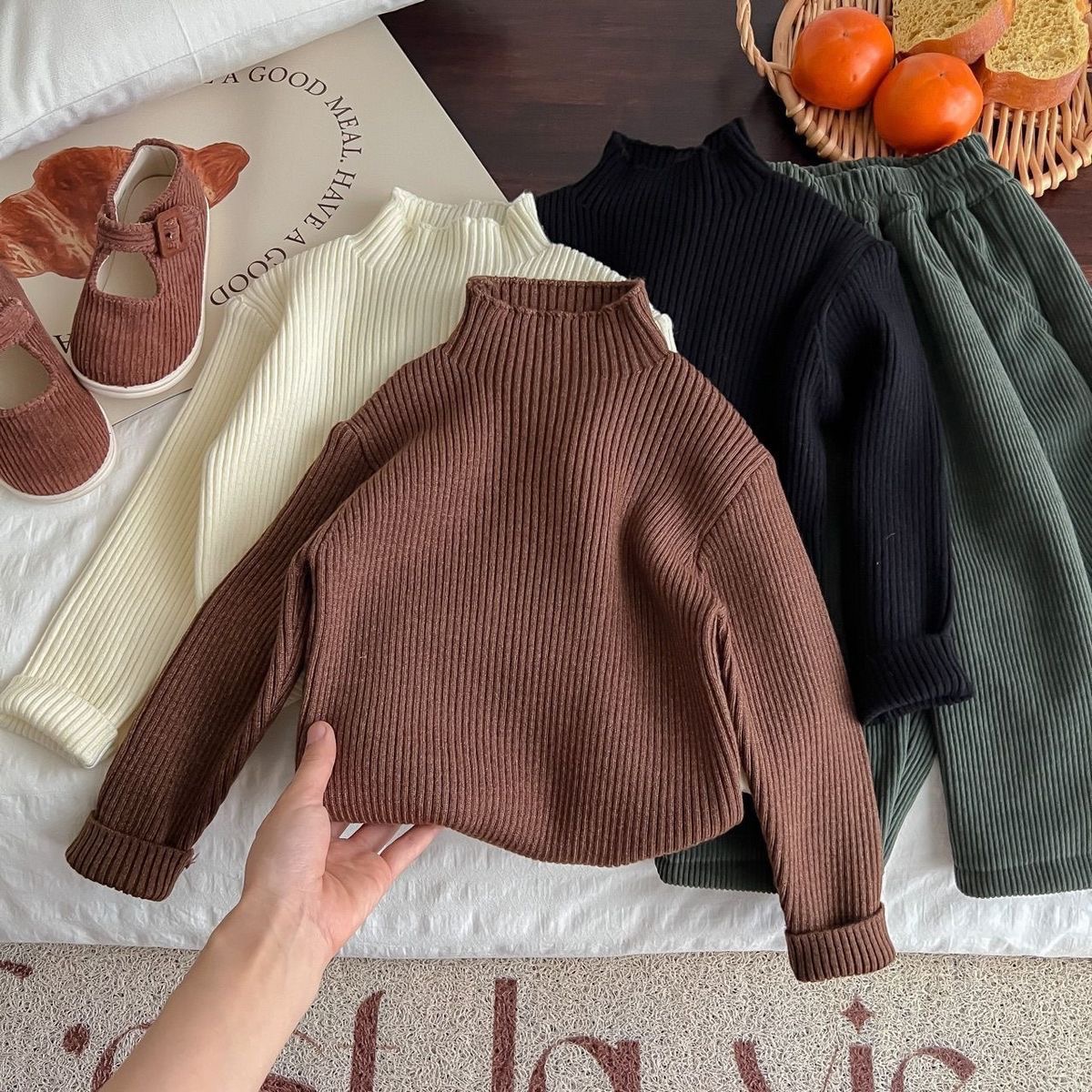 11 한국 아동복 한국 아동베이스 셔츠 남학생과 여학생을위한 가을과 겨울 단색 아기 스트레칭 반 터틀넥 스웨터 조수