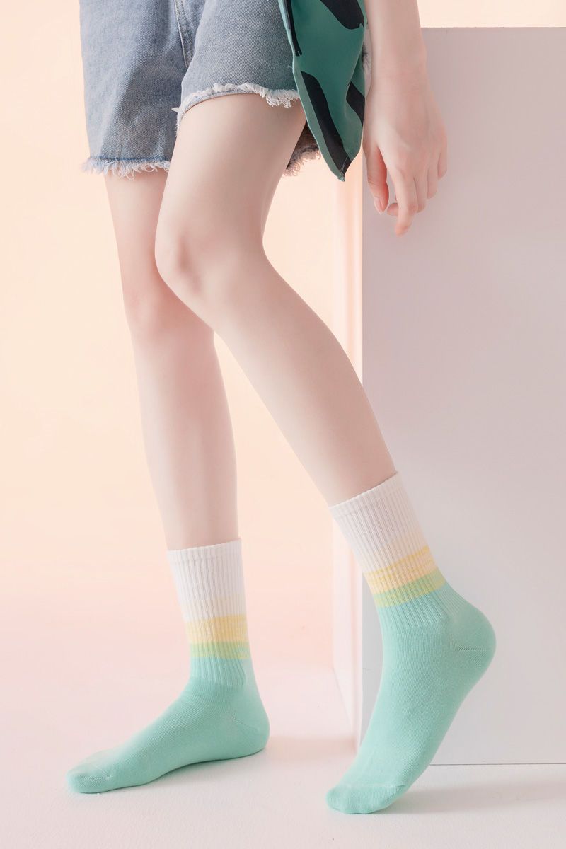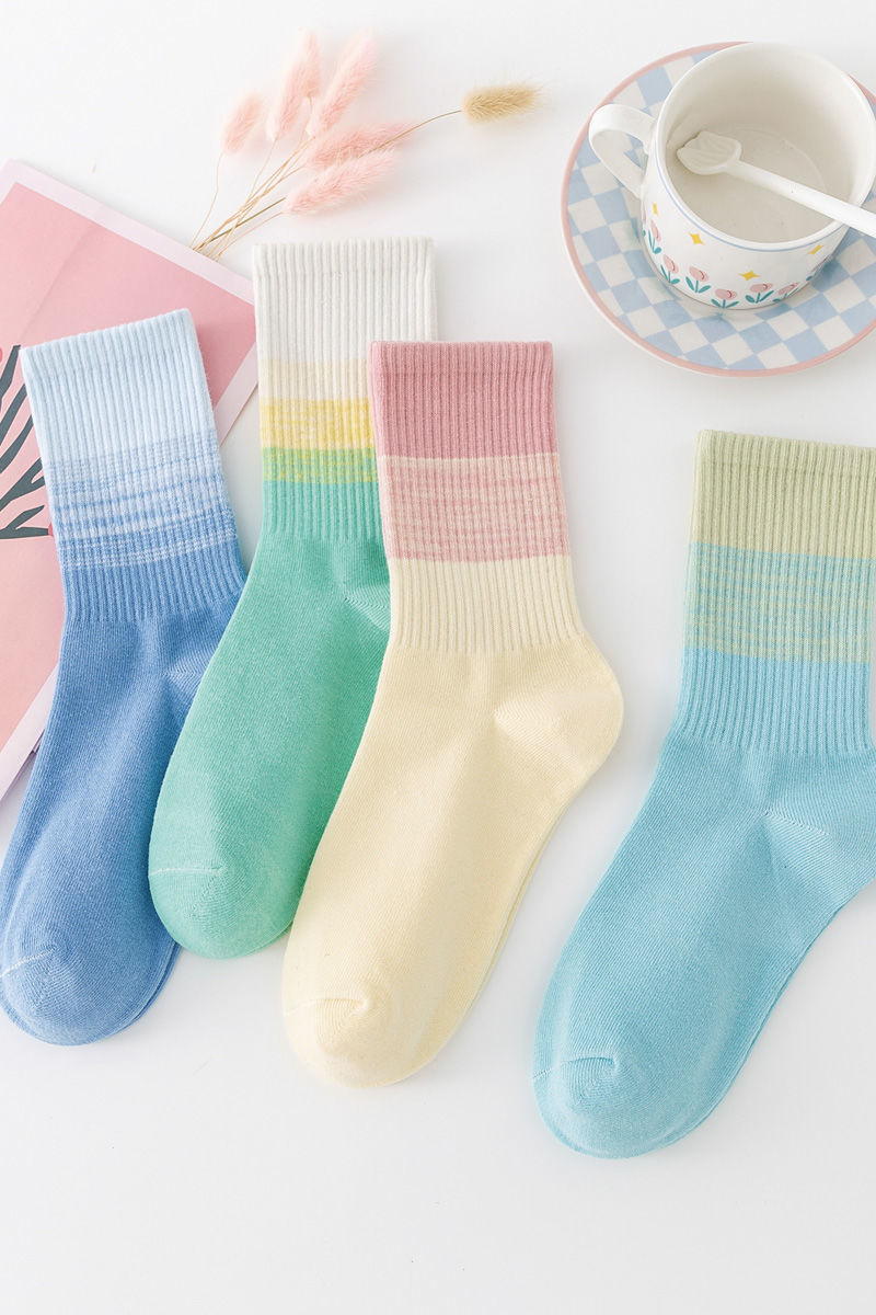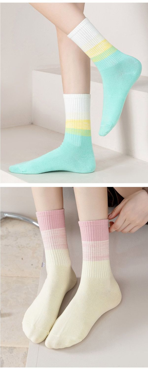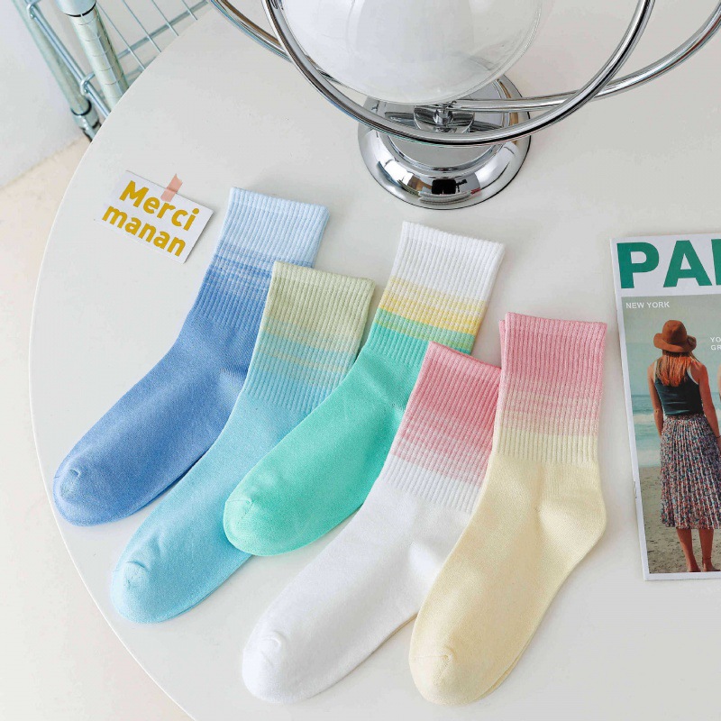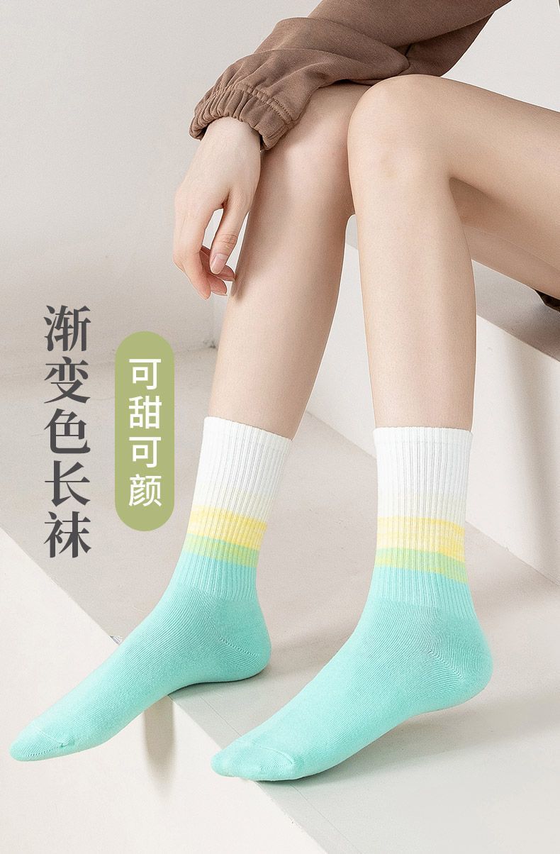 가을과 겨울 새로운 여성 양말 그라디언트 미드 레인지 양말 도파민 컬러 사이버 연예인 핫 스포츠 아웃웨어 조커 캔디 컬러스토어 가기