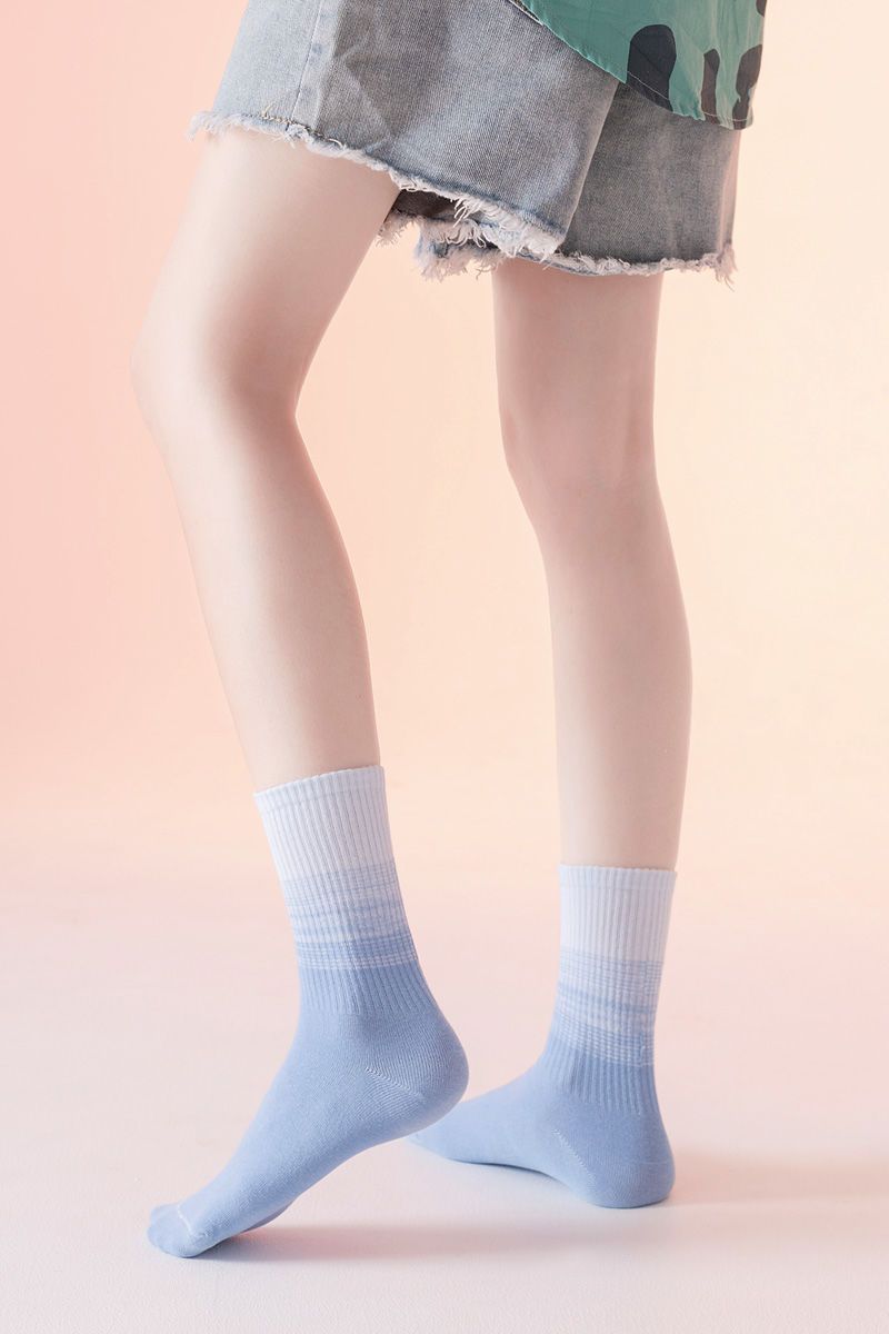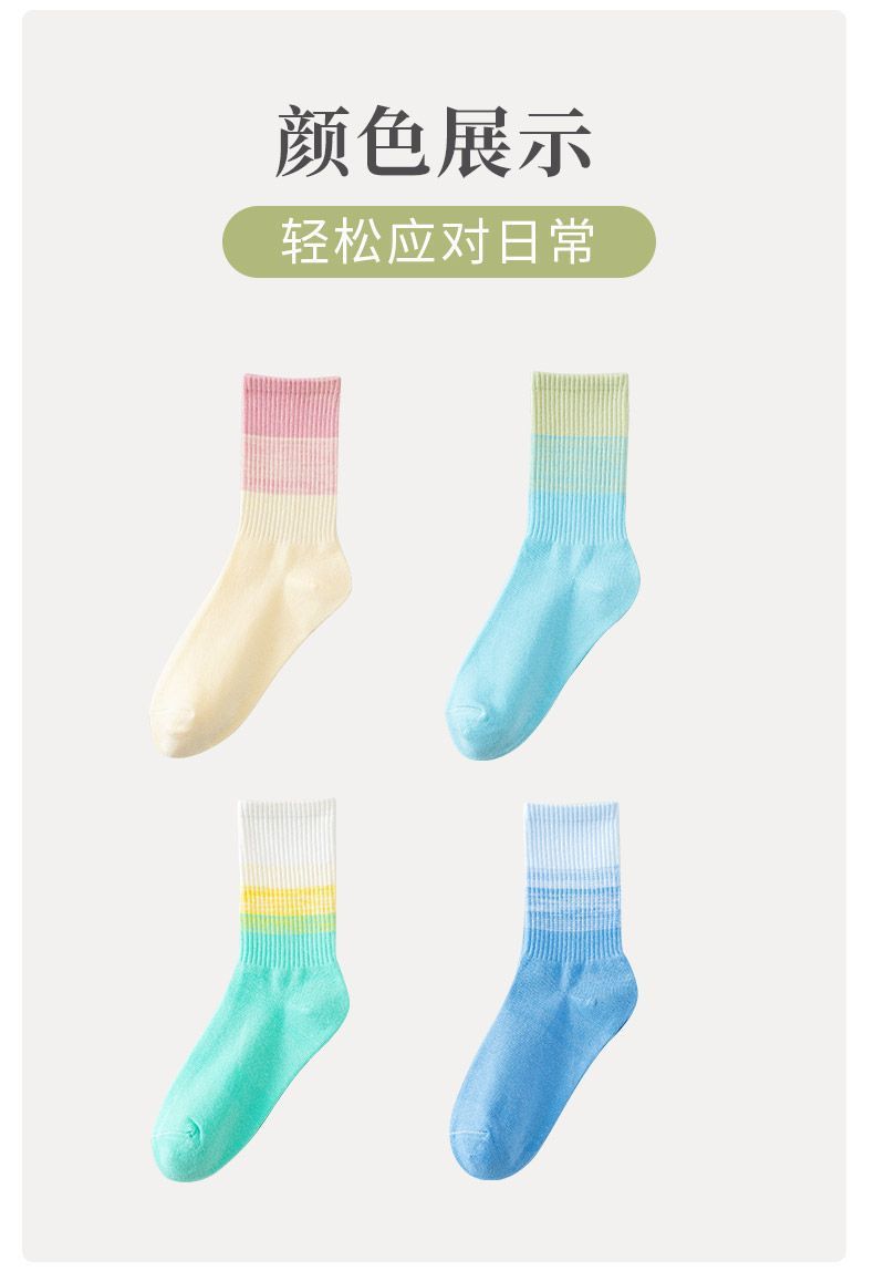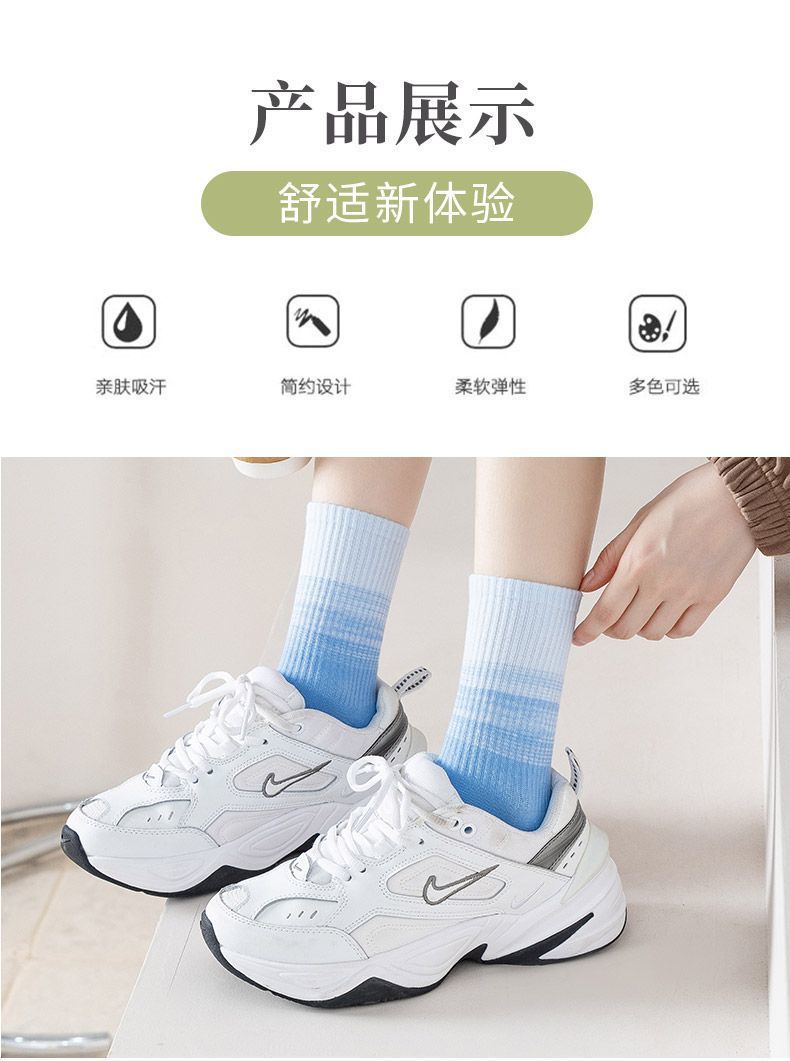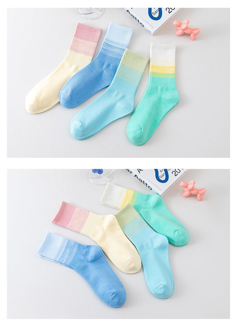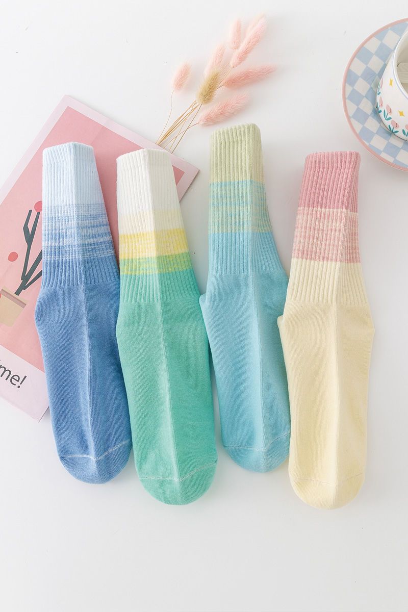가을과 겨울 새로운 여성 양말 그라디언트 미드 레인지 양말 도파민 컬러 사이버 연예인 핫 스포츠 아웃웨어 조커 캔디 컬러스토어 가기