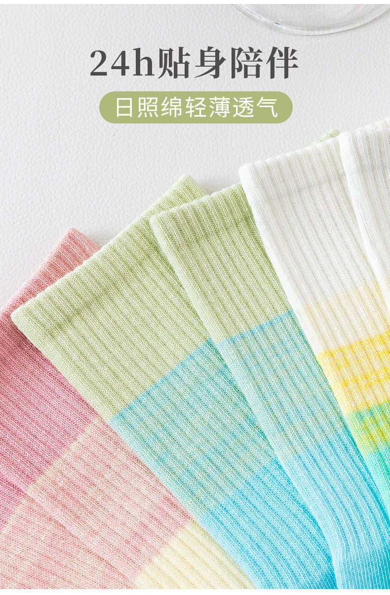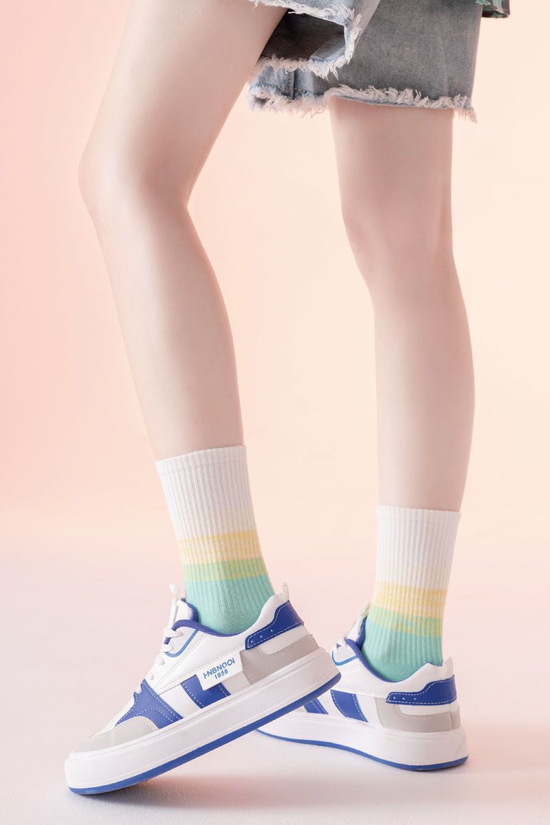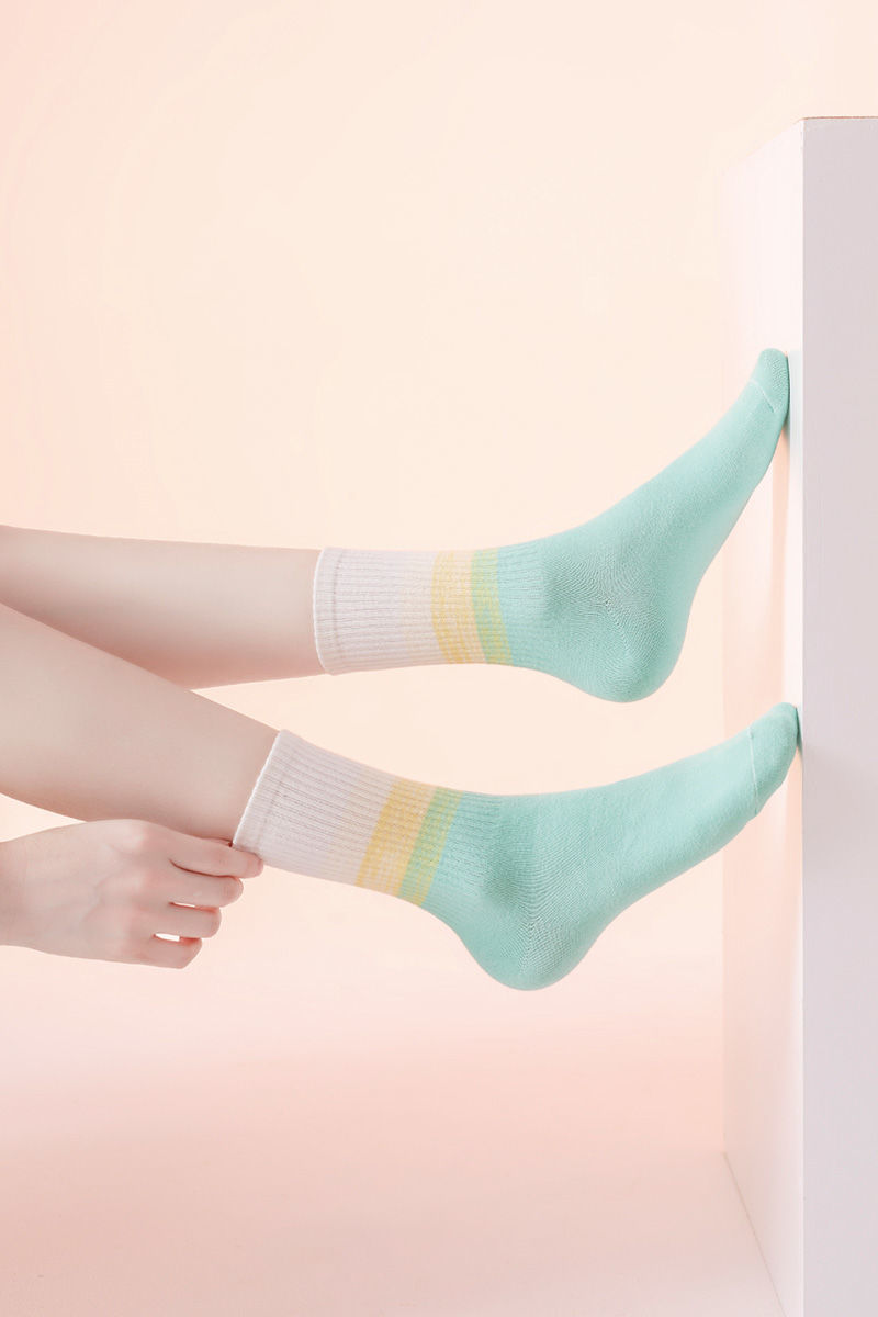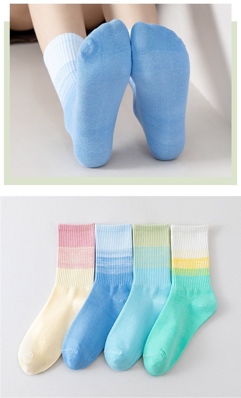 가을과 겨울 새로운 여성 양말 그라디언트 미드 레인지 양말 도파민 컬러 사이버 연예인 핫 스포츠 아웃웨어 조커 캔디 컬러스토어 가기