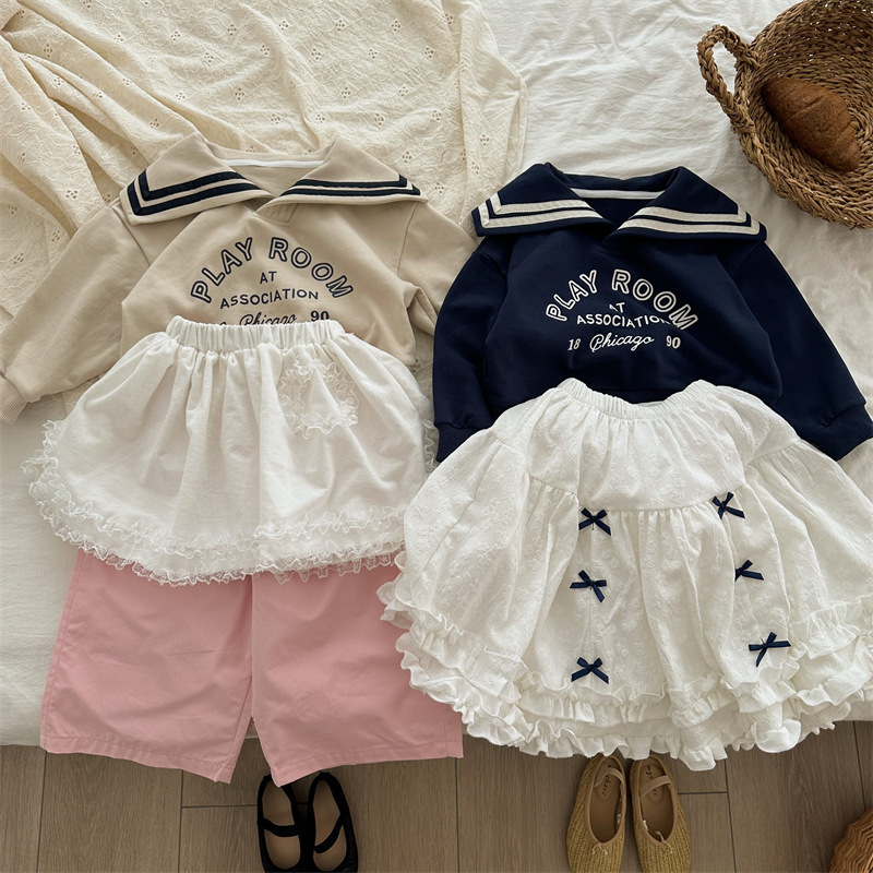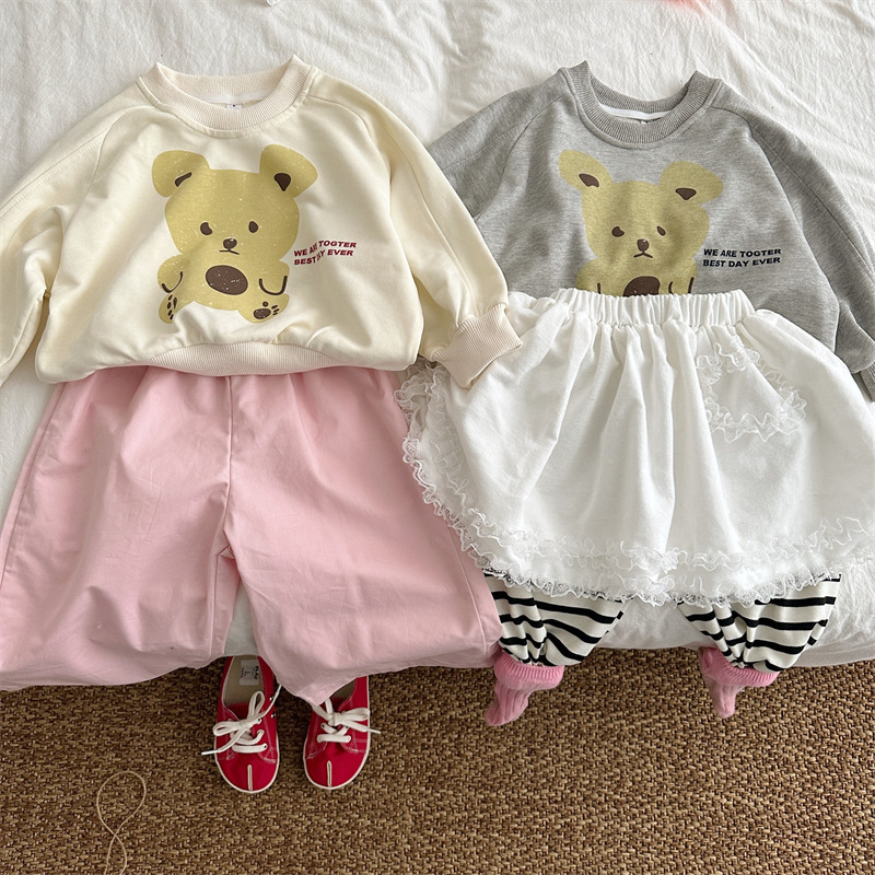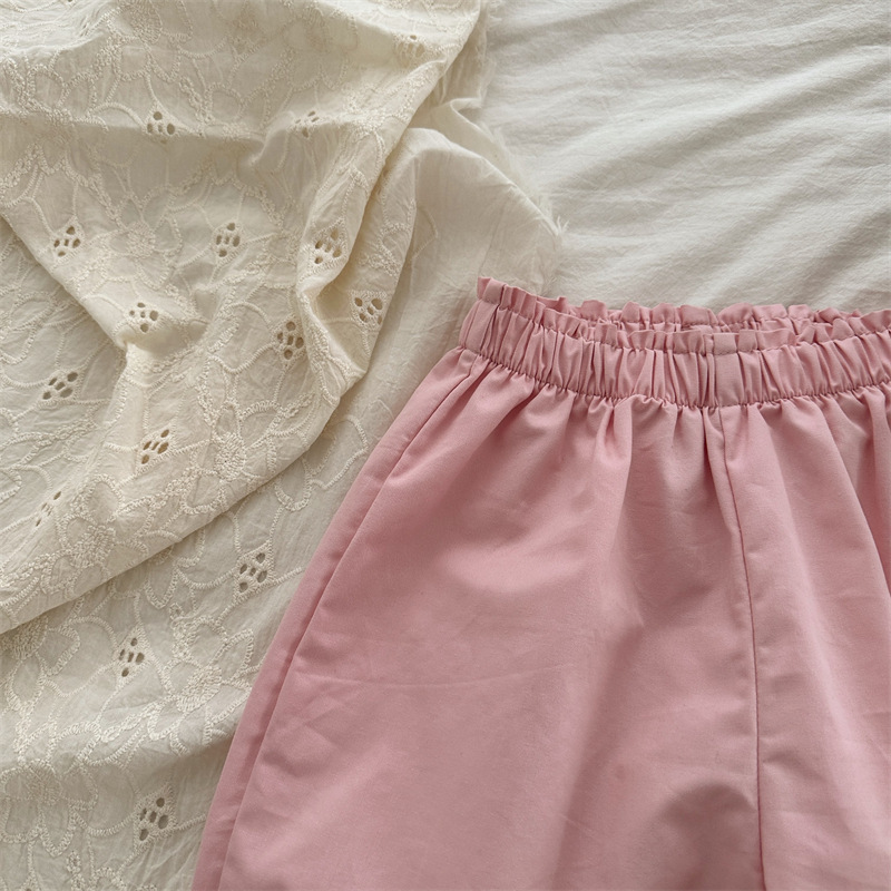 봄 소녀의 버드 허리 바지 2024 소녀 아기의 면 단색 웨이브 포인트 바지 소녀의 캐주얼 바지스토어 가기