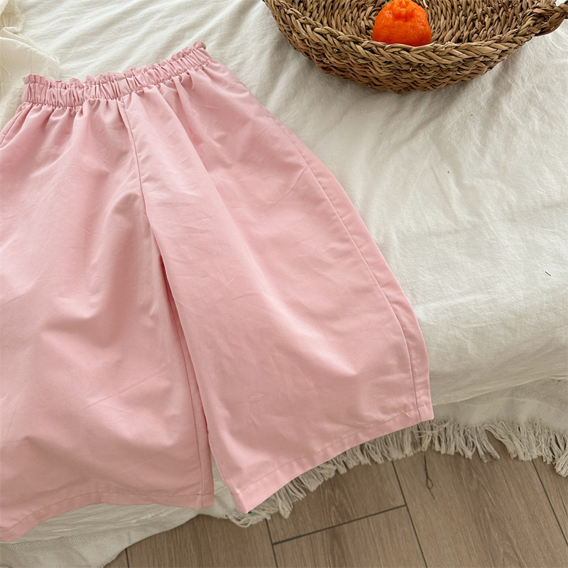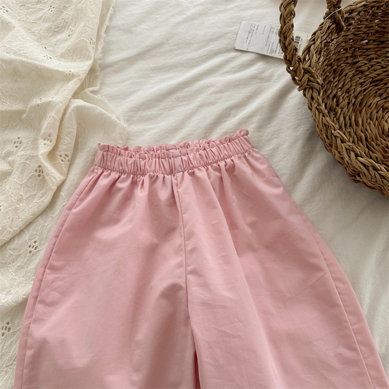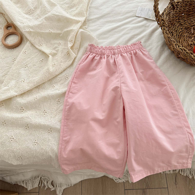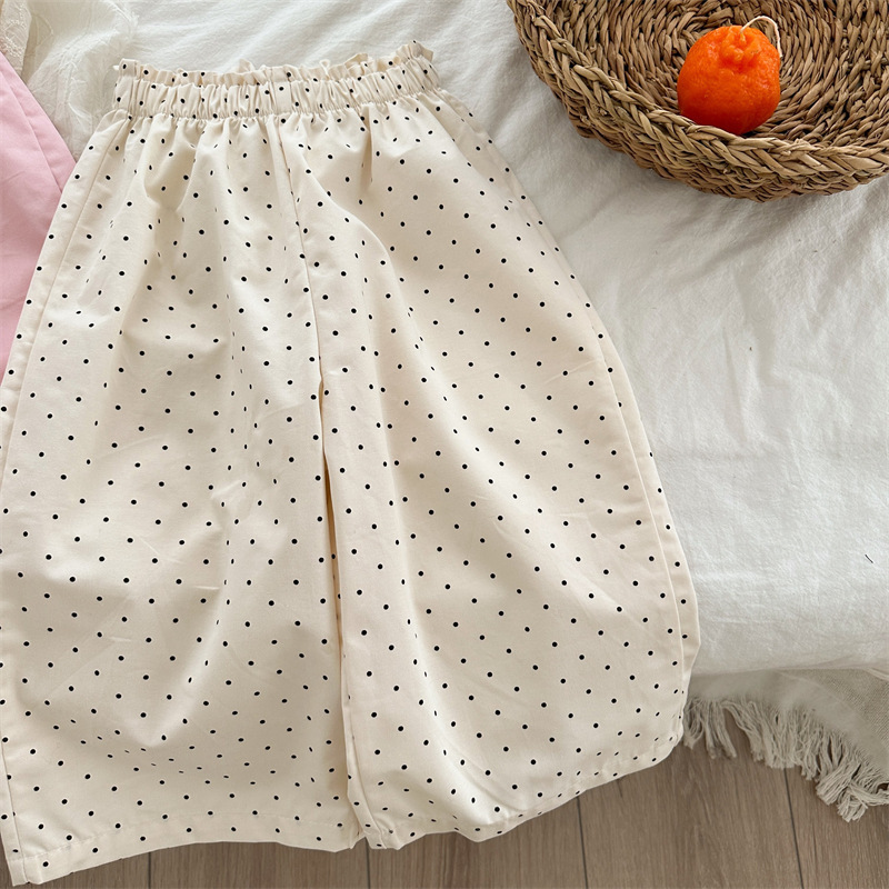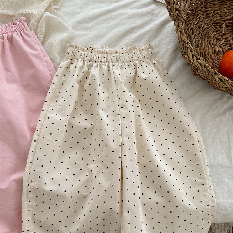 봄 소녀의 버드 허리 바지 2024 소녀 아기의 면 단색 웨이브 포인트 바지 소녀의 캐주얼 바지