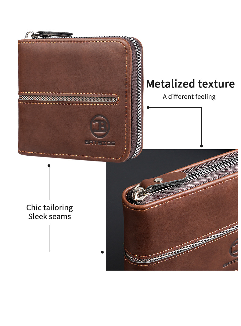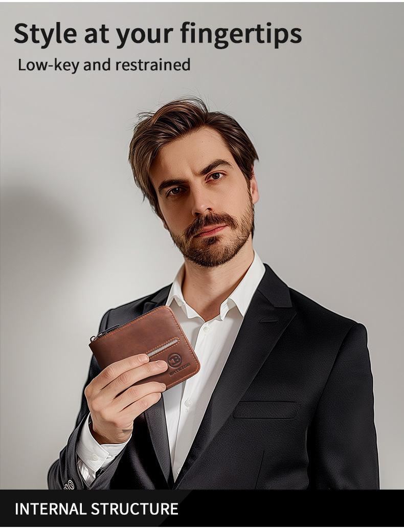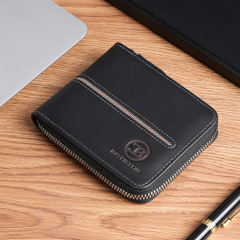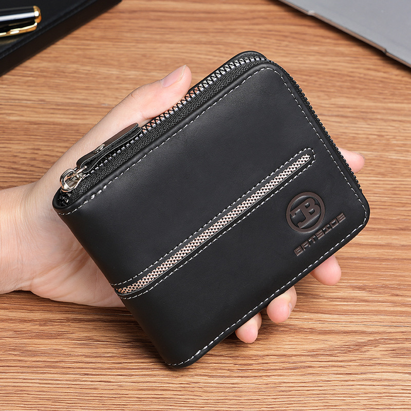 BATSIOE 비즈니스 남성 지갑 국경 간 복고풍 지퍼 짧은 멀티 카드 패션 신용 카드 소지자 동전 지갑