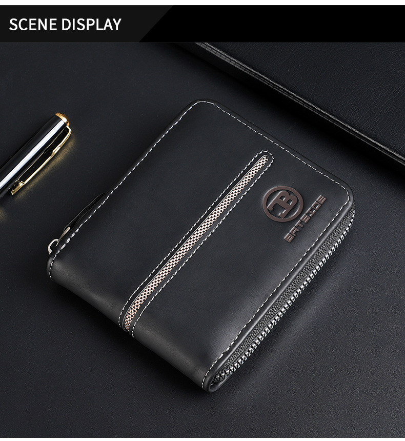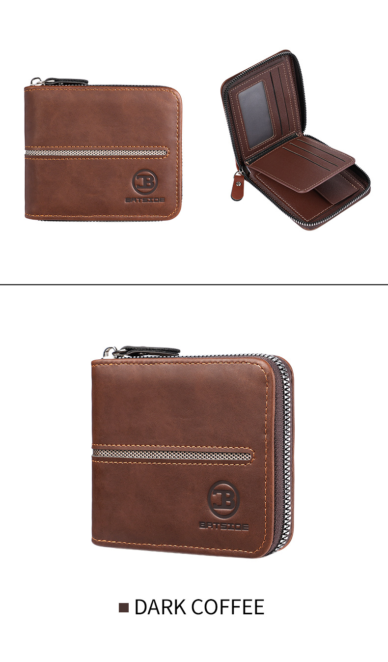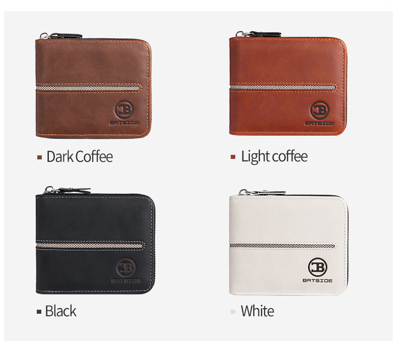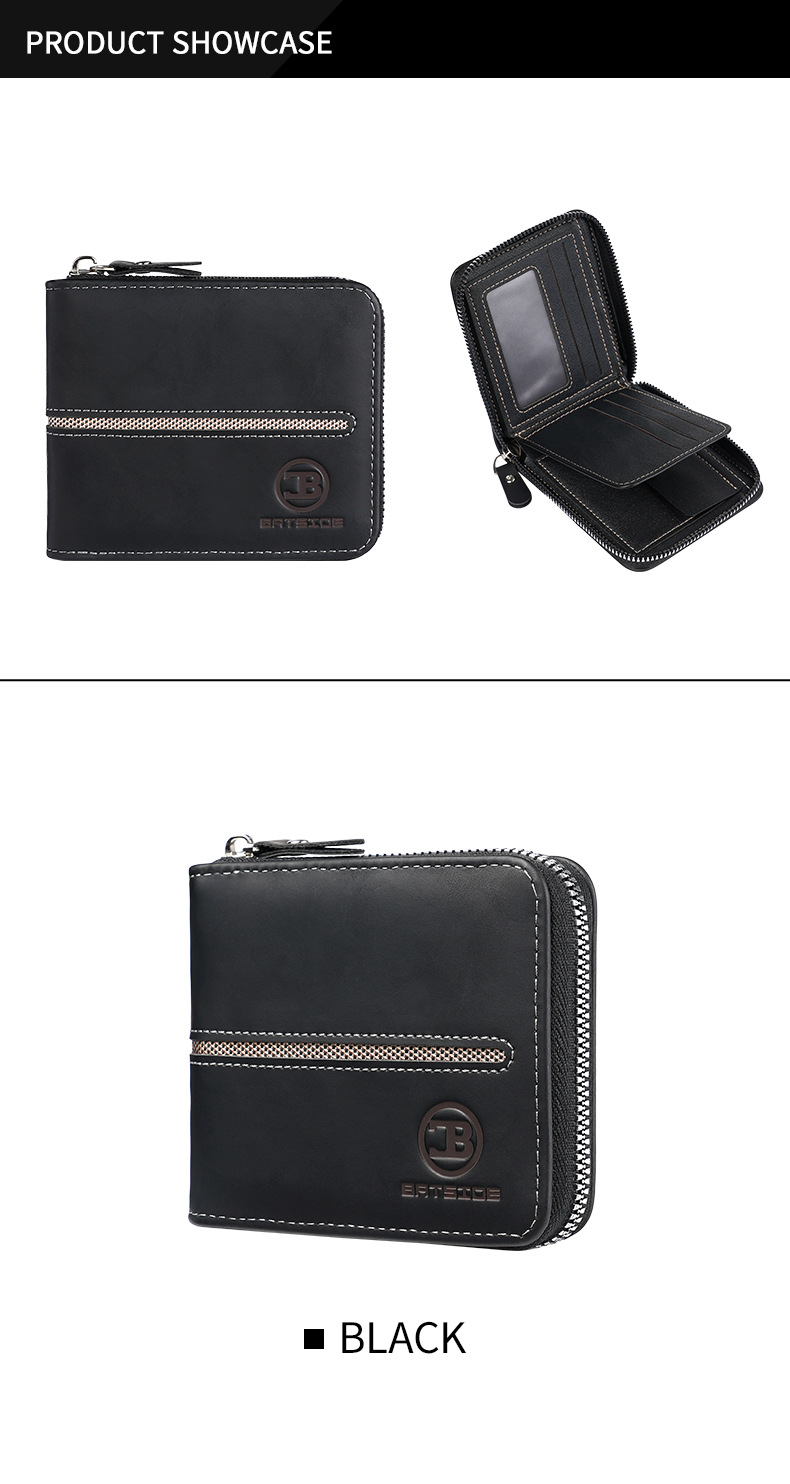 BATSIOE 비즈니스 남성 지갑 국경 간 복고풍 지퍼 짧은 멀티 카드 패션 신용 카드 소지자 동전 지갑스토어 가기