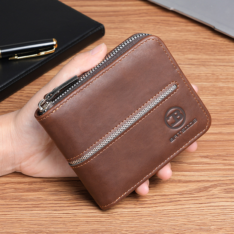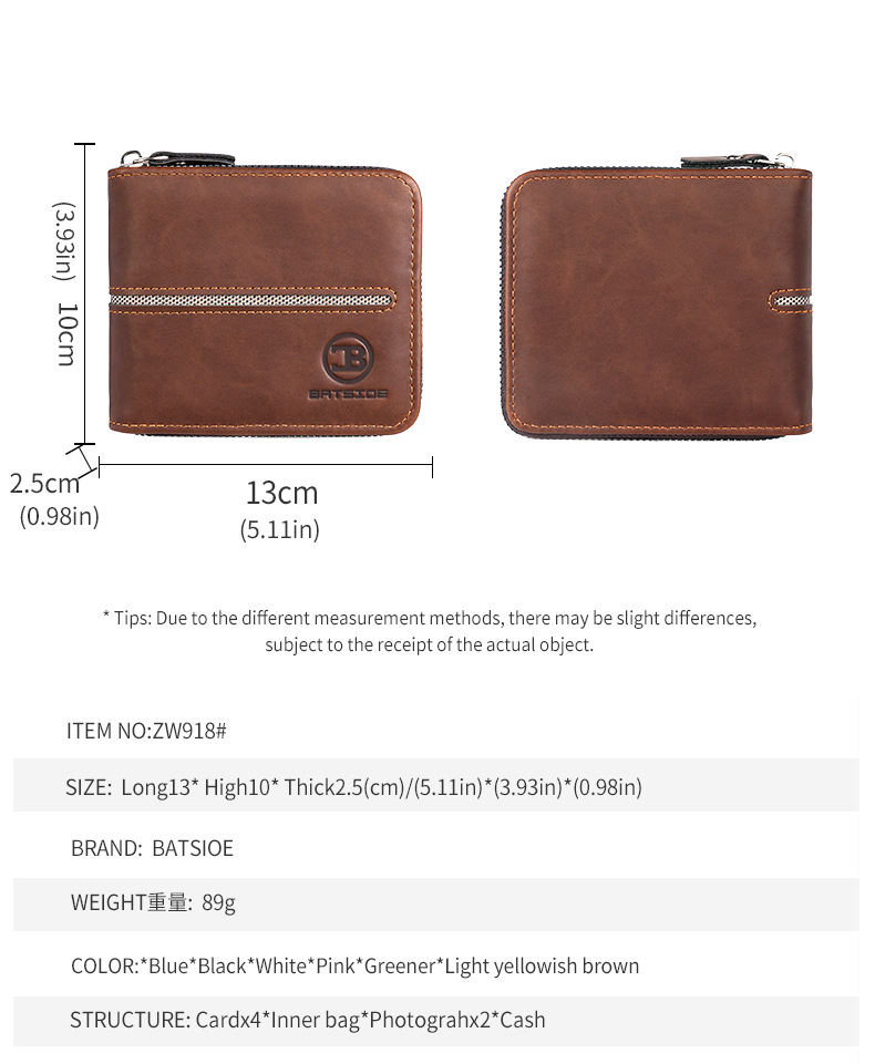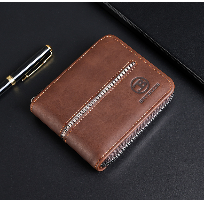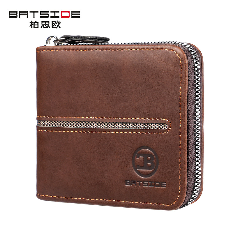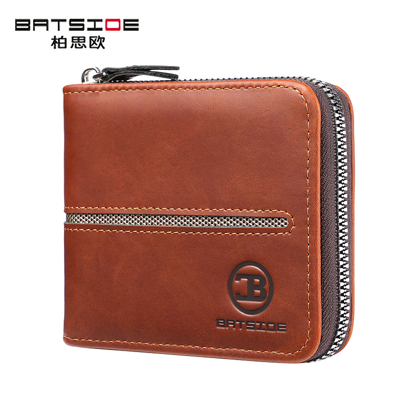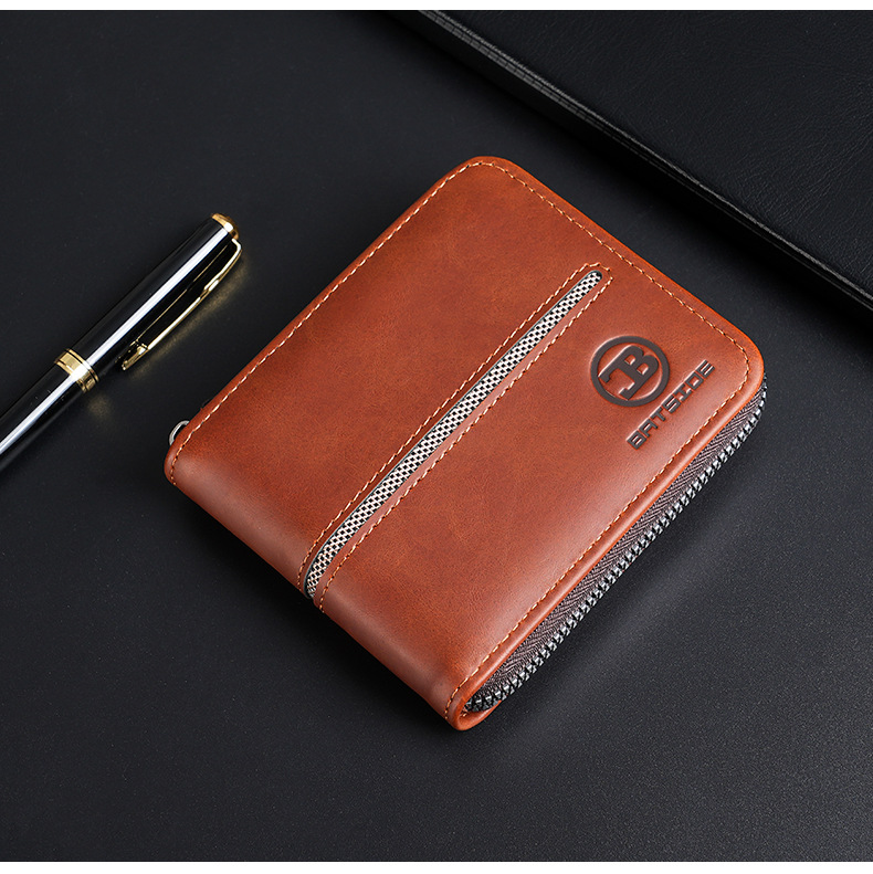 BATSIOE 비즈니스 남성 지갑 국경 간 복고풍 지퍼 짧은 멀티 카드 패션 신용 카드 소지자 동전 지갑스토어 가기