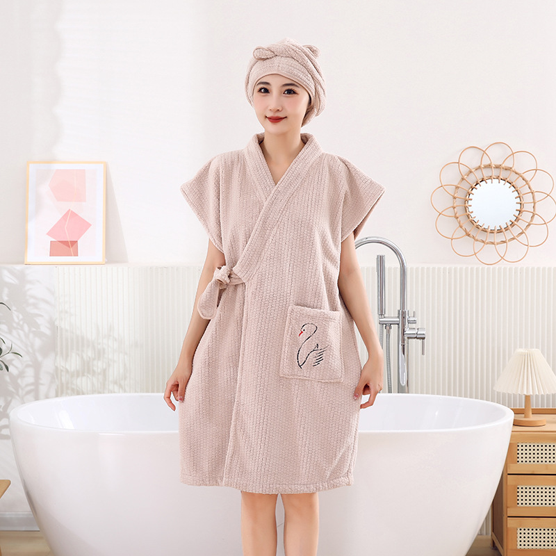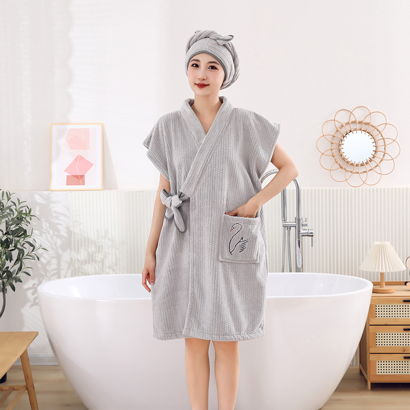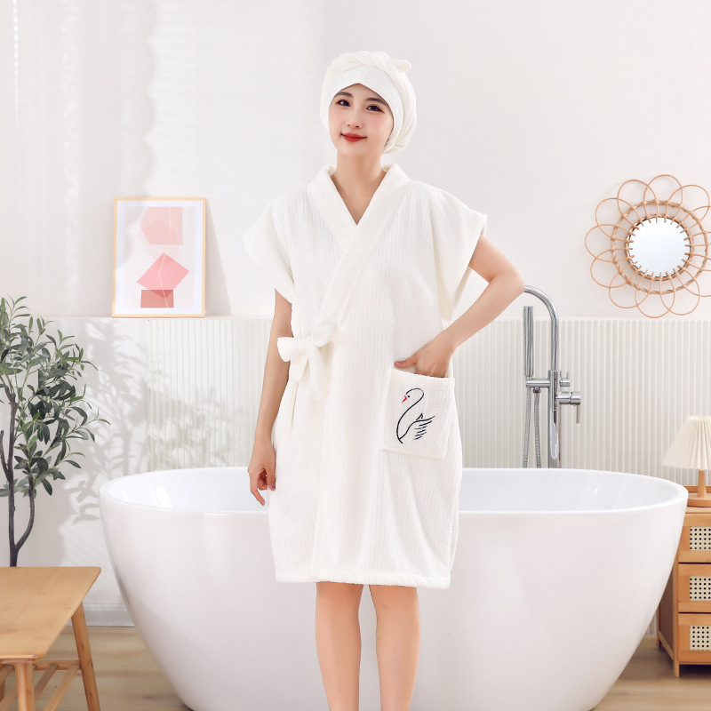 목욕 가운 부드러운 흡수성 편안한 목욕 타월 성인 숙녀 가정 호텔 하프 소매 목욕 원피스 목욕 가운 도매