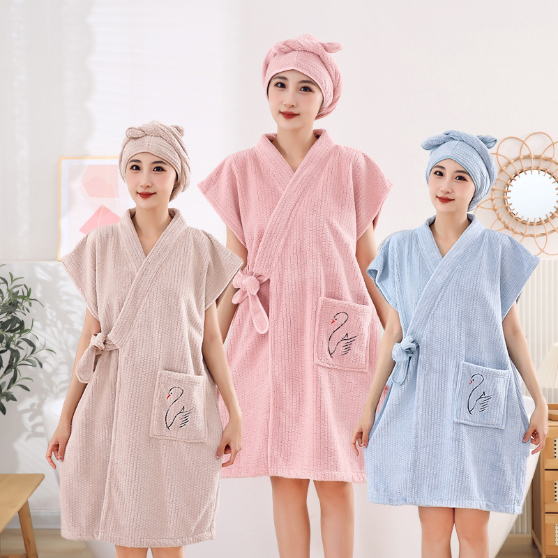 国风新品国色浴袍长款浴巾洗澡浴袍可裹吸水睡袍成人速干女夏薄款