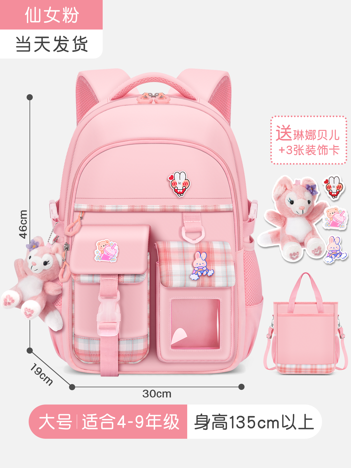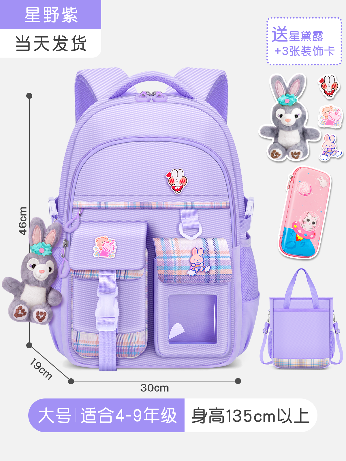 초등학생을위한 2024 새로운 여학생 학교 가방 3 ~ 6 학년 2 학년 소녀 어린이 및 소녀 경량 척추 보호